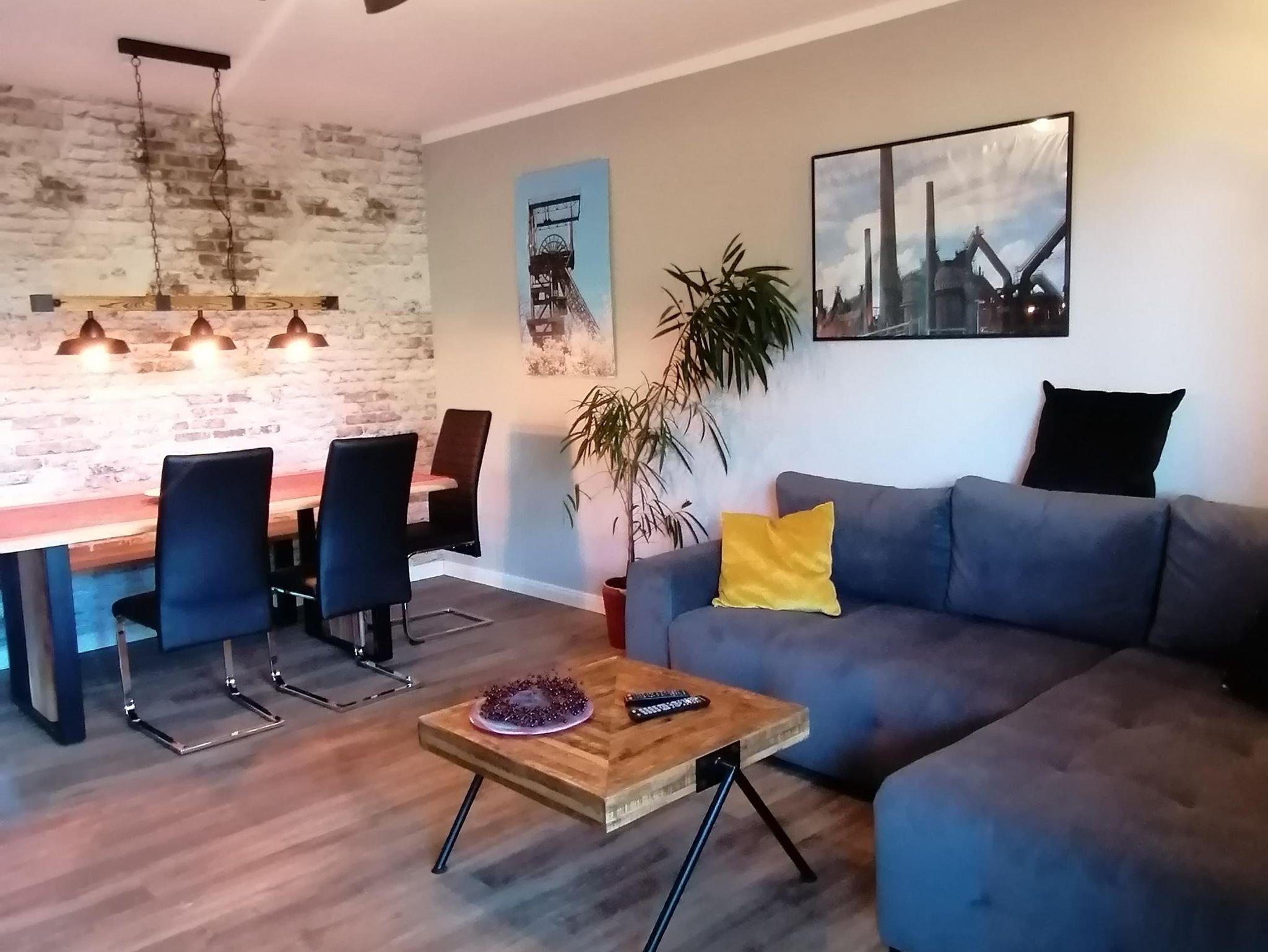 Ca. 80 qm Wohnfläche bieten Platz für 1-5 Personen (notfalls 6). Das Wohnzimmer verfügt über einen großen Esstisch, Schlafsofa, TV und Steroanlage. Die Küche ist mit Geschirrspüler, Kühlschrank inkl. Gefrierfach, Herd, Backofen, Mikrowelle, Wasserkocher, Eierkocher, Toaster und Kaffeemaschine komplett ausgestattet. Ein Schlafzimmer mit Doppelbett und ein kleinerer Schlafraum mit Etagenbett stehen zur Verfügung. Das Badezimmer verfügt über Dusche, Toilette, großen Spiegel und Waschmaschine. Highspeed Wlan und Parkplätze kostenlos. Bitte beachten Sie, dass keine Haustiere erlaubt sind.