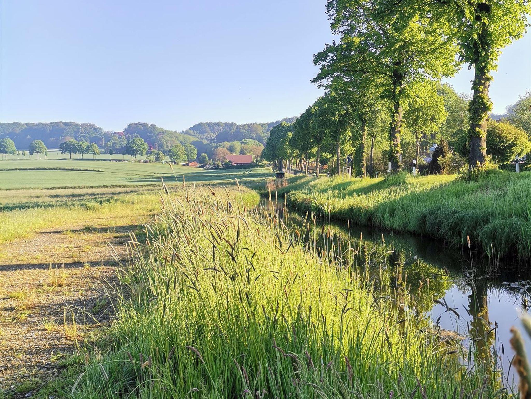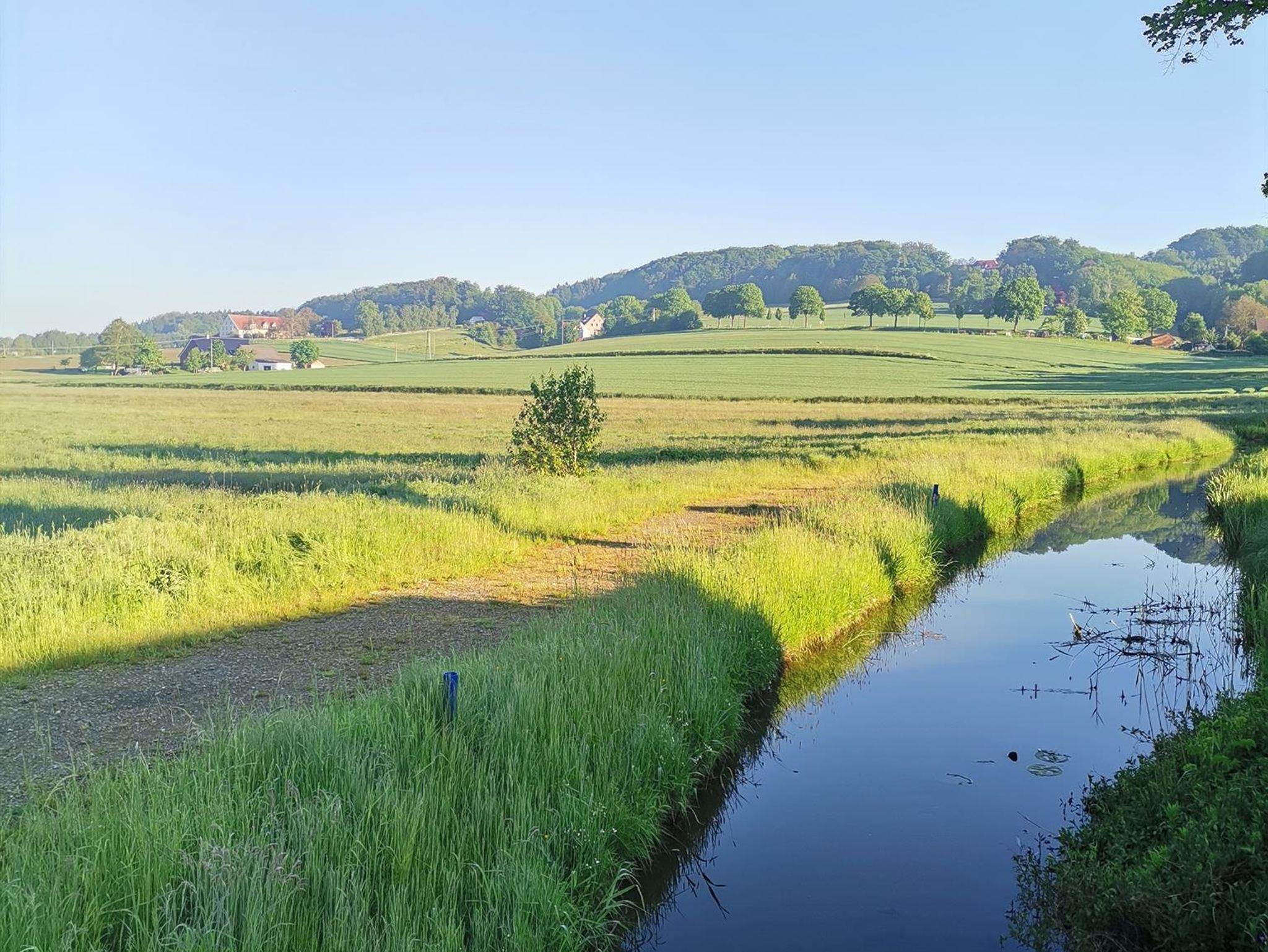 Die Nichtraucher-Ferienwohnungen haben eine Nord-West-Ausrichtung und sind mit einem wunderschönen Ausblick in die hügelige Natur des südlichen Teutoburger Walds zu genießen. Das Tal des Königsbaches ist in der untergehenden Abendsonne vom Balkon (nur in FeWo 3) aus zu erleben. Der kleine Fluss treibt noch heute beim direkten Nachbarn eine kleine Wassermühle an! Außerdem trennt der Königsbach unmittelbar die Ortschaften „Klein Dratum“ mit alten Sandsteingehöften und „Alt Uphöfen“ mit seinen althandwerklichen Fachwerkhöfen.