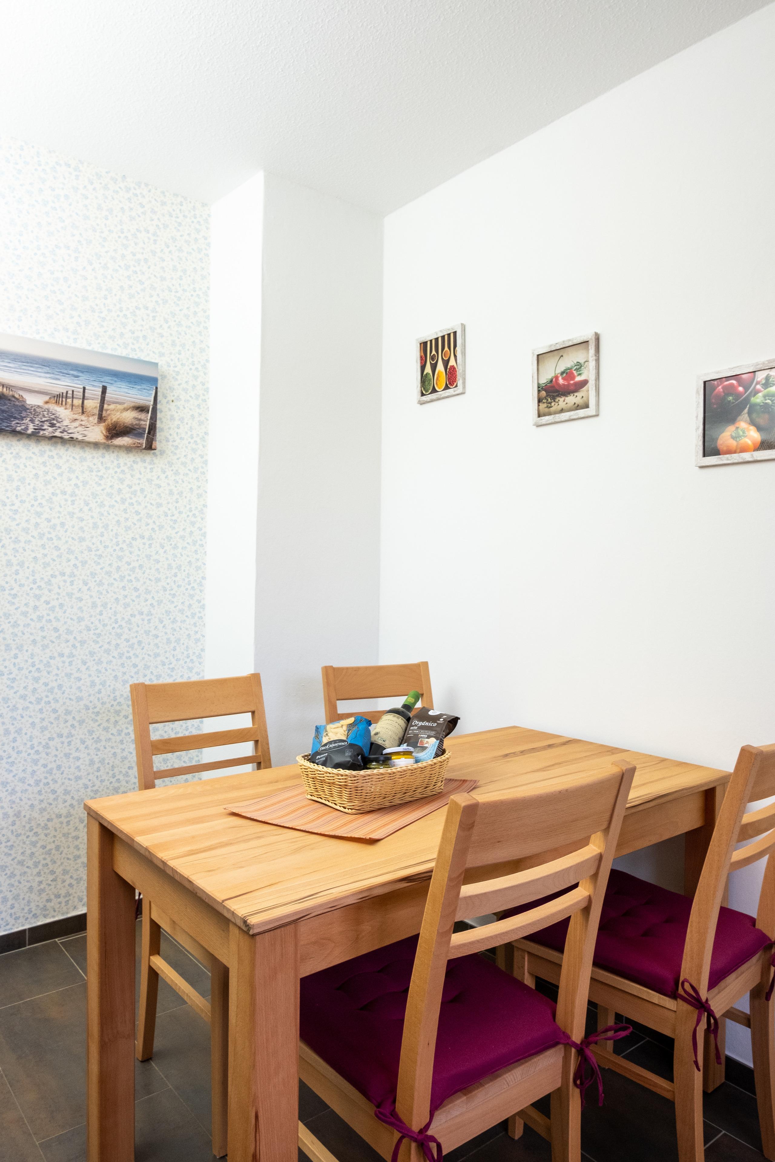 In der Wohnküche befindet sich ein weiterer Tisch mit 4 Stühlen, eine Spühlmaschine, ein Induktionsherd mit Ofen, eine Kaffeemaschine (sowie Espressokocher und Siebstempelkanne), ein Toaster und ein Wasserkocher. Es bleibt viel Platz für Ihre Lebensmittel.