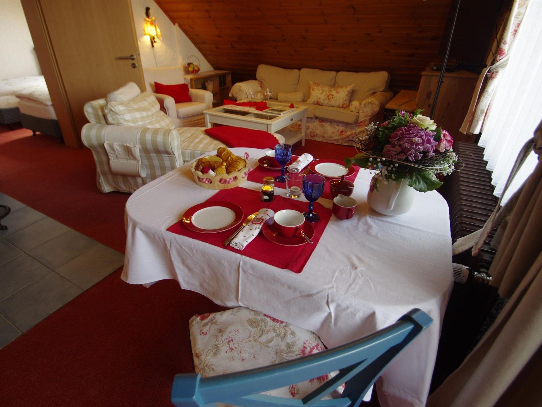 • Großzügiger Wohnraum mit Essecke, offener Kamin, SatTV, DVD-Player, Stereoanlage