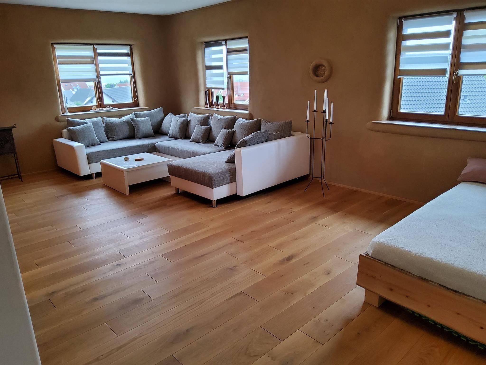 Erleben Sie ihren Urlaub in einer ganz besonderen Atmosphäre. Die 2021 fertiggestellte Naturhaus-Villa in Massivholz und ökologischer Strohballenbauweise mit Lehmwänden und einer Sockelheizung, verstrahlt ein besonders harmonisches Klima. Warmwasser sowie Heizung wird ausschließlich über unsere Solaranlage und einem wassergeführten Holzofen im Haupthaus erzeugt. Unseren Traum vom strahlenreduzierten Zuhause mit besonderer Wohlfühlatmosphähre möchten wir hier mit Ihnen teilen. Ganz in der Nähe können sie auf verschiedene Rundwege rund um Hofbieber zum Wandern starten. Auch einen Ausflug auf die Milseburg ist von hieraus nicht weit, von wo aus Sie auch auf dem Hochrhöner Wanderweg einsteigen können oder alternativ eine Radtour auf dem Milseburgradweg unternehmen können. Die Barockstadt Fulda ist mit dem Auto 12 Minuten entfernt. Ausflüge zum Kreuzberg , zur Wasserkuppe und zum Point Alpha sind weitere Highlights im Umkreis von Hofbieber.