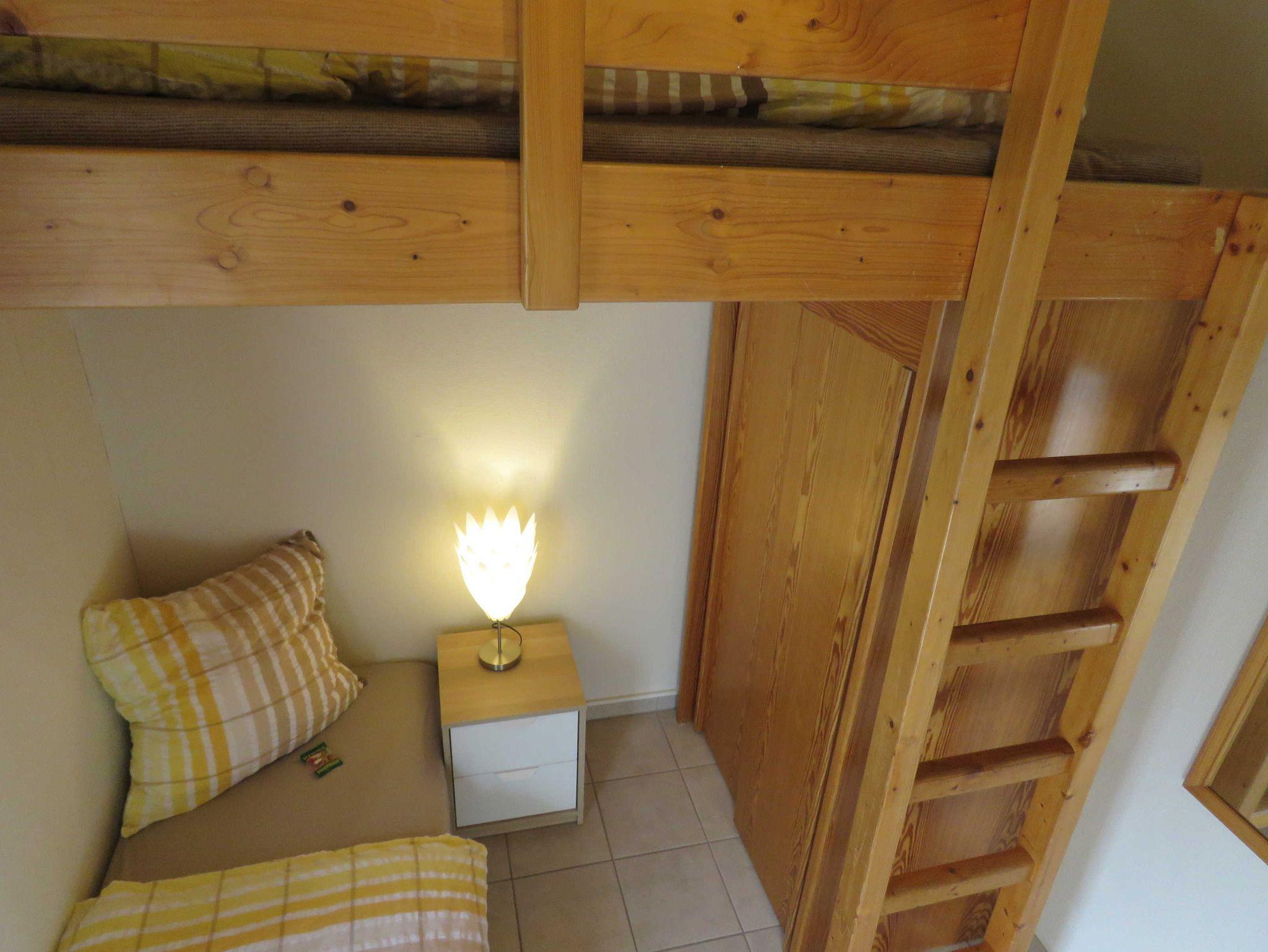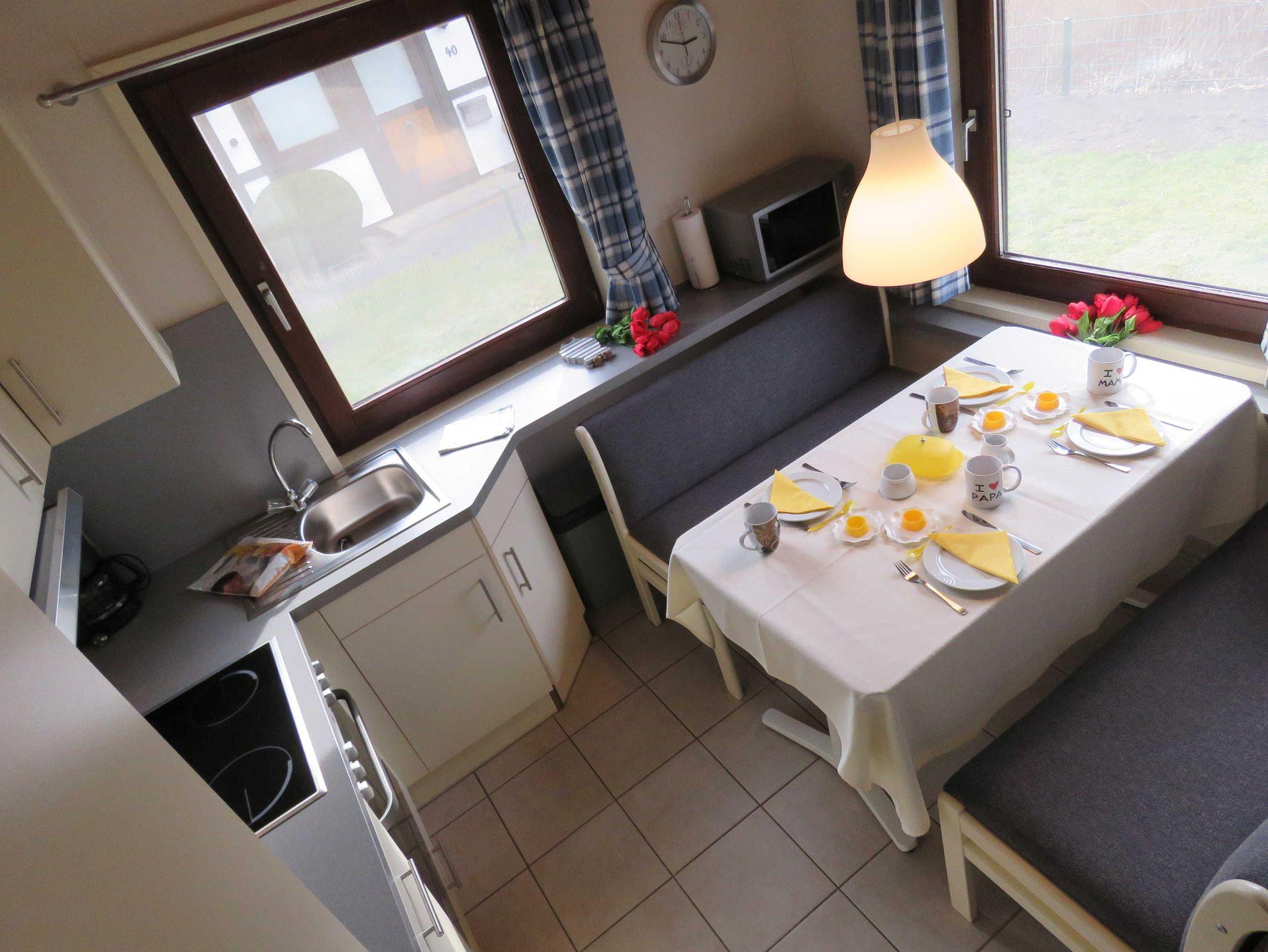 Unser gemütliches, ebenerdiges Ferienhaus 38, vom Typ Scout 48, mit eingezäuntem Grundstück, bietet Ihnen eine Wohn-/Nutzfläche von ca. 48 m² und kann mit bis zu 4 Personen (+ 1 Kleinkind im Kinderreisebett) belegt werden. Das Haus verfügt über einen Schlafraum mit zwei Einzelbetten, einen Schlafraum mit einem Einzelbett und einem eingebauten Hochbett, ein Badezimmer (Dusche / WC), einen außenliegenden Abstellraum und ein Wohnzimmer mit angrenzender Küche (Ceran-Kochfeld/Backofen, Kühlschrank/Gefrierfach, Mikrowelle und Spülmaschine) mit Essplatz. Zugang zur möblierten Terrasse vom Wohnzimmer. Nichtraucherhaus - kostenloses WLAN - Haustiere erlaubt - Brötchenservice von Ostern bis Oktober!