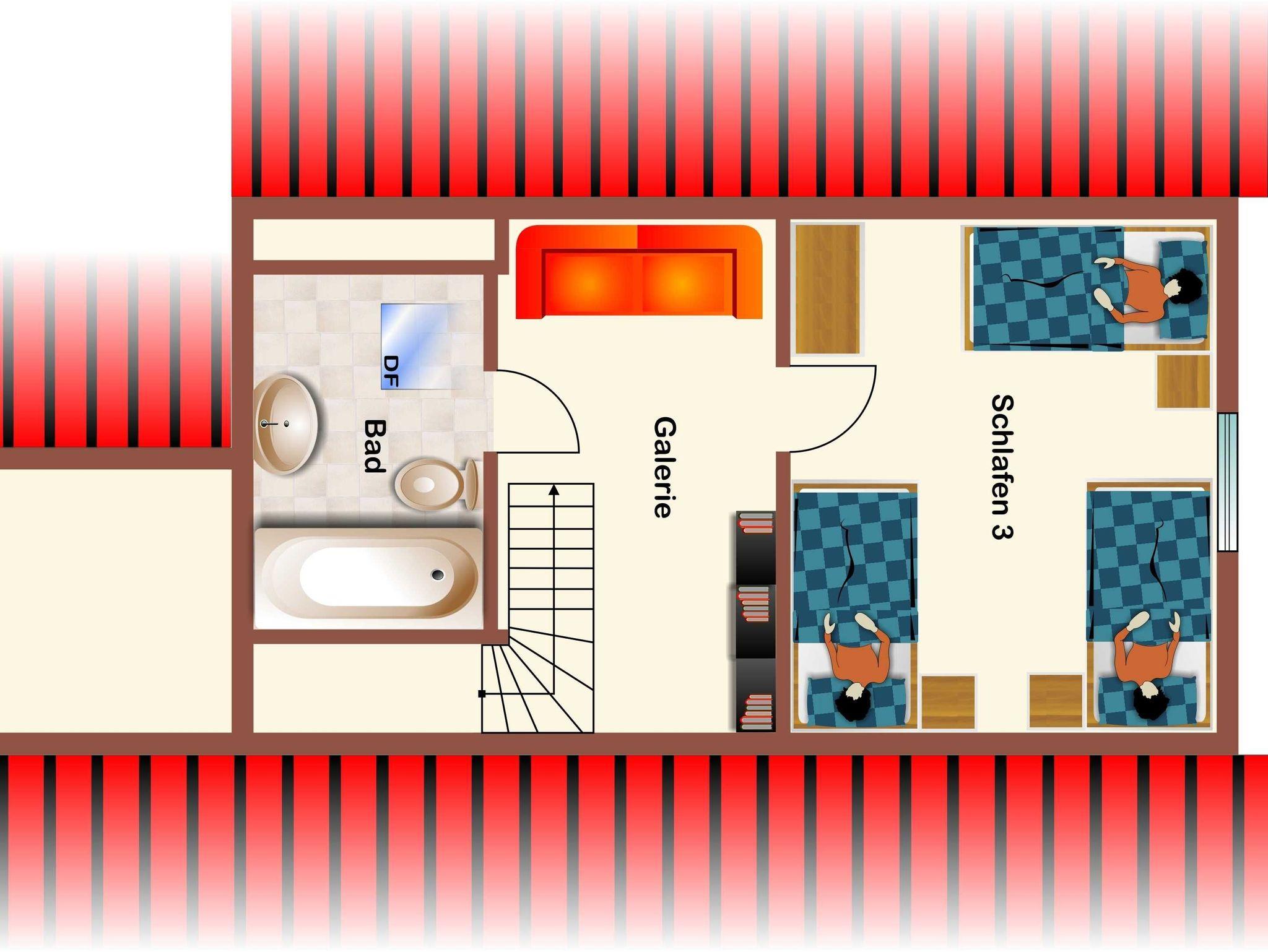 Das Ferienhaus Nr. 327 vom Typ Hanse verfügt über ca. 80 m² Wohn-/Nutzfläche und liegt in idyllischer Randlage (autofreier Bereich) mit Blick auf die Wettern. Das Haus kann mit bis zu 7 Personen (+1 Kleinkind im Kinderreisebett) belegt werden. Im Erdgeschoss befinden sich das Badezimmer (Dusche/WC), ein Schlafraum mit einem Doppelbett, 1 Schlafraum mit einem Etagenbett und das Wohnzimmer mit offener Küche (Cerankochfeld/Backofen, Kühl-schrank/Gefrierfach, Mikrowelle, Spülmaschine) und Essplatz. Zugang zur möblierten Terrasse vom Wohnzimmer. Zum Obergeschoß führt eine relativ steile, offene Treppe. Dort befinden sich ein weiterer Schlafraum mit 2 Einzelbetten, das 2. Badezimmer (Wanne / WC) sowie die Empore (Flur Bereich) mit zusätzlicher Schlafcouch. Im außenliegenden Abstellraum oder dem zum Haus gehörenden Gartenhaus befindet sich ein Kofferwagen für den Gepäcktransport. Nichtraucherhaus - kostenloses WLAN - Haustiere erlaubt - Brötchenservice von Ostern bis Oktober!
