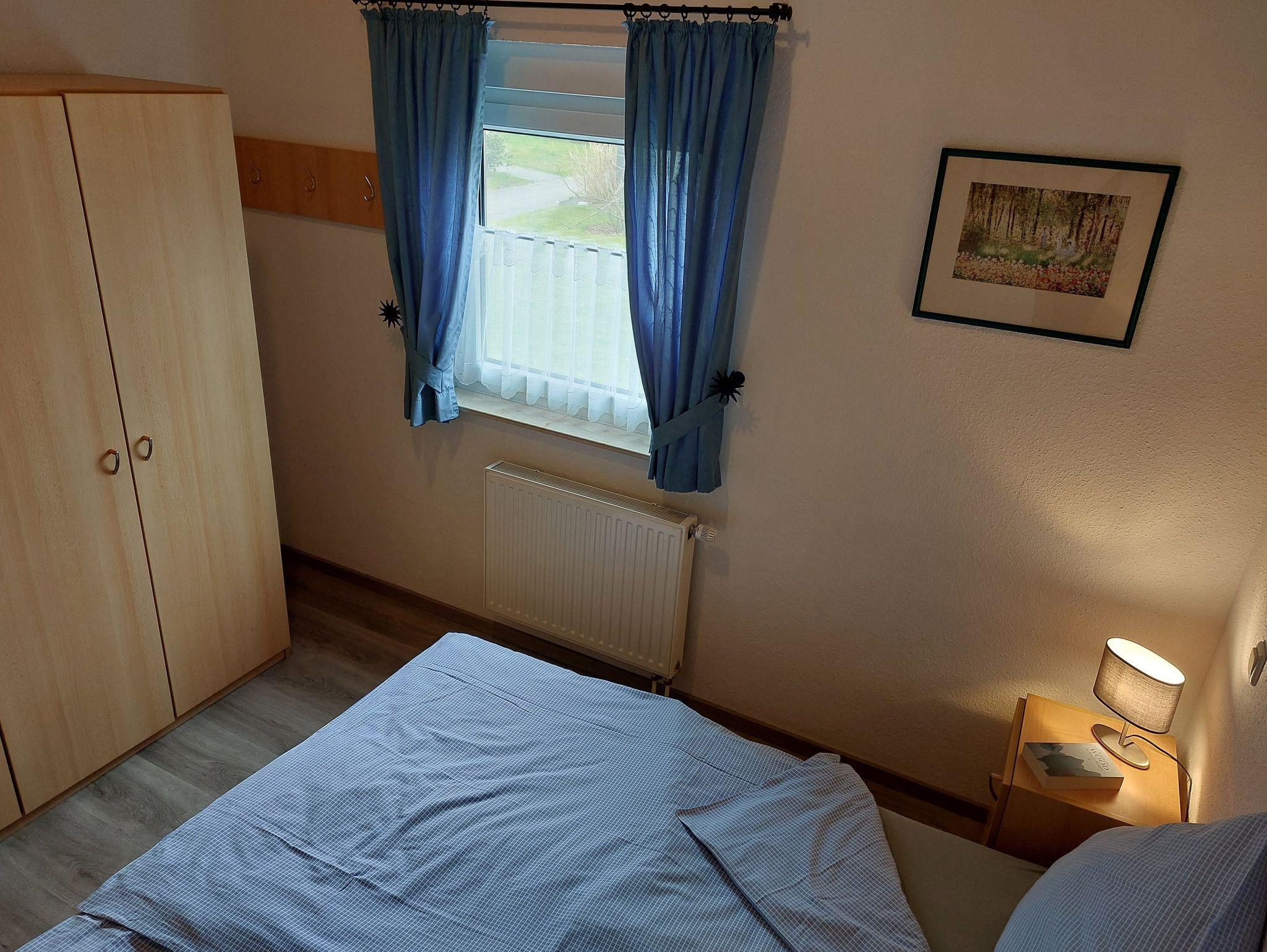 Das massiv errichtete, ebenerdige Ferienhaus 309 vom Typ Kogge befindet sich im absolut autofreien Teil unseres schönen Feriendorfes - ruhige Randlage mit Blick auf die Wettern und einen alten Obsthof. Das Haus verfügt über ca. 60 m² Wohn-/Nutzfläche und kann mit bis zu 5 Personen (+1 Kleinkind im Kinderreisebett) belegt werden. Das Ferienhaus bietet Ihnen neben einem Schlafraum mit einem Doppelbett, einem Schlafraum mit 2 Einzelbetten und einem eingebauten Hochbett, einem Badezimmer (Dusche / WC) und einem Abstellraum ein geräumiges Wohnzimmer mit offener Küche (Ceran-Kochfeld/Backofen, Kühlschrank/Gefrierfach, Mikrowelle, Spülmaschine) und Essplatz. Zugang zur möblierten Terrasse vom Wohnzimmer. Für den Gepäcktransport steht im Abstellraum ein Kofferwagen zur Verfügung. Nichtraucherhaus - kostenloses WLAN - Haustiere erlaubt - Brötchenservice von Ostern bis Oktober!