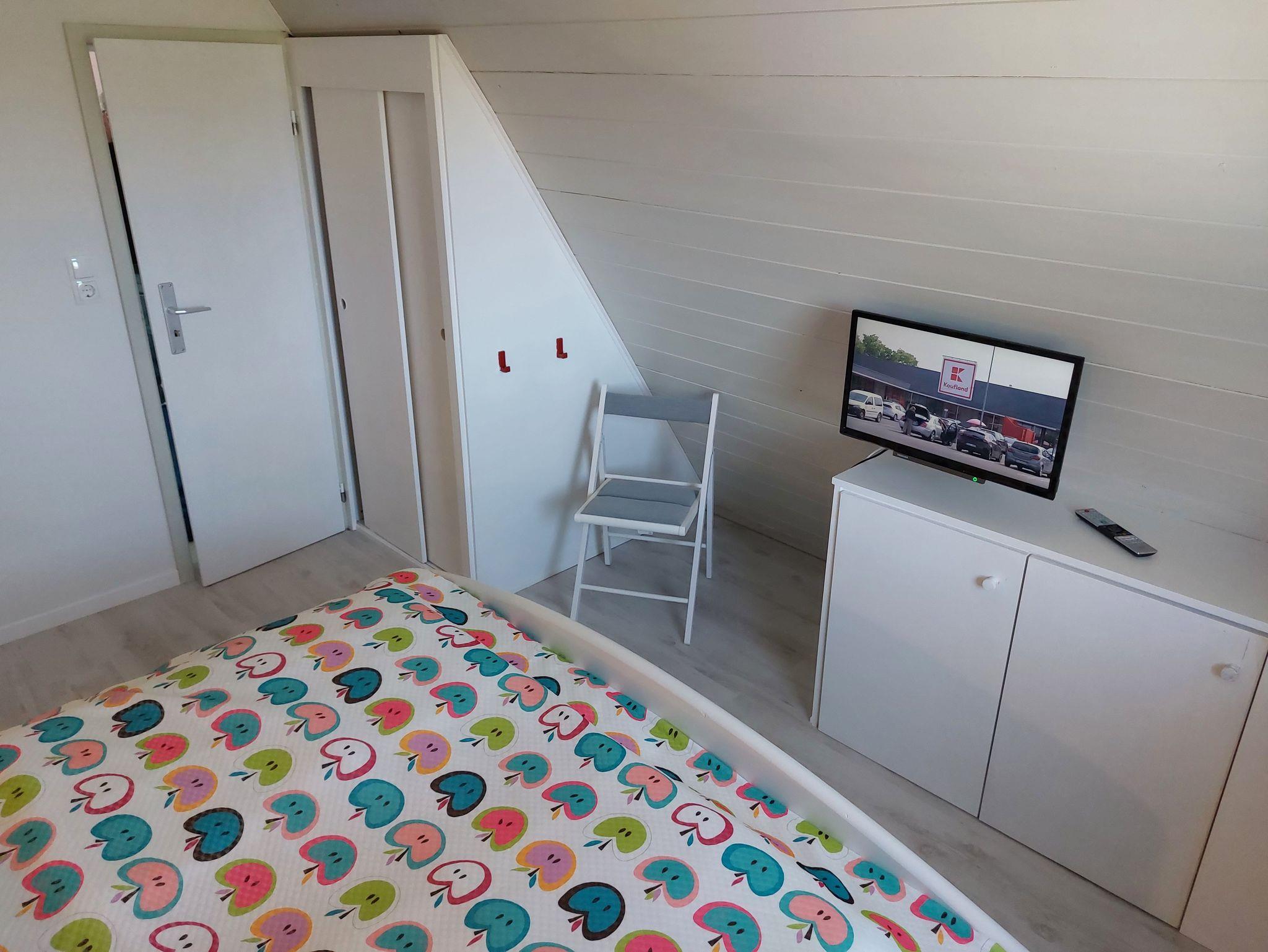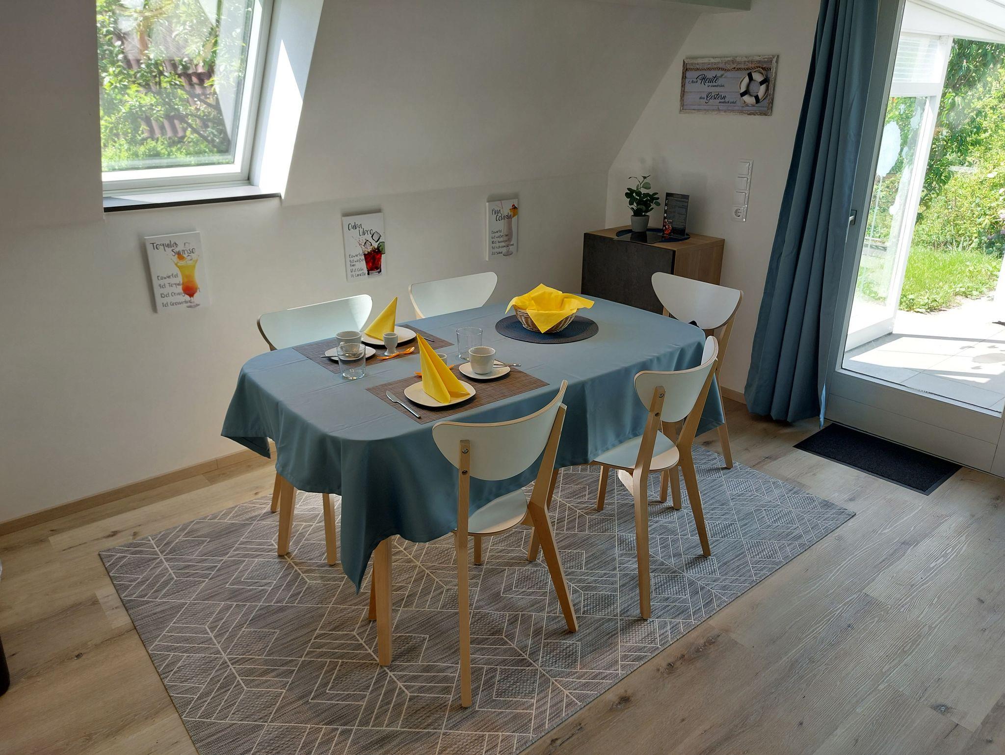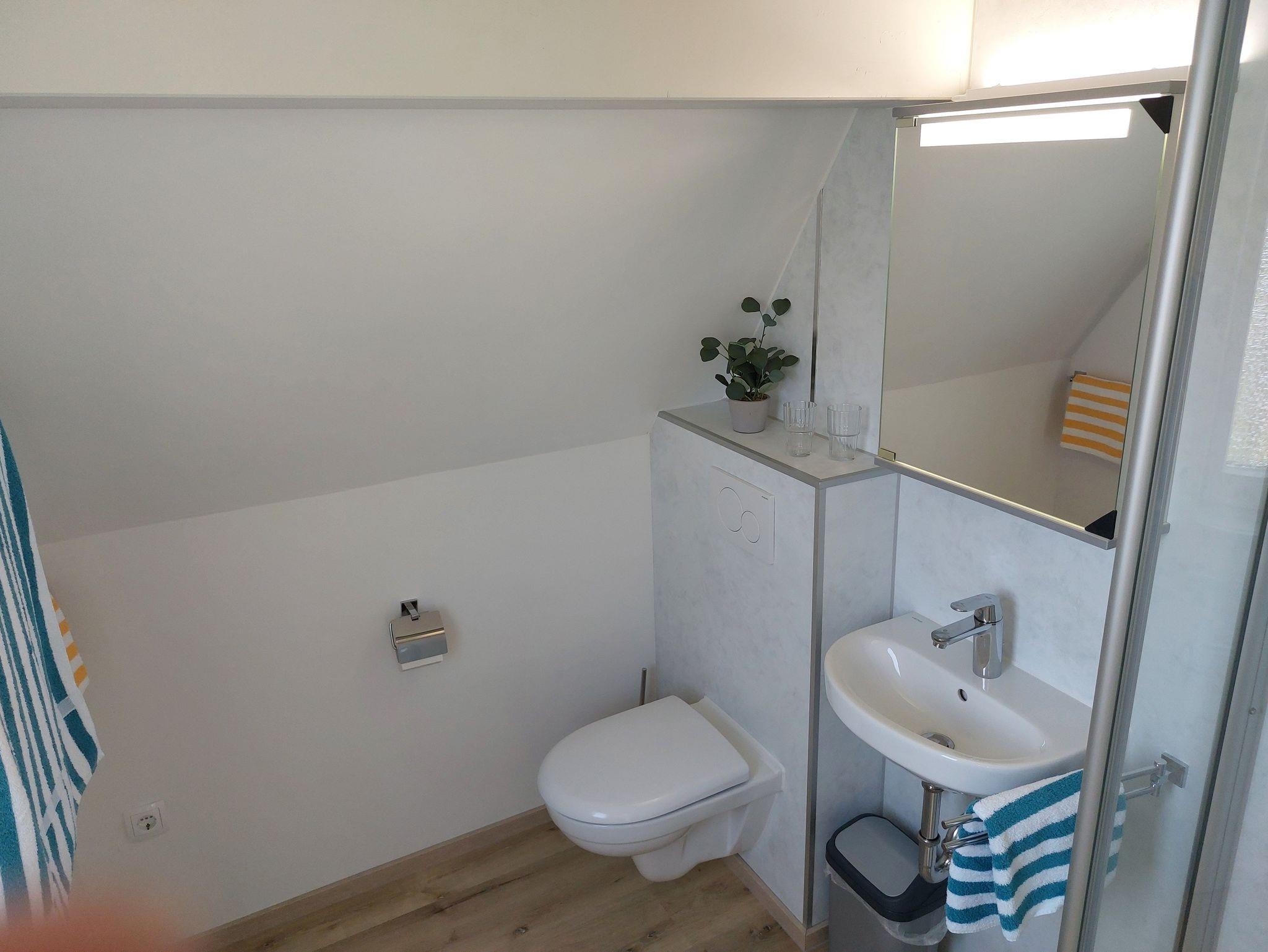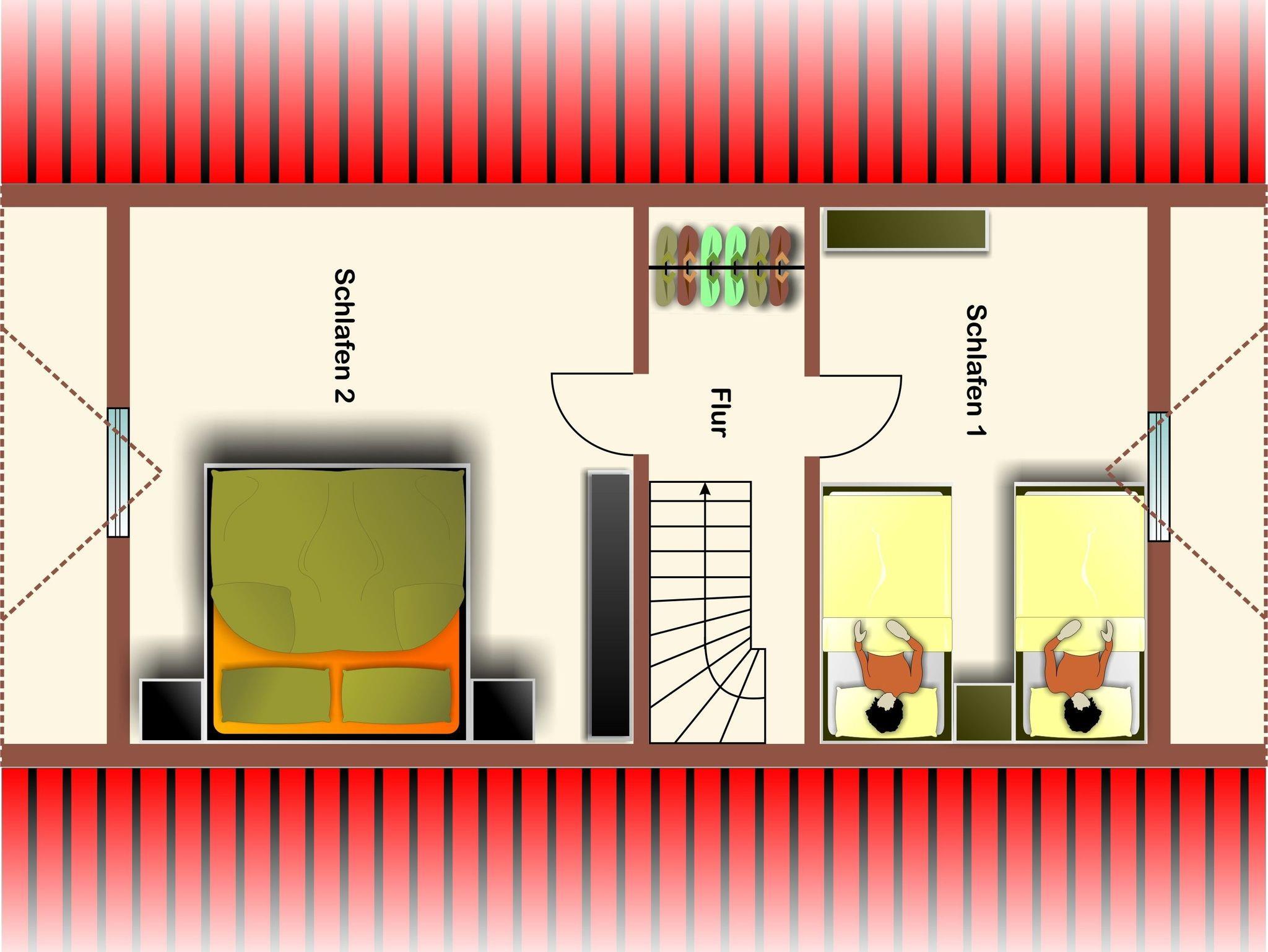 Die Nurdach-Ferienhäuser vom Typ Lederstrumpf verfügen über eine Wohn-/Nutzfläche von ca. 66 m² und können mit bis zu 5 Personen belegt werden (+ 1 Kleinkind im Kinderreisebett). Im Erdgeschoss befindet sich das Badezimmer (Dusche/WC), der innenliegende Abstellraum (Waschmaschine/Trockner), die Küche (Ceran-Kochfeld/Backofen,Kühlschrank/Gefrierfach und Spülmaschine) und der Wohnraum (Zugang zur möblierten und überdachten Terrasse) mit Schlafcouch und angrenzender Essecke. Im Obergeschoss befinden sich ein Schlafraum mit einem Doppelbett und ein Schlafraum mit zwei Einzelbetten. Nichtraucherhaus - kostenloses WLAN - Haustiere erlaubt - Brötchenservice von Ostern bis Oktober!