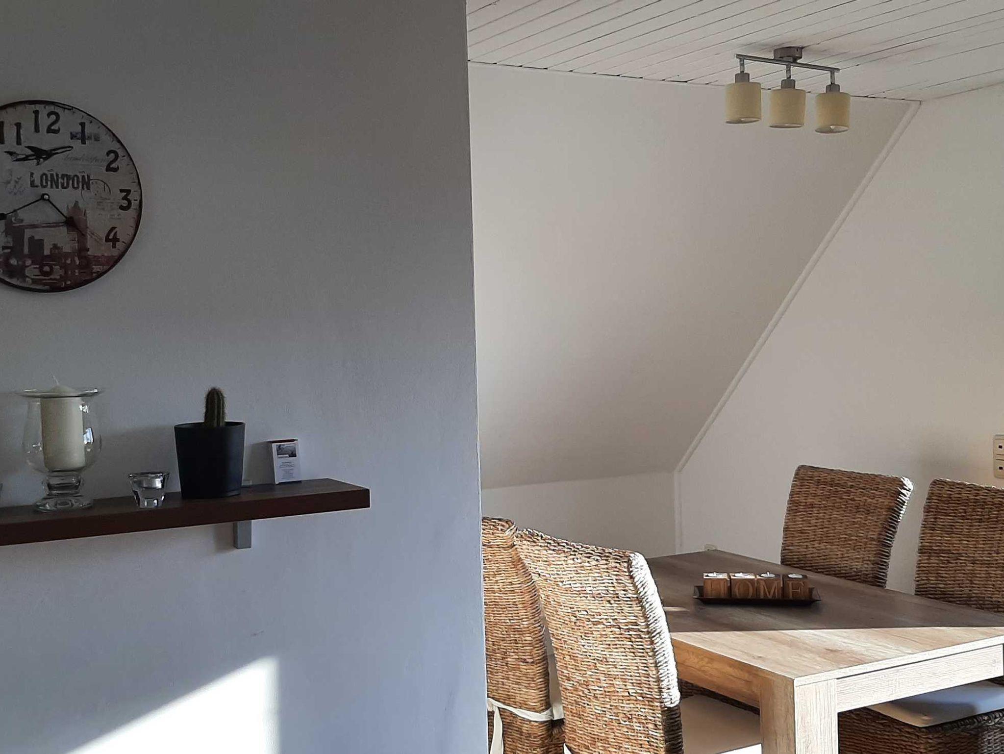 Die Ferienwohnung liegt im Obergeschoss eines Doppelhauses. Die frisch genovierten Schlafzimmer sind mit 2 Doppelbetten (1x 1,80m & 1x 1,60m) ausgestattet. Die Küche, Bad (mit Badewanne und Dusche) und der Flur sind mit Fliesen ausgelegt, der Rest der Wohnung mit Laminat / Vinylboden. Es handelt sich um eine Nichtrauerwohnung.