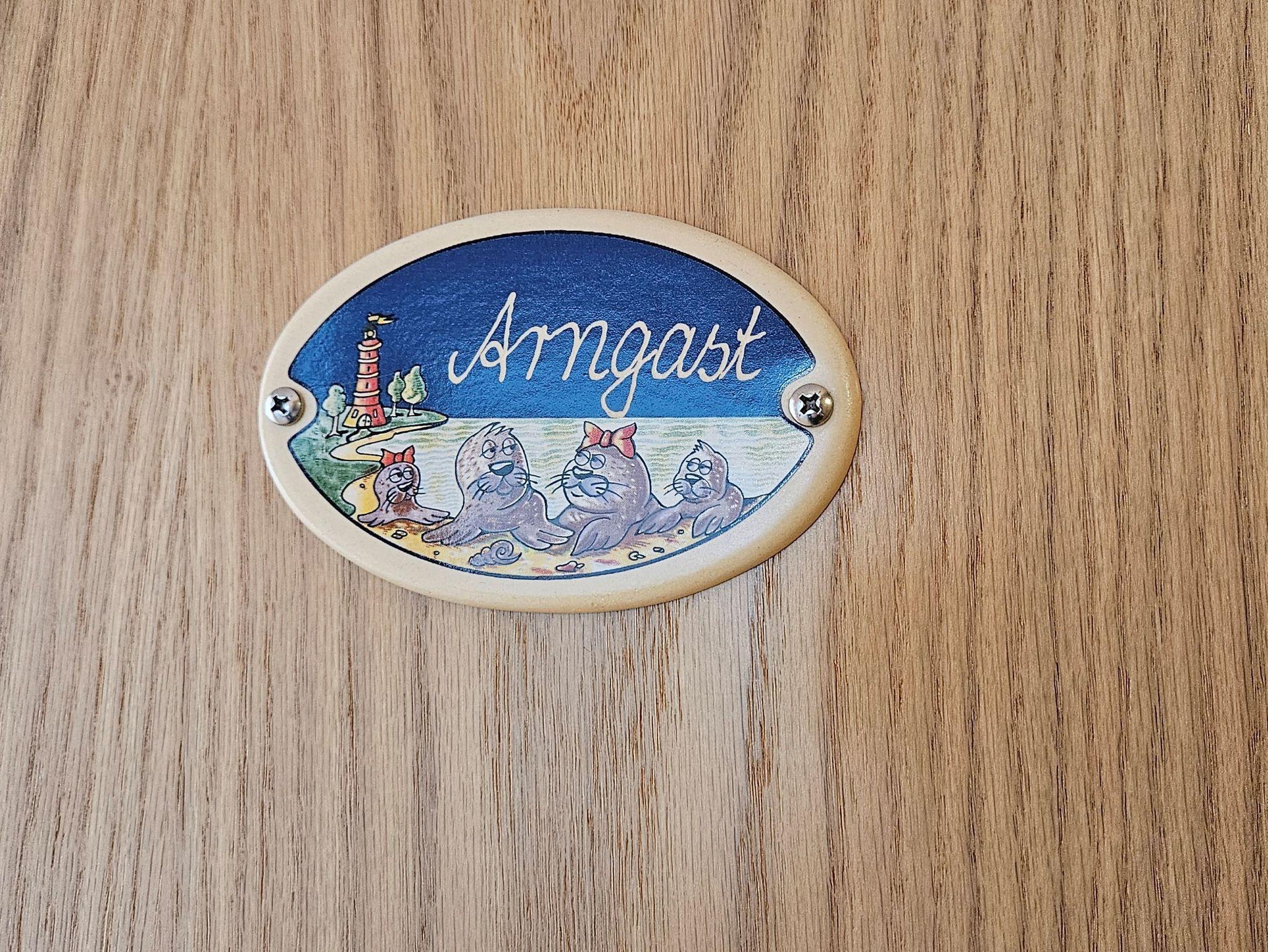Die Nichtraucher-Wohnung Arngast befindet sich im Obergeschoß des Hauses in ruhiger, aber zentraler Lage. Im Garten stehen Sitz- und Liegemöglichkeiten zur Verfügung. Weiterhin gibt es dort zwei Schaukeln, eine Rutsche, einen Sandkasten, ein Trampolin und eine Tischtennisplatte (Schläger liegen im Haus). Parkmöglichkeiten sind direkt am Haus vorhanden.