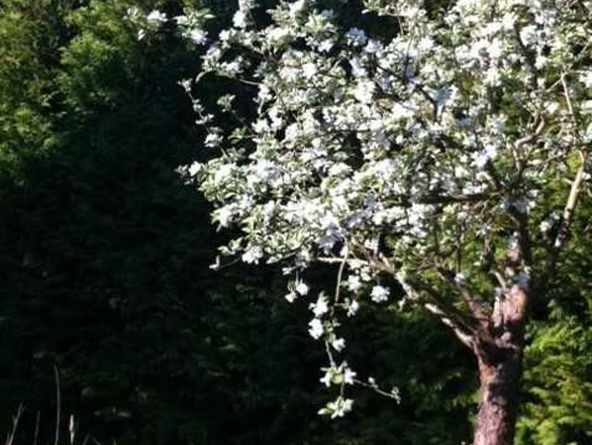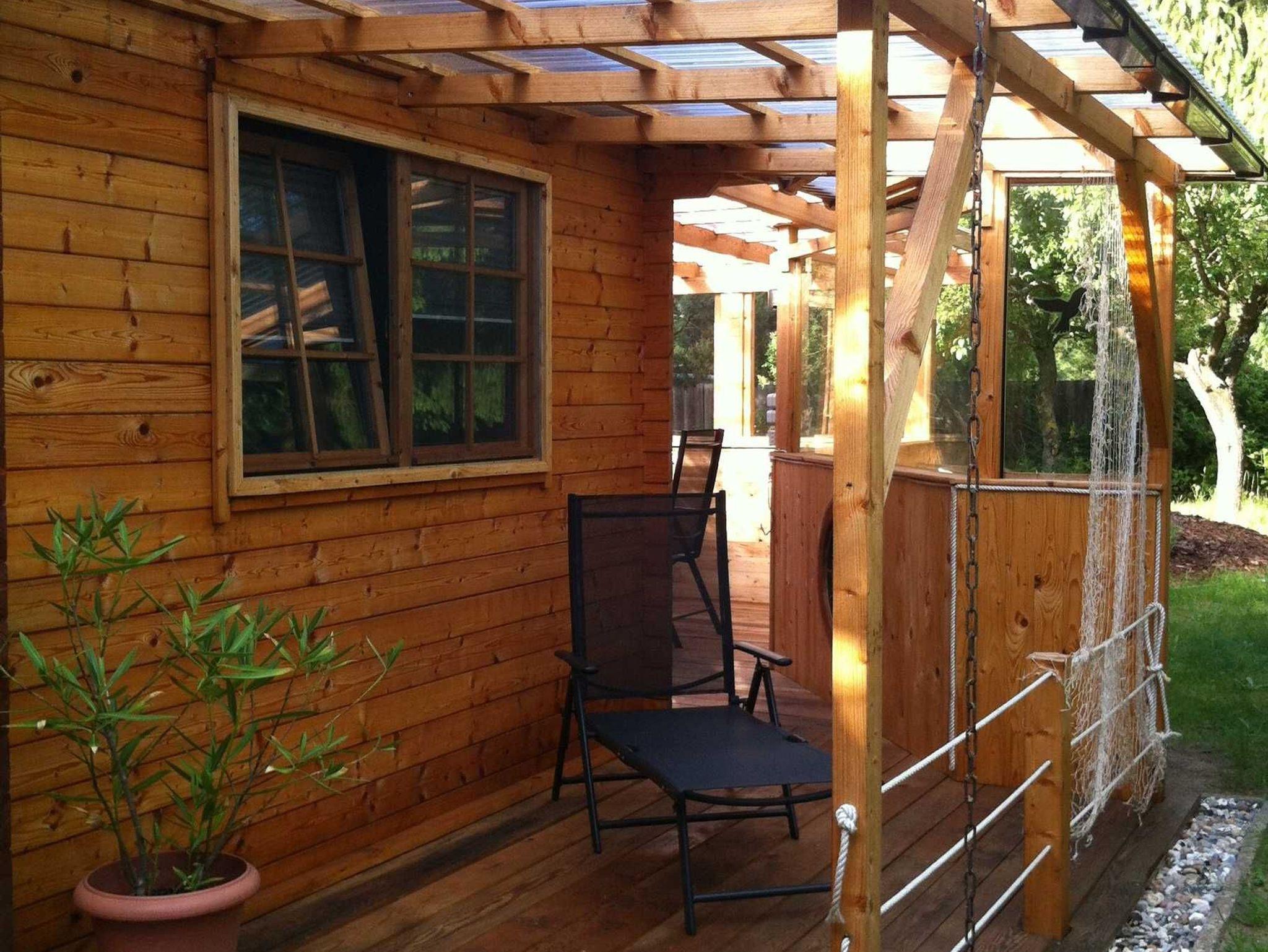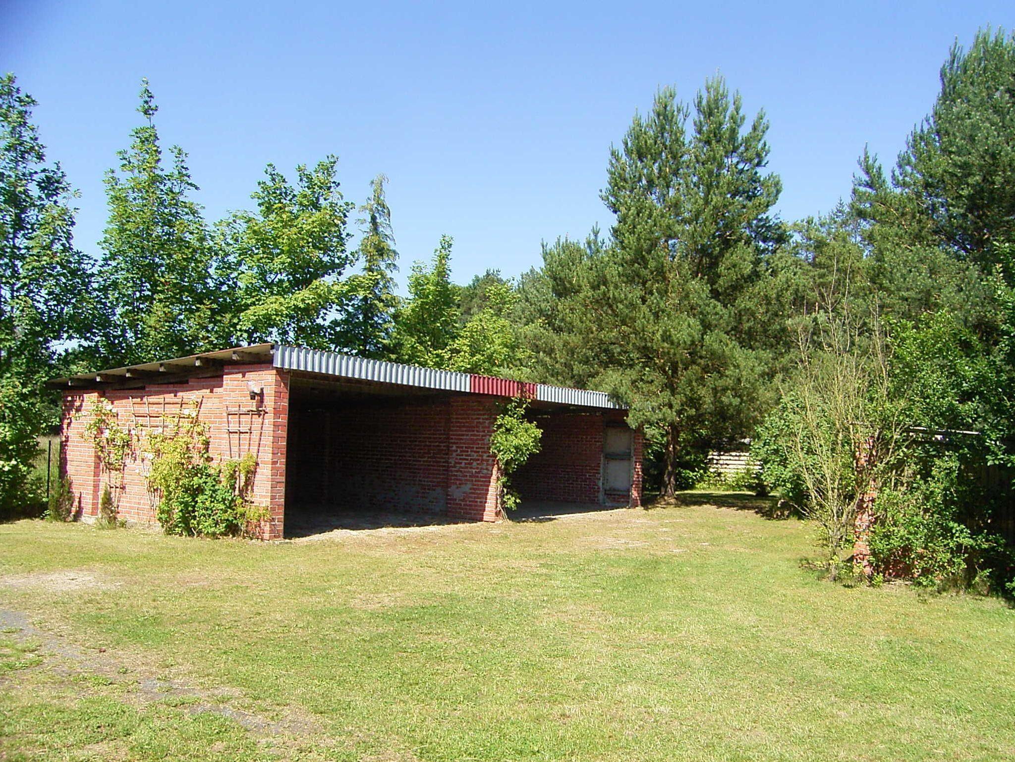 Der Bungalow liegt in der Nähe eines Bahnübergangs idyllisch am Waldrand, in großer gepflegter Gartenanlage (5000 m²), durch Hecken und Gebüsch vom Haupthaus abgegrenzt, in dem der Eigentümer wohnt.