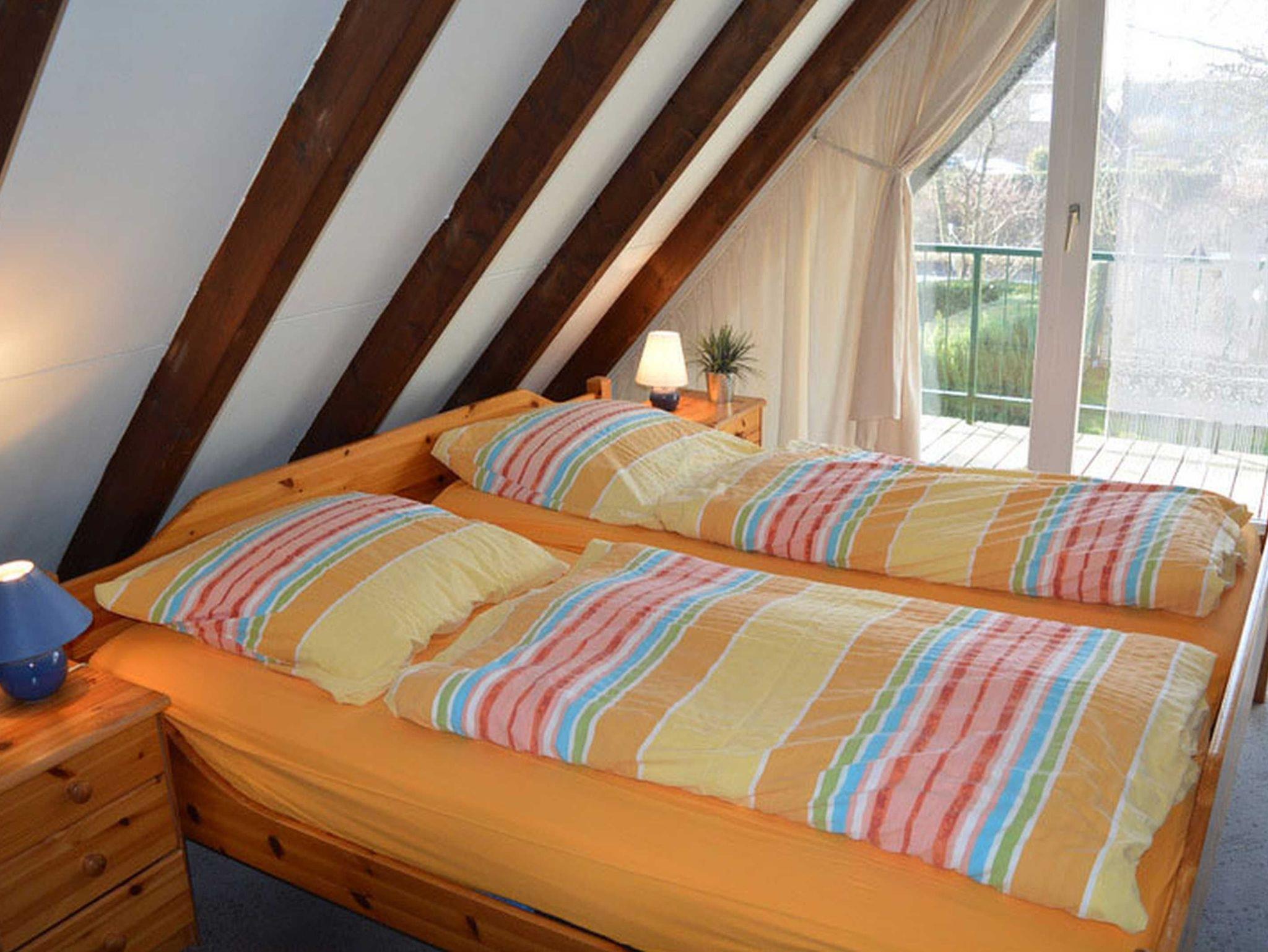 Das Ferienhaus Schütte verfügt im Erdgeschoss über ein Wohnzimmer mit offener Küche und Essplatz für 6 Personen mit einem direkten Zugang auf die Terrasse und den eingezäunten Garten. Im Erdgeschoss finden Sie ebenfalls ein Kinderschlafzimmer mit Etagenbett, ein Badezimmer sowie ein Gäste-WC. In der ersten Etage befinden sich zwei Schlafzimmer. Das Hauptschlafzimmer ist mit einem Doppelbett und direkten Zugang auf den Balkon, das andere Schlafzimmer mit zwei Einzelbetten ausgestattet.