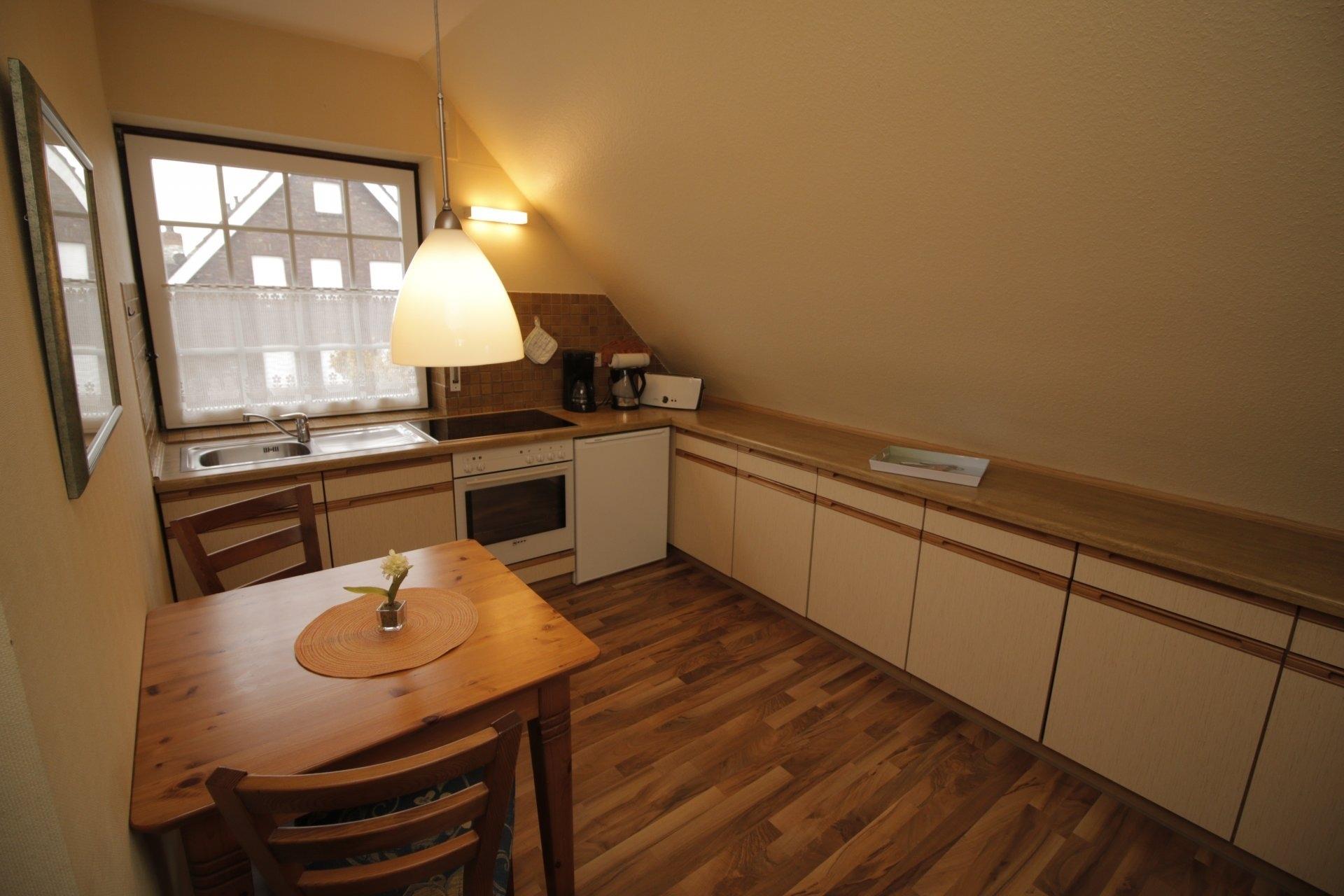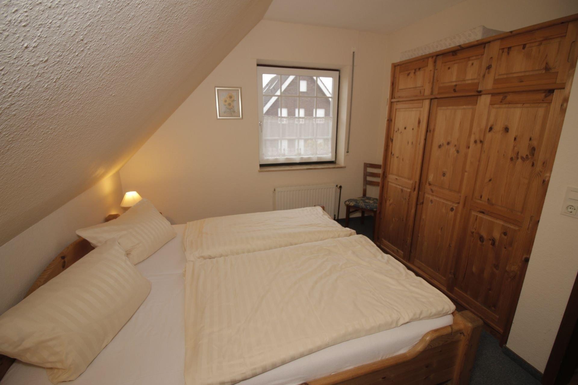 Diese gemütliche Oberwohnung befindet sich in einer ruhigen Anliegerstraße und besteht aus einem Schlafzimmer, einem hellen Wohnraum mit Schlafcouch, einem Tageslicht-Duschbad mit Waschbecken und WC. An den Wohnraum grenzt die Einbauküche mit Essplatz und der Zugang zur Dachterrasse an. Ein Strandkorb steht auf Ihrer Dachterrasse für sonnige Stunden bereit. Waschmaschine und Trockner sind im Haus vorhanden. Ein PKW-Stellplatz und ein Fahrradabstellraum befinden sich direkt am Haus. Alle Räume haben Außenrollos. Kostenloses W-Lan.