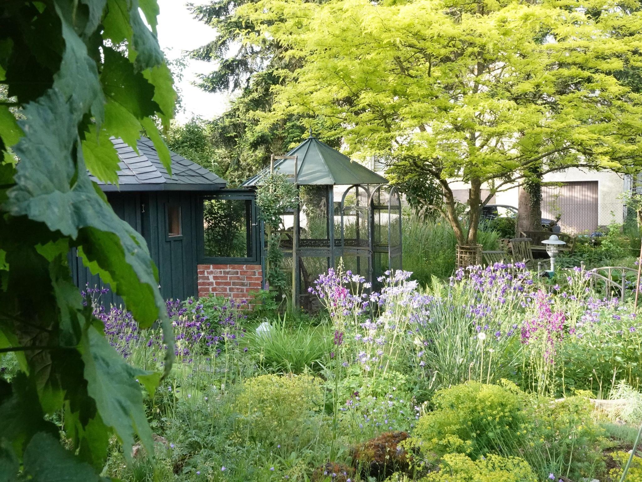 • Außenbalkon mit Tischen und Stühlen für gute Gespräche, bei einem leckeren Glas Wein und einem Ausblick auf unseren wundervollen, naturnahen Bauerngarten