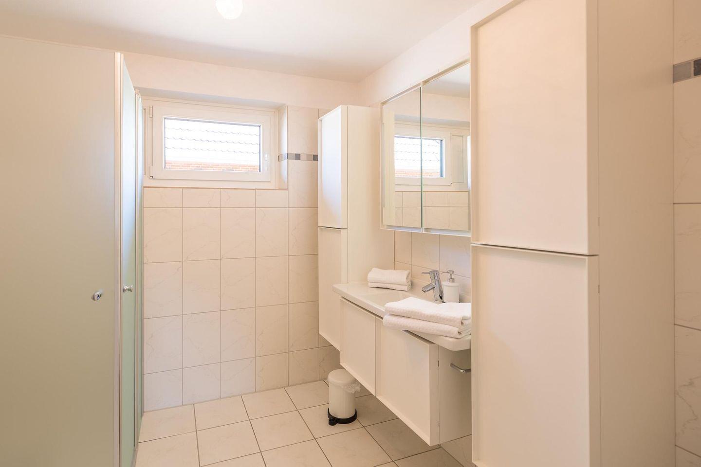 Die 3-Zimmerwohnung für bis zu 4 Personen verfügt über ein Schlafzimmer mit einem Doppelbett (180 x 200) und einem weiteren Schlafzimmer mit zwei Einzelbetten (90 x 200). Das Duschbad und das separate WC befinden sich im gleichen Flur. Im Wohnzimmer können Sie in der Wohnlandschaft gemütliche Stunden bei einem spannenden Buch verbringen oder aber den großen LCD-TV einschalten. Die offene, moderne und hochwertig ausgestatteten Küche mit Backofen, Ceranfeld, Geschirrspüler, Mikrowelle, Toaster, Kaffeemaschine (Filtergröße 4), Wasserkocher uvm. bietet Ihnen alle Annehmlichkeiten für Ihren entspannten Urlaub.