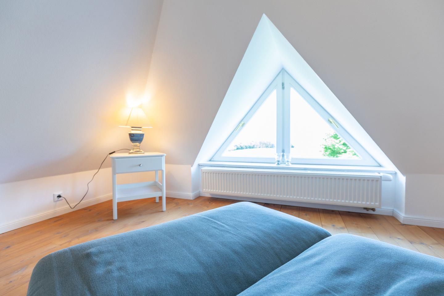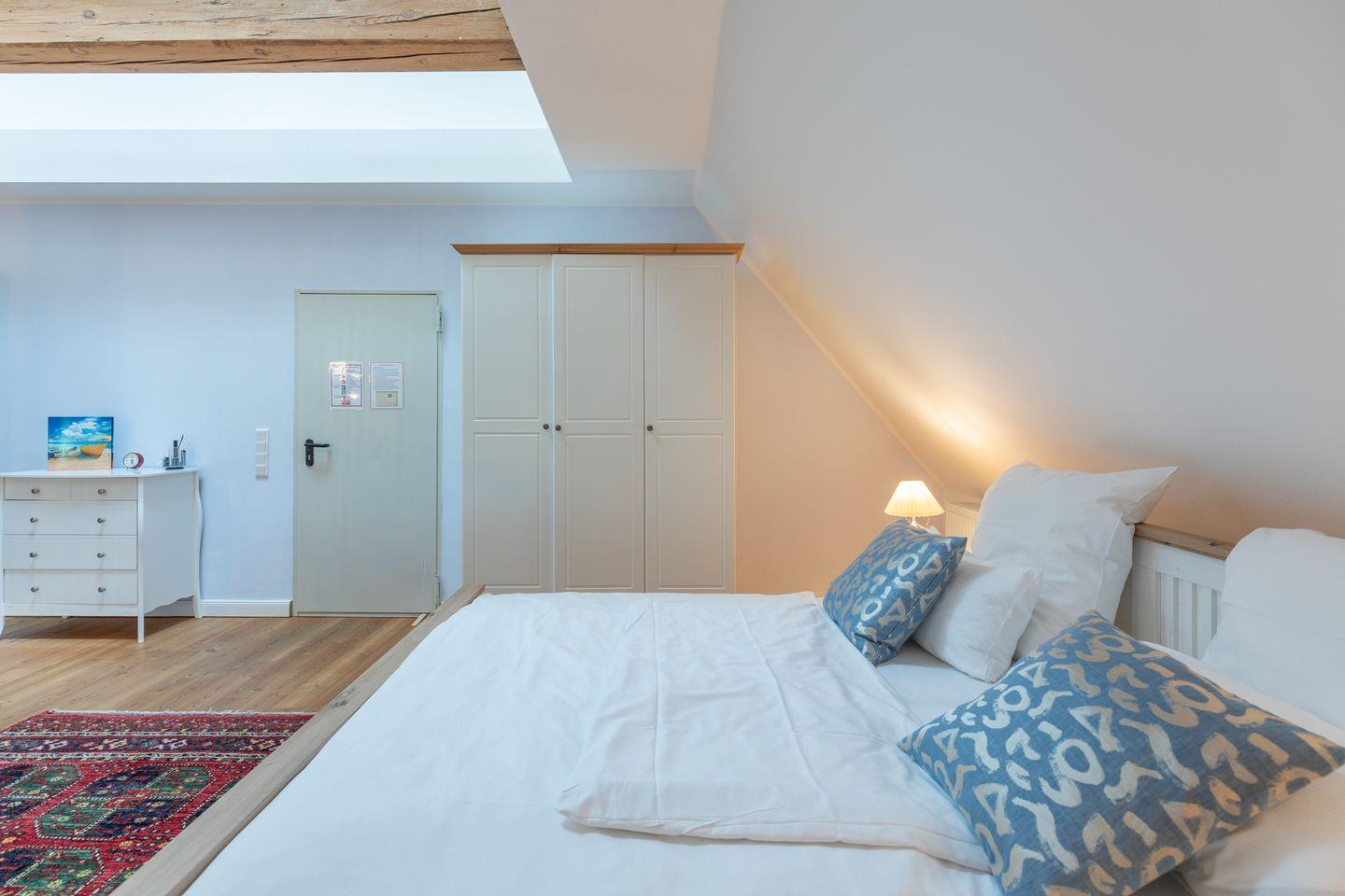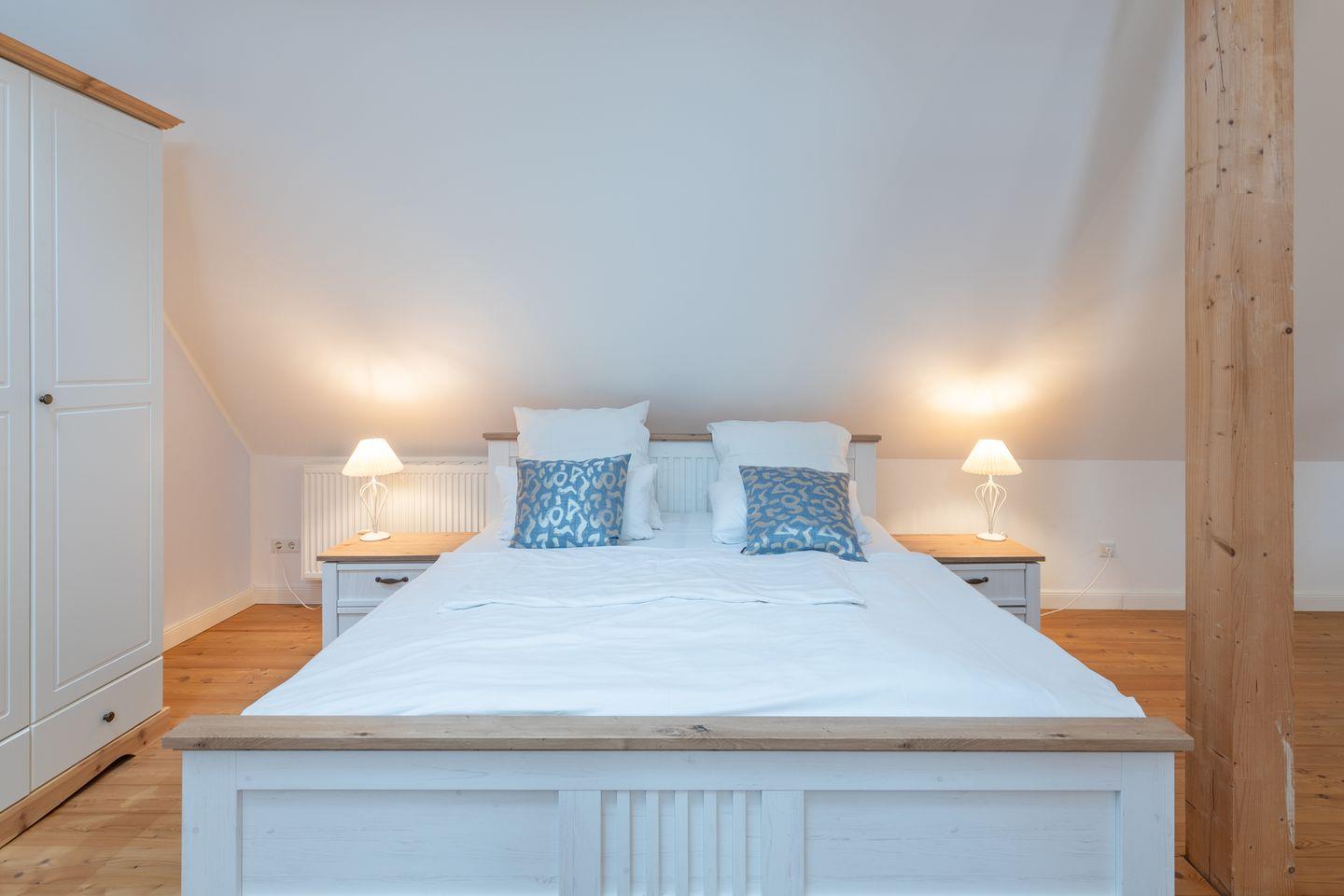 Über eine offene Holztreppe gelangen Sie zur Empore mit zwei Einzelbetten und Ihrer Lieblings-Chill-Ecke mit Blick auf die Nordsee.
