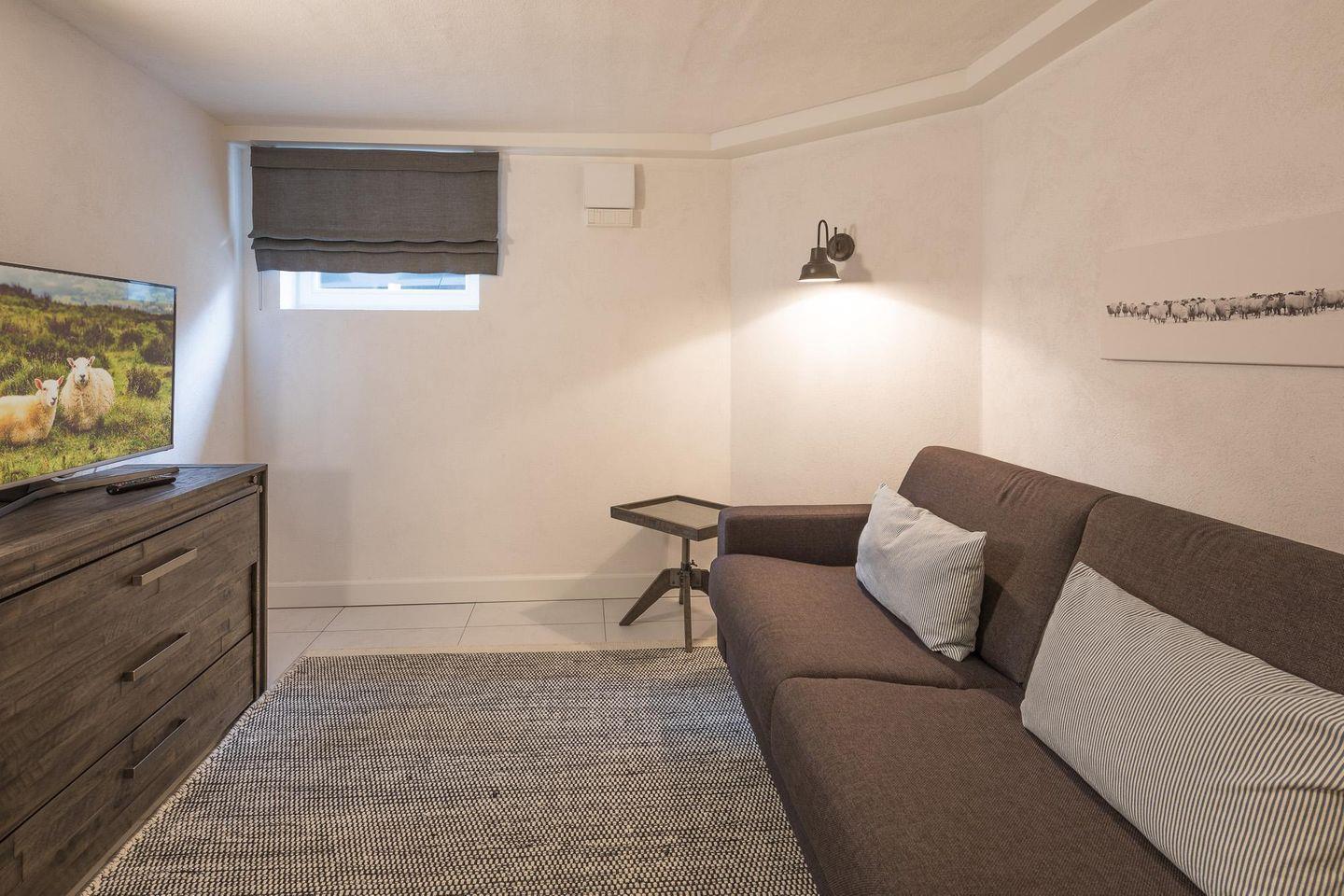 Das offene Wohnzimmer mit seiner gemütlichen Sitzecke vor dem Kaminofen (Gas) lädt mit einem Flachbild-TV (Kabel) zum Verweilen ein. Die beiden Schlafzimmer auf dieser Etage sind jeweils mit Boxspring-Betten (180 x 200) und TV ausgestattet.