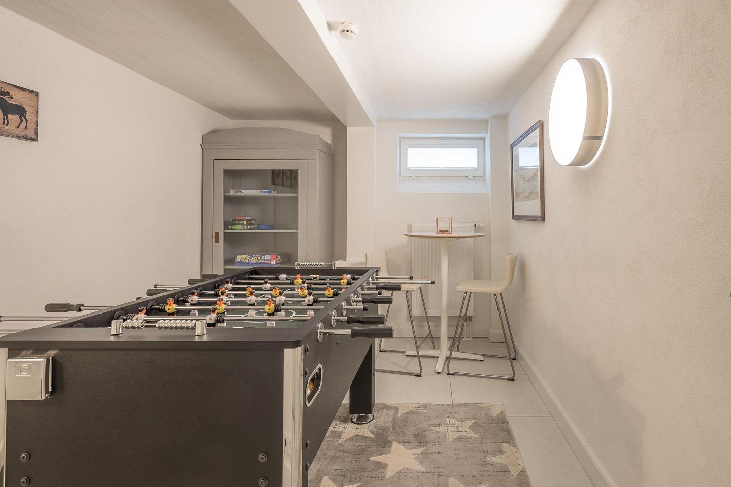 Ein weiterer Raum wird mit Spielgeräten zum spaßigen Zeitvertreib für die Kinder, Jugendlichen und Junggebliebenen ausgestattet.