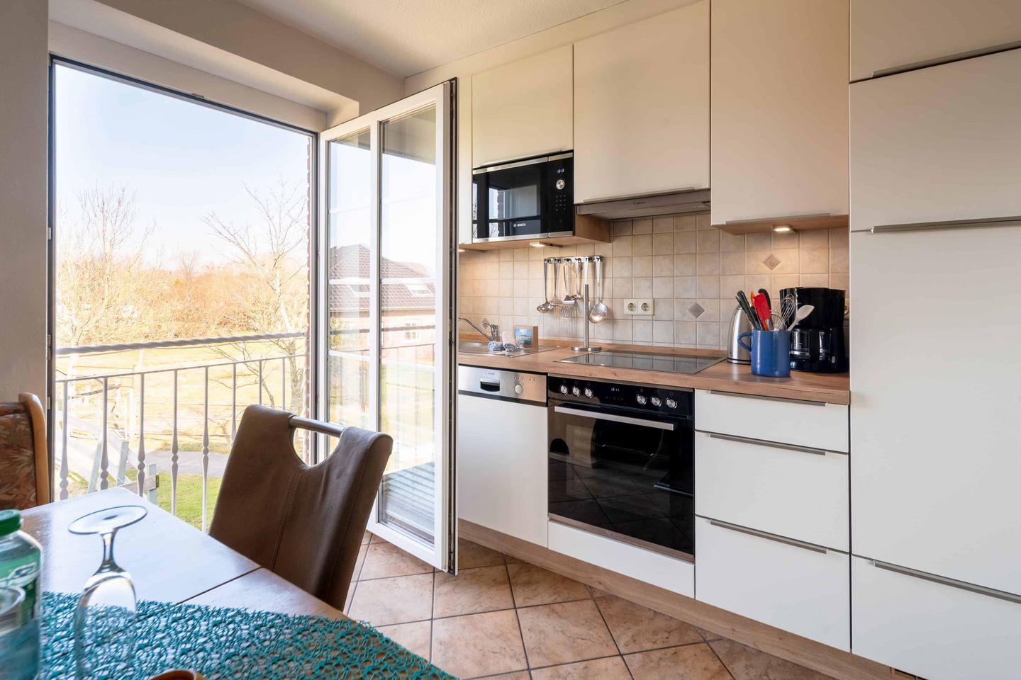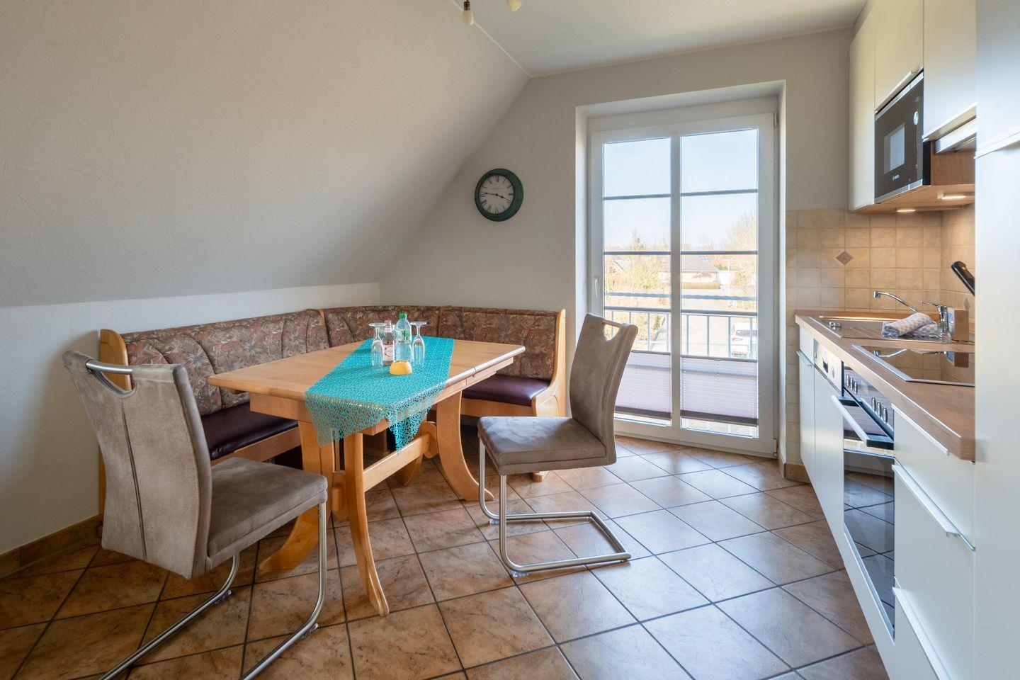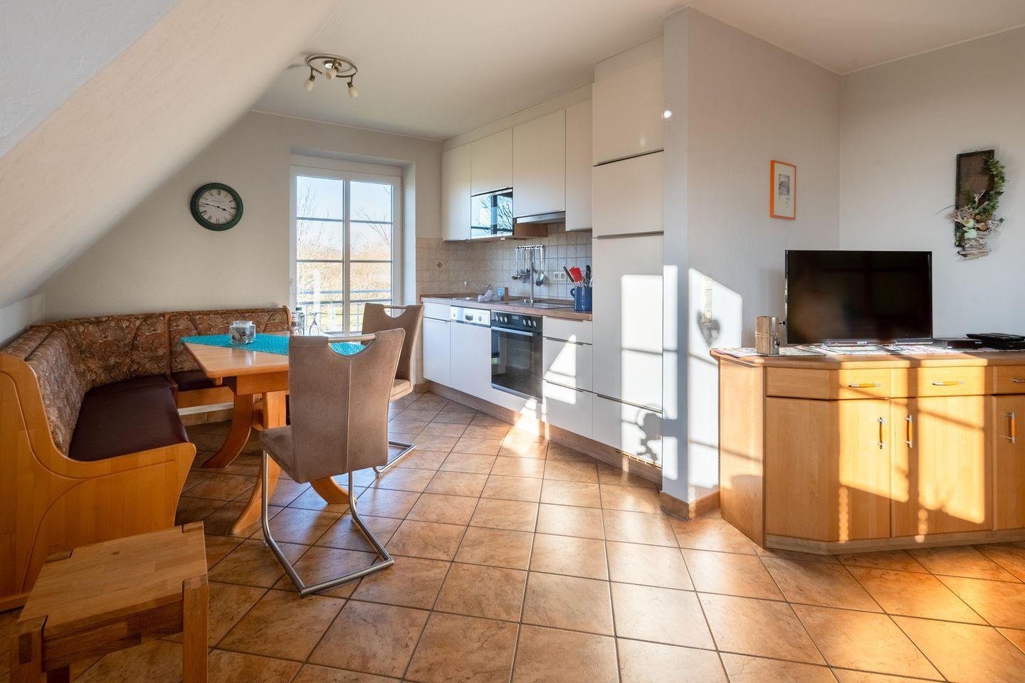 Die Ferienwohnung liegt im 1. Obergeschoss des Apartmenthauses "Maashof" und eignet sich besonders für Familien.
