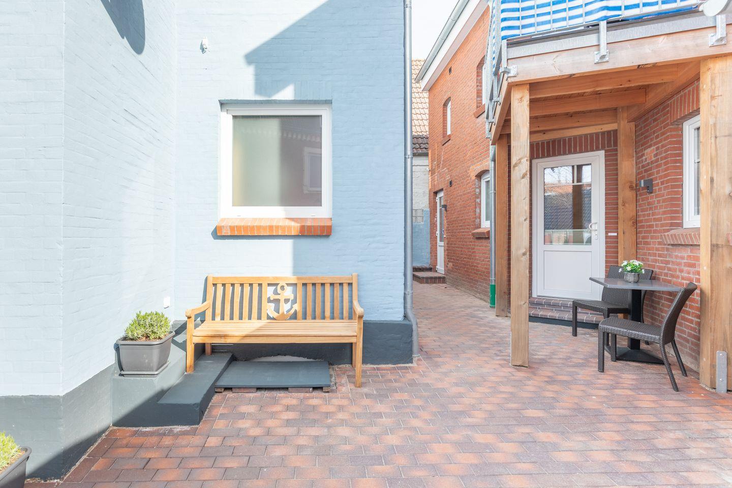 Auf der kleinen Terrasse im gemeinschaftlich genutzten Innenhof können Sie den Tag in gemütlicher Atmosphäre ausklingen lassen.