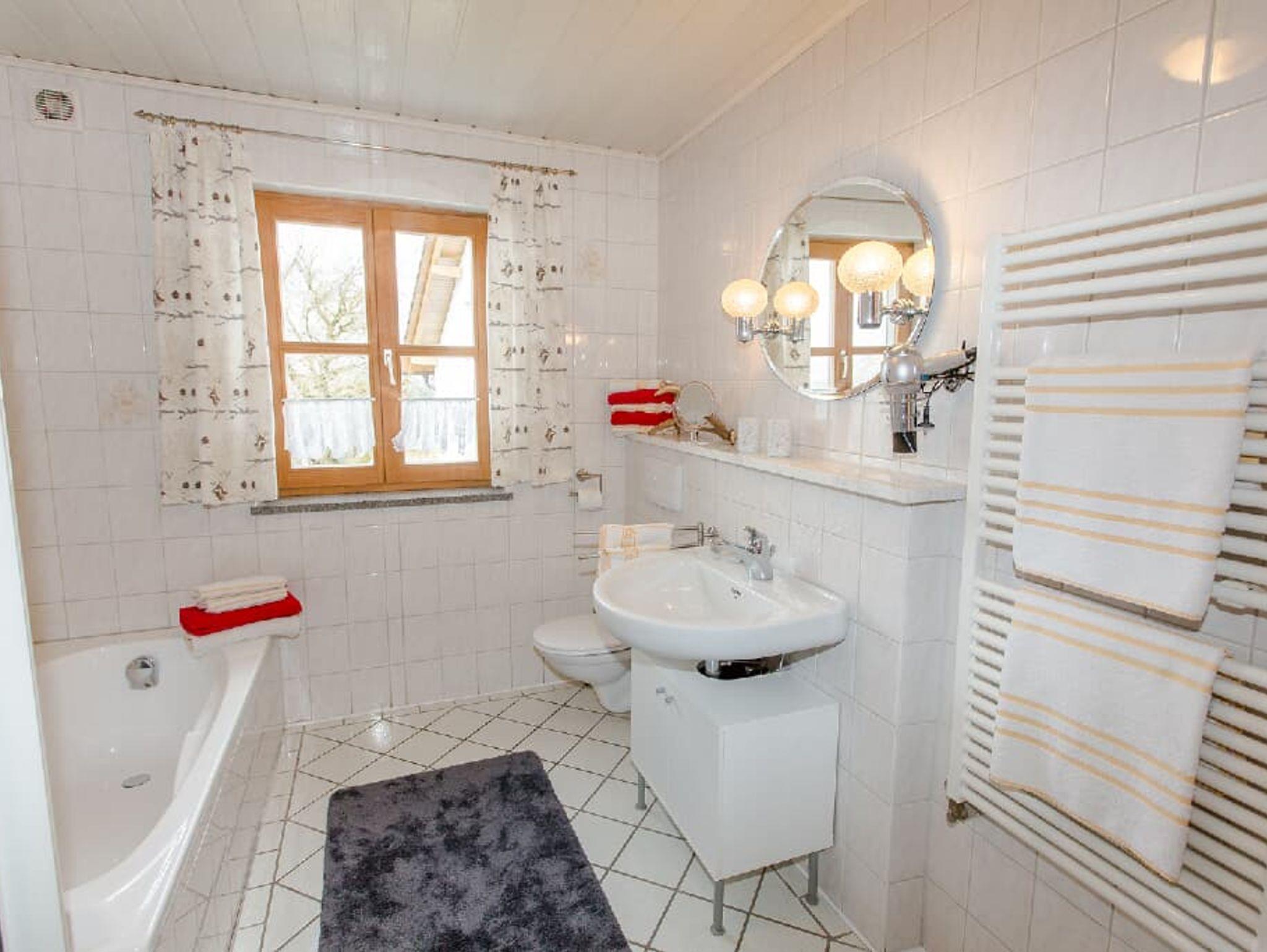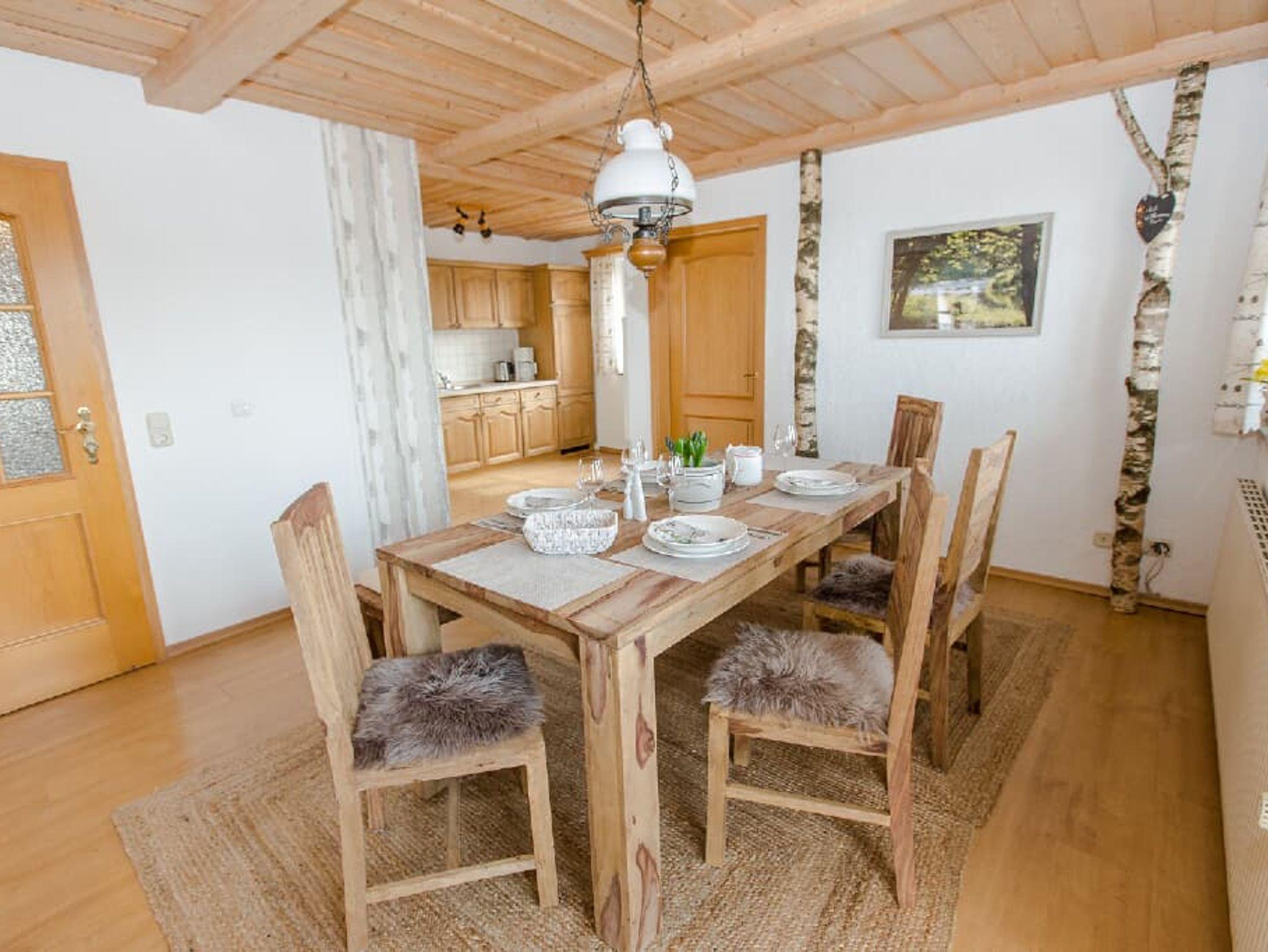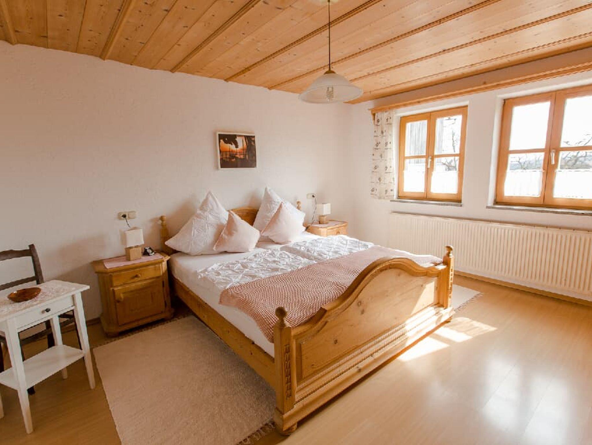im 1. Stock bietet Platz für bis zu 6 Personen. Die Ferienwohnung hat eigenem Zugang (Außentreppe) und Balkon mit schöner Aussicht. Dank vieler Fenster ist sie hell und lichtdurchflutet. Die beiden Schlafzimmer sind jeweils mit einem Doppelbett ausgestattet. In einem der Schlafzimmer steht ein SAT-TV. Außerdem ist es möglich zwei Zustellbetten mit in eines der Schlafzimmer zu stellen. Das große, helle Wohnzimmer ist mit Couch, Tisch sowie SAT-TV und Stereoanlage ausgestattet und lädt zum Verweilen ein. Im geräumigen, schön eingerichteten Esszimmer steht ein hölzerner Esstisch mit 6 Sitzplätzen. Die moderne Küche ist mit E-Herd (Ceranfeld und Backrohr), Spülmaschine, Kaffeevollautomat und Kaffeemaschine, Wasserkocher, Eierkocher, Mikrowelle, Toaster, Handrührgerät, Kühlschrank mit Gefrierfach, Bügeleisen und Bügelbrett ausgestattet und lässt keine Wünsche offen. Das Bad ist mit Dusche und WC ausgestattet. Das zweite Bad enthält Badewanne und WC. In jedem Bad ist ein Fön vorhanden. Sie können gerne unsere Waschmaschine nutzen. Das Anwesen liegt an Rande eines kleinen Dorfes direkt oberhalb des Ilztals. Drinnen und draußen viel Platz für Kinder.