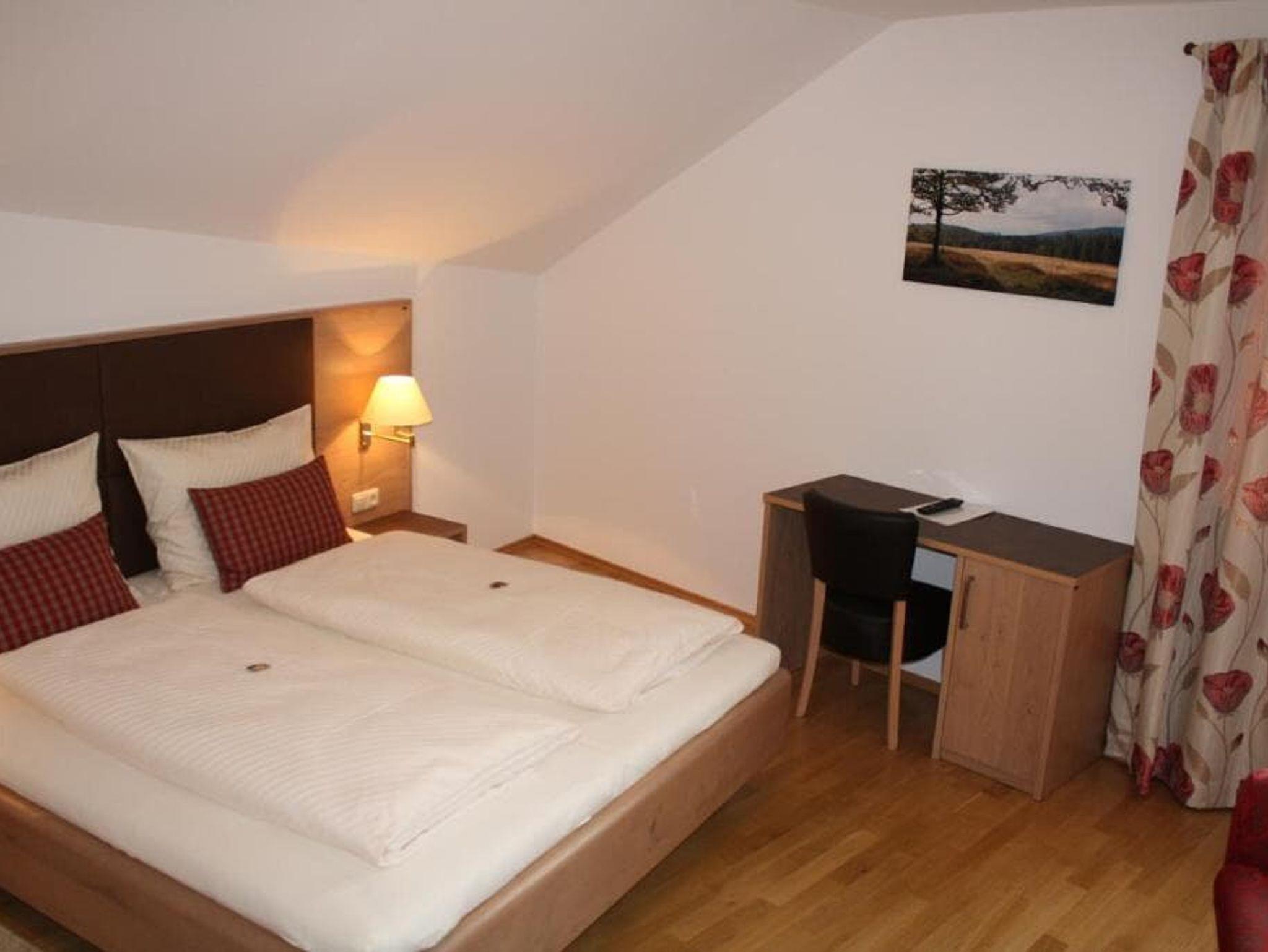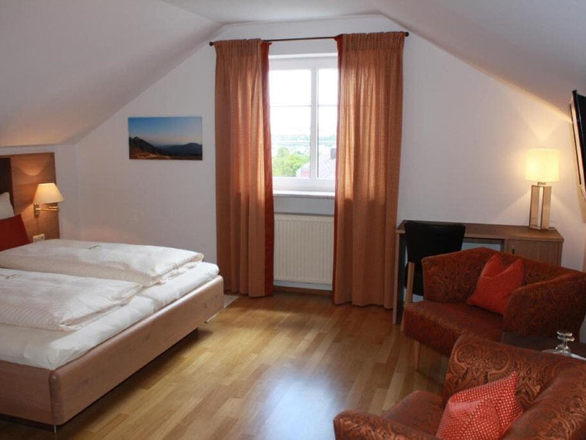 Die gemütlichen Doppelzimmer bieten auf ca. 25 qm Platz für bis zu 3 Personen. Sie sind mit einem Doppelbett, einem Einzelbett, einem Schreibtisch, einem Sitzbereich sowie mit einem Fernseher ausgestattet. Das dazugehörige Badezimmer verfügt über eine Dusche, ein WC und einen Föhn. Bettwäsche und Handtücher sind selbstverständlich vorhanden, das WLAN können Sie kostenfrei nutzen. Im Übernachtungspreis ist Frühstück inbegriffen.