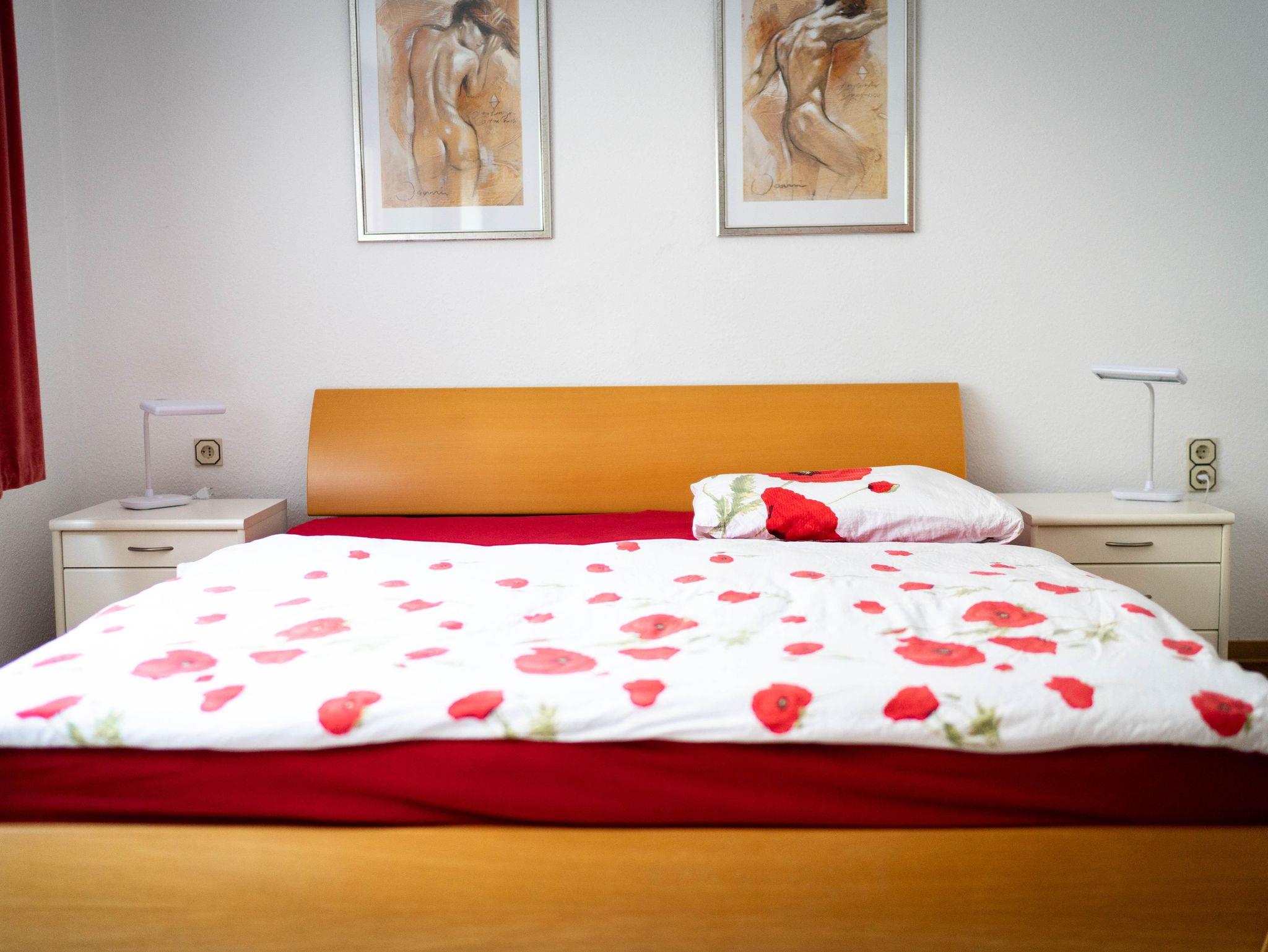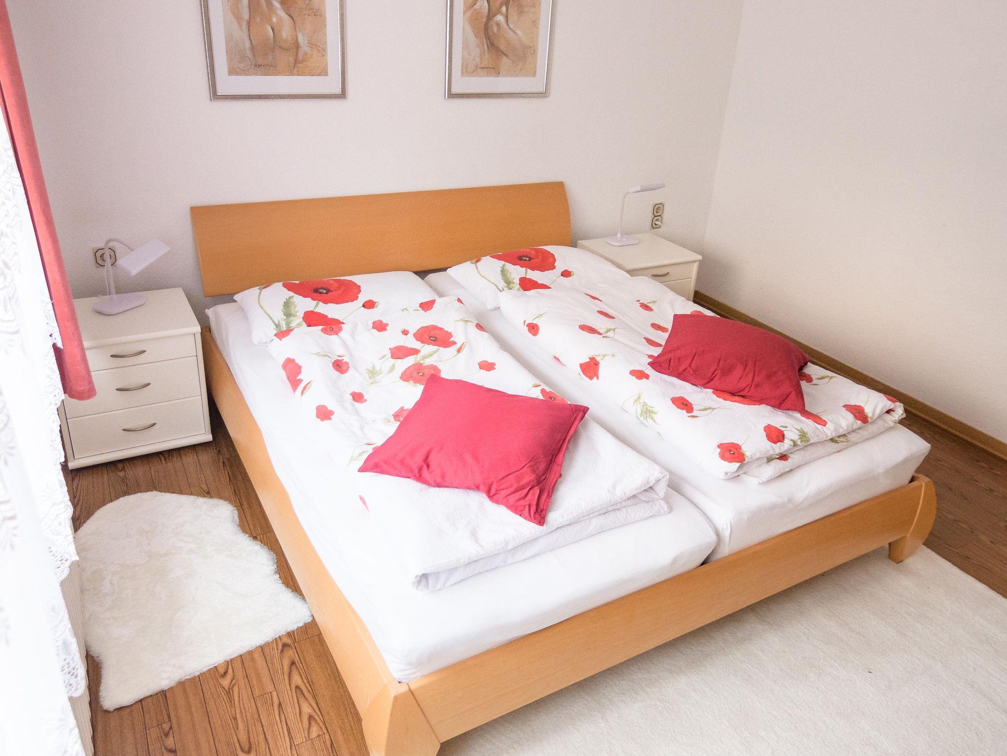 Das Schlafzimmer hat ein Doppelbett und die Möglichkeit ein Kinderbett oder Zusatzbett aufzustellen.