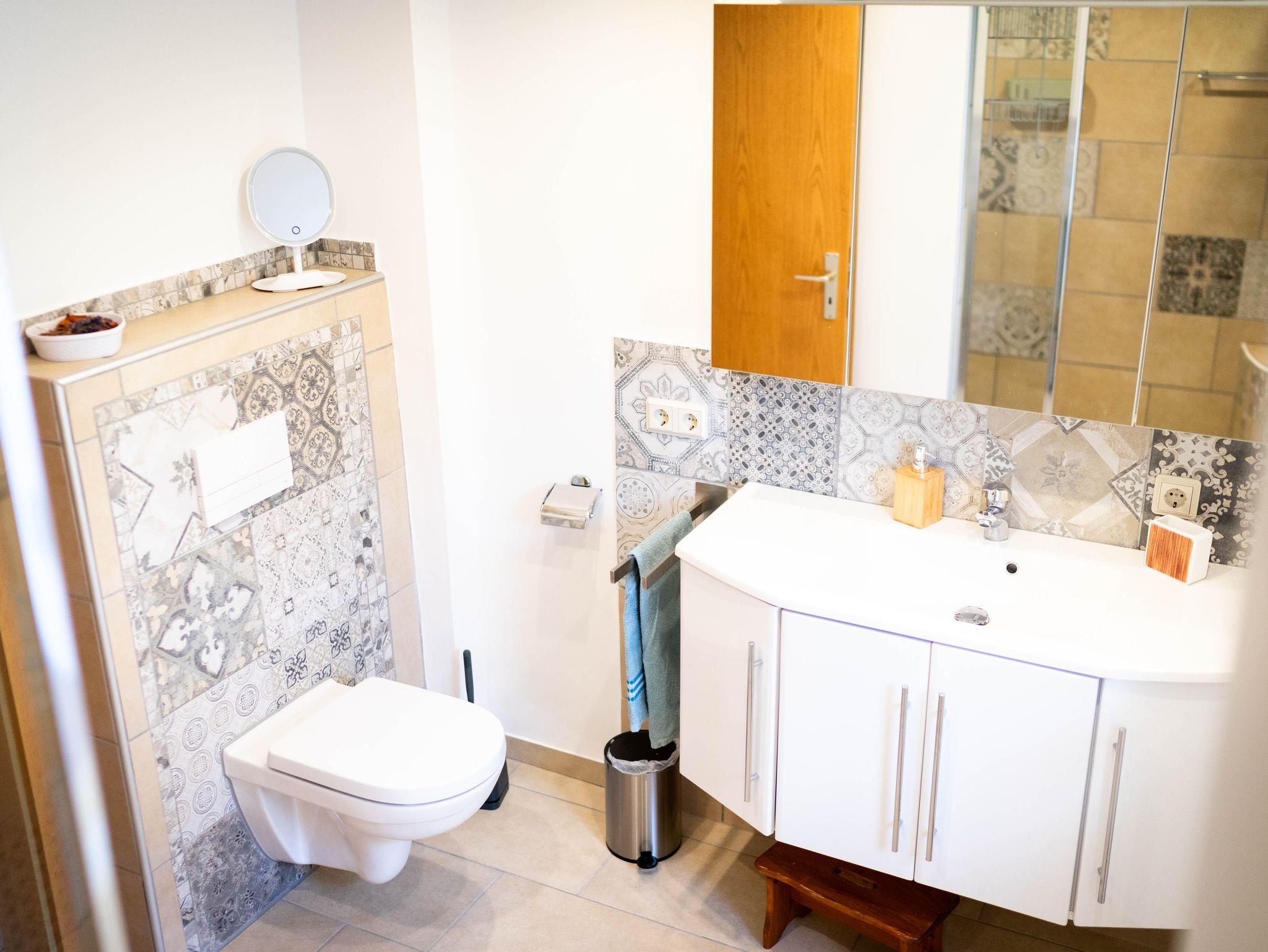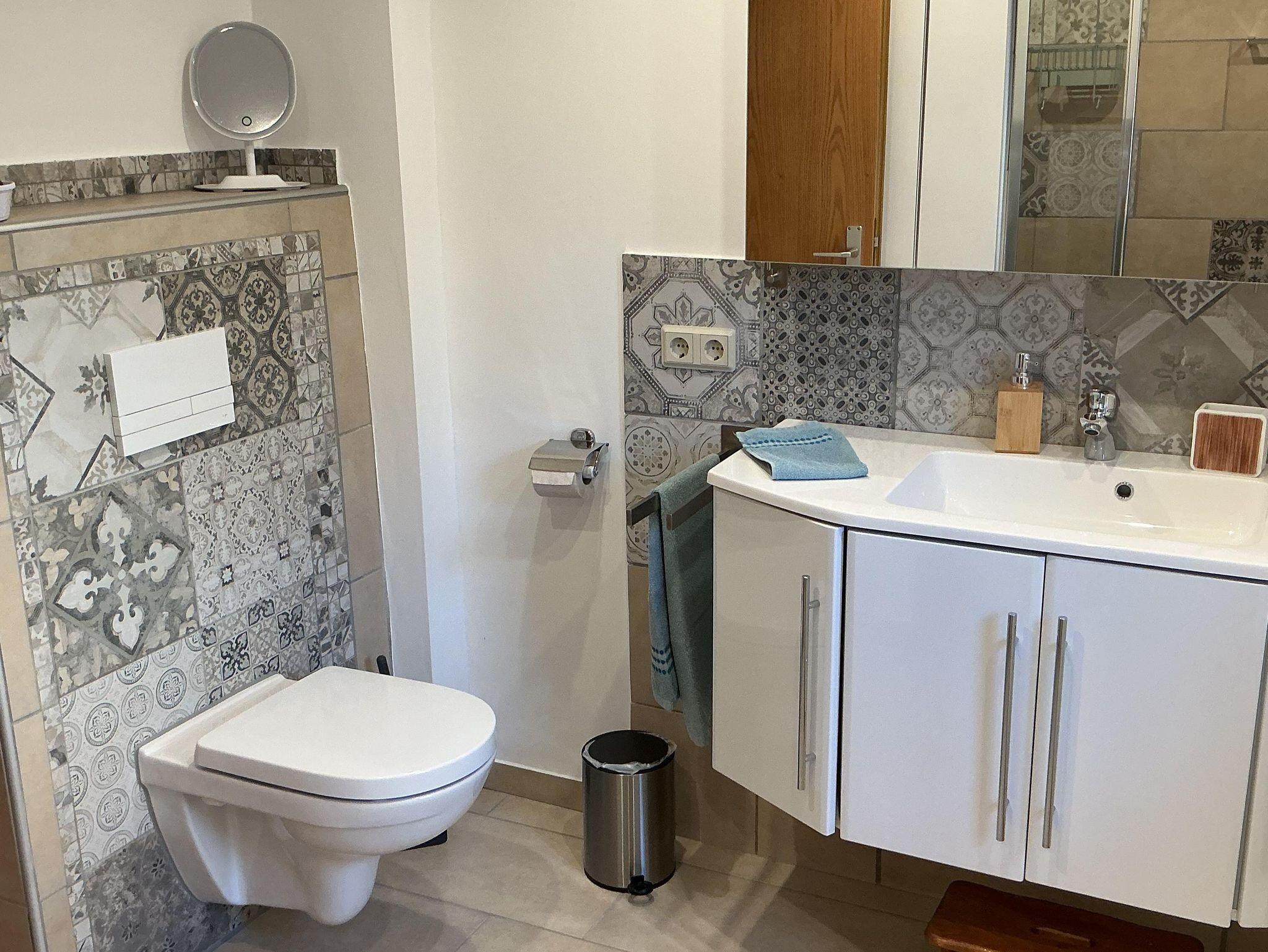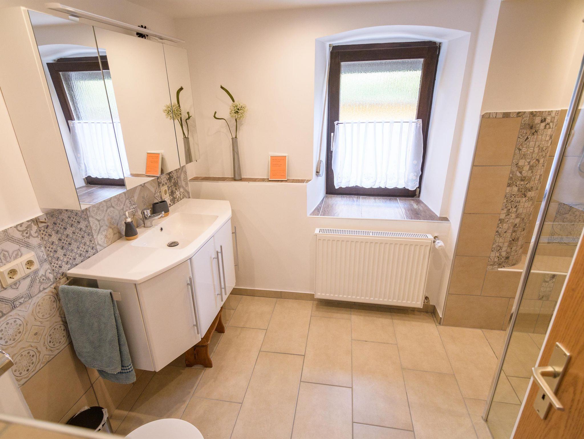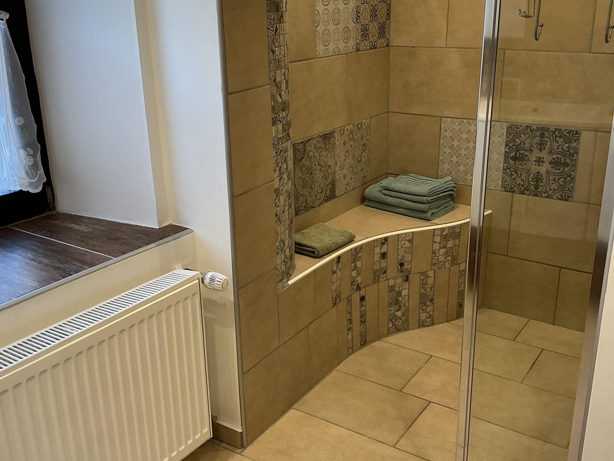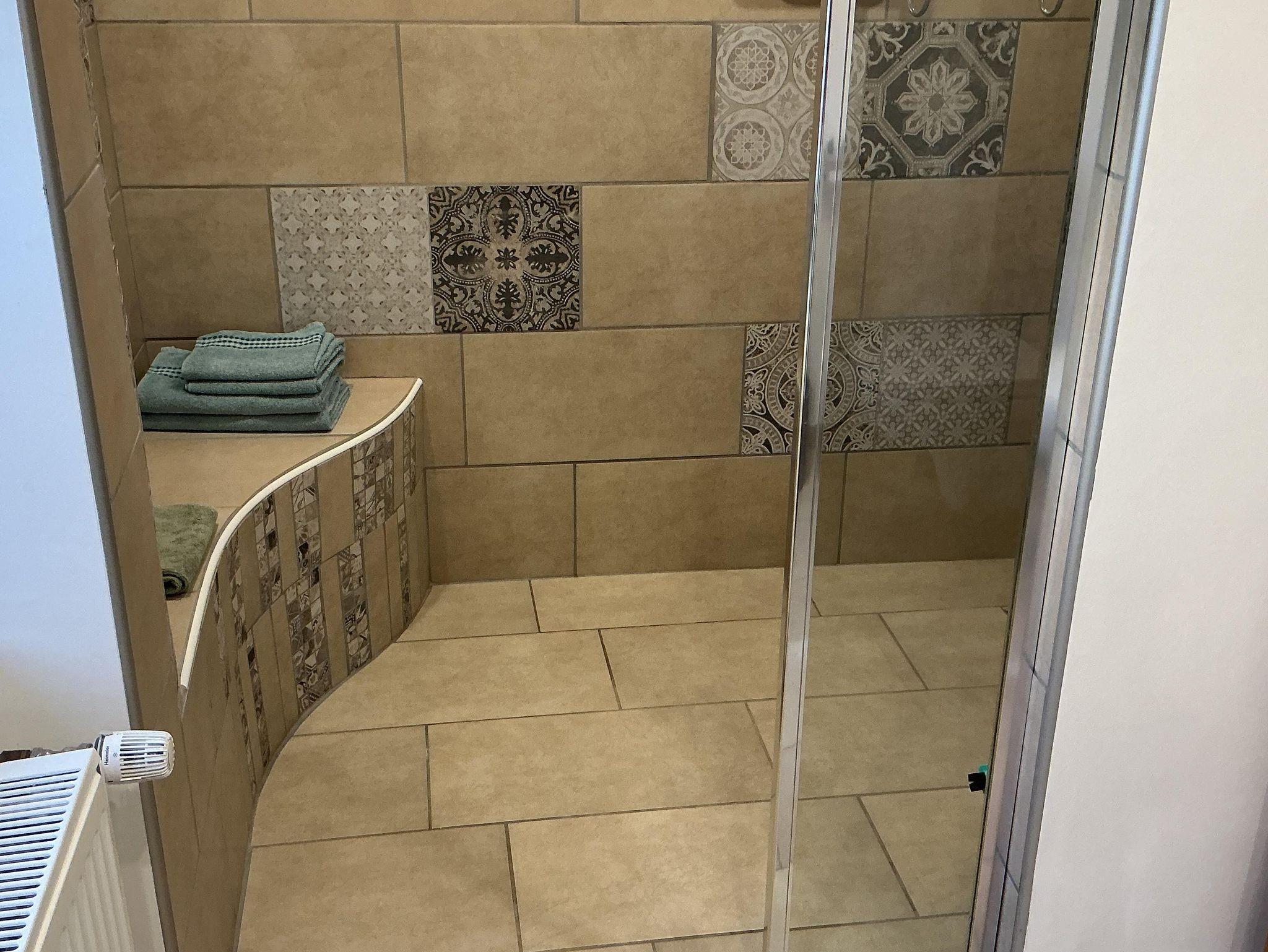 Das Badezimmer ist komplett neu und besticht durch die große Dusche. Es ist mit Föhn und Handtüchern bestens ausgestattet.