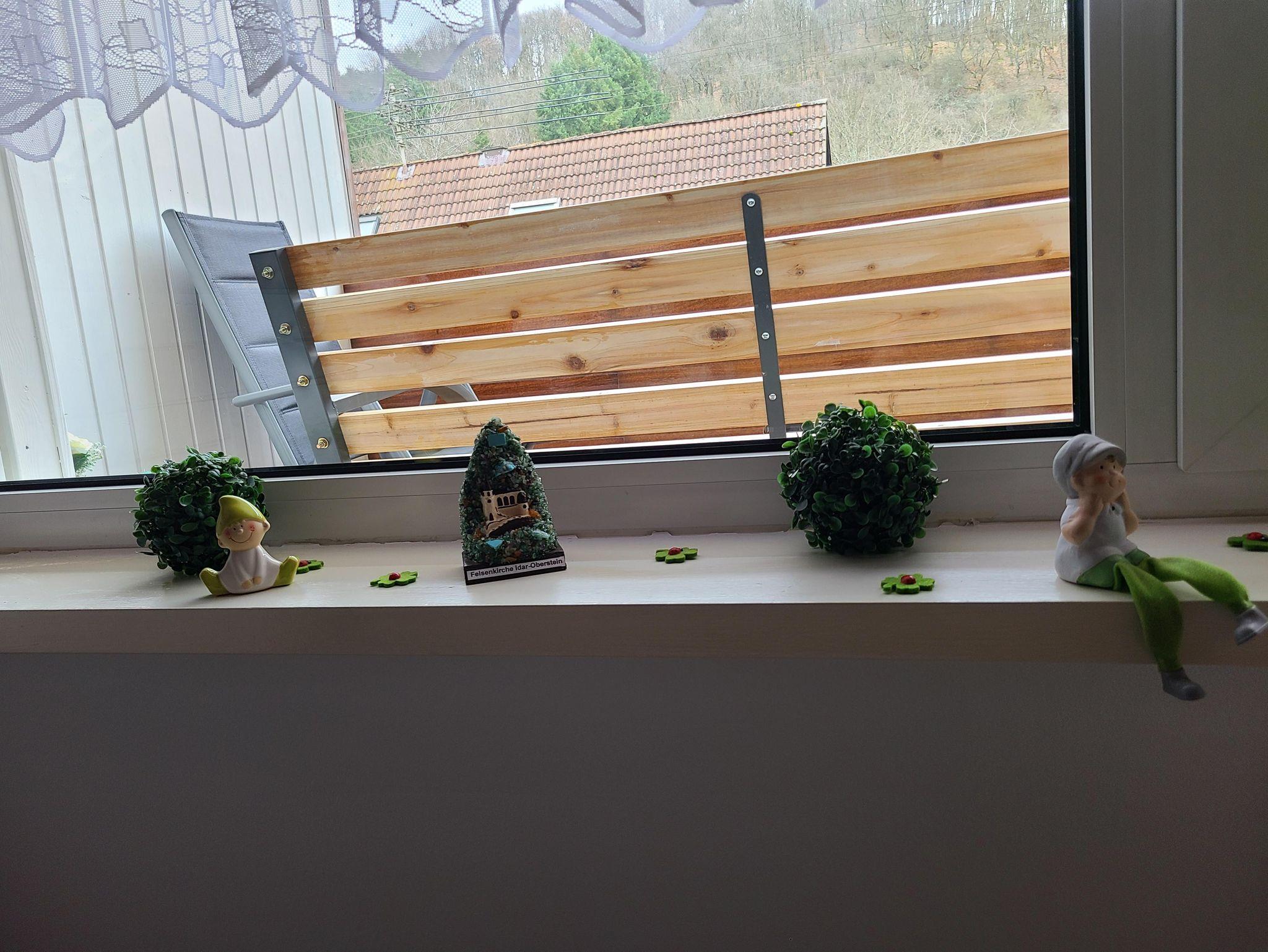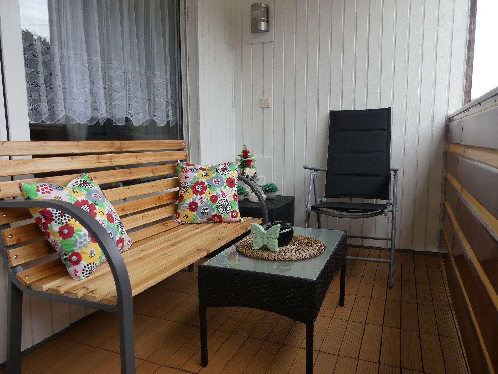 Seitlich ist der kleine Balkon zu sehen. Auf einer Liege kann man sich an einem kraftspendenden Sonnenbad erfreuen.