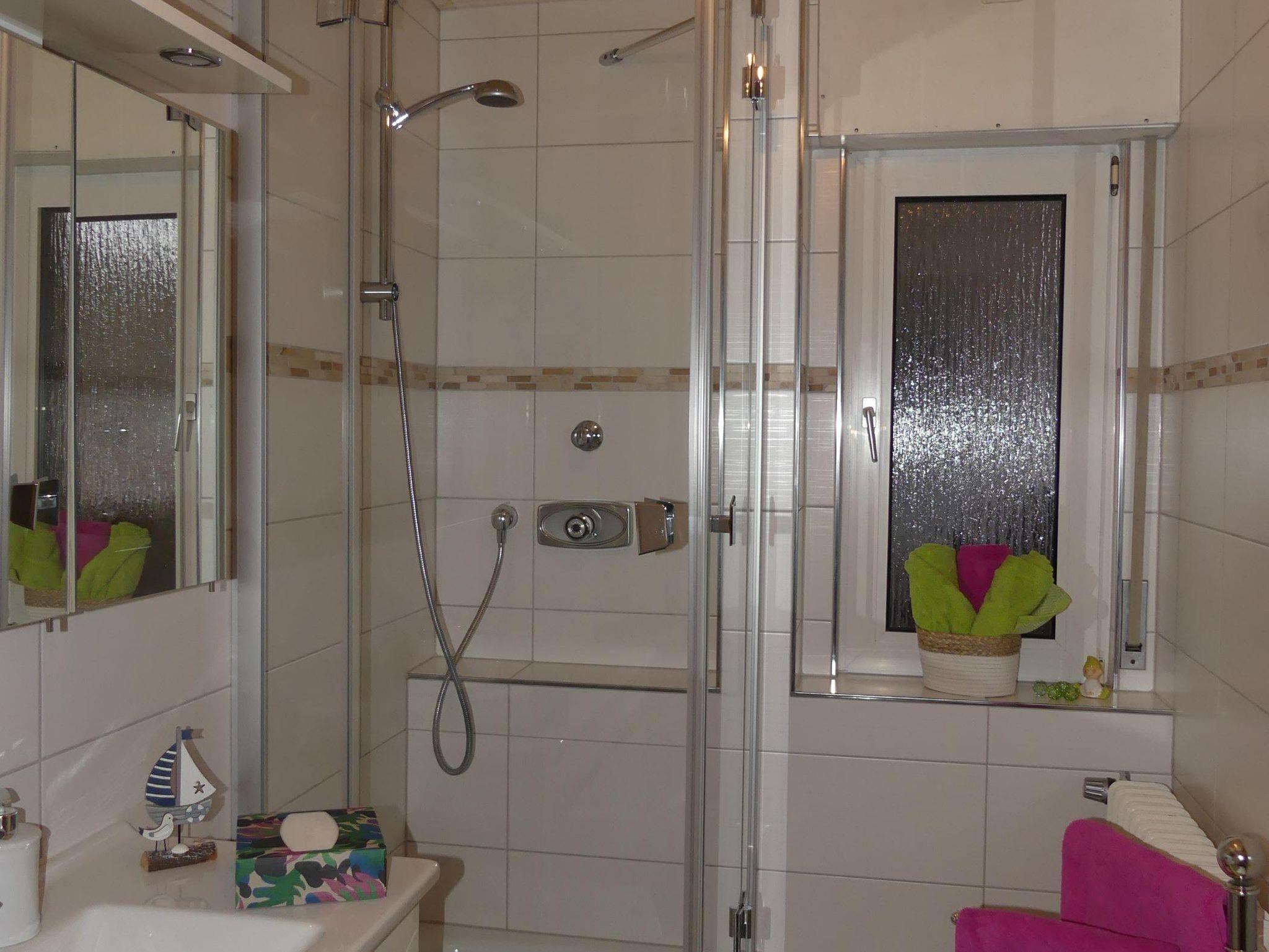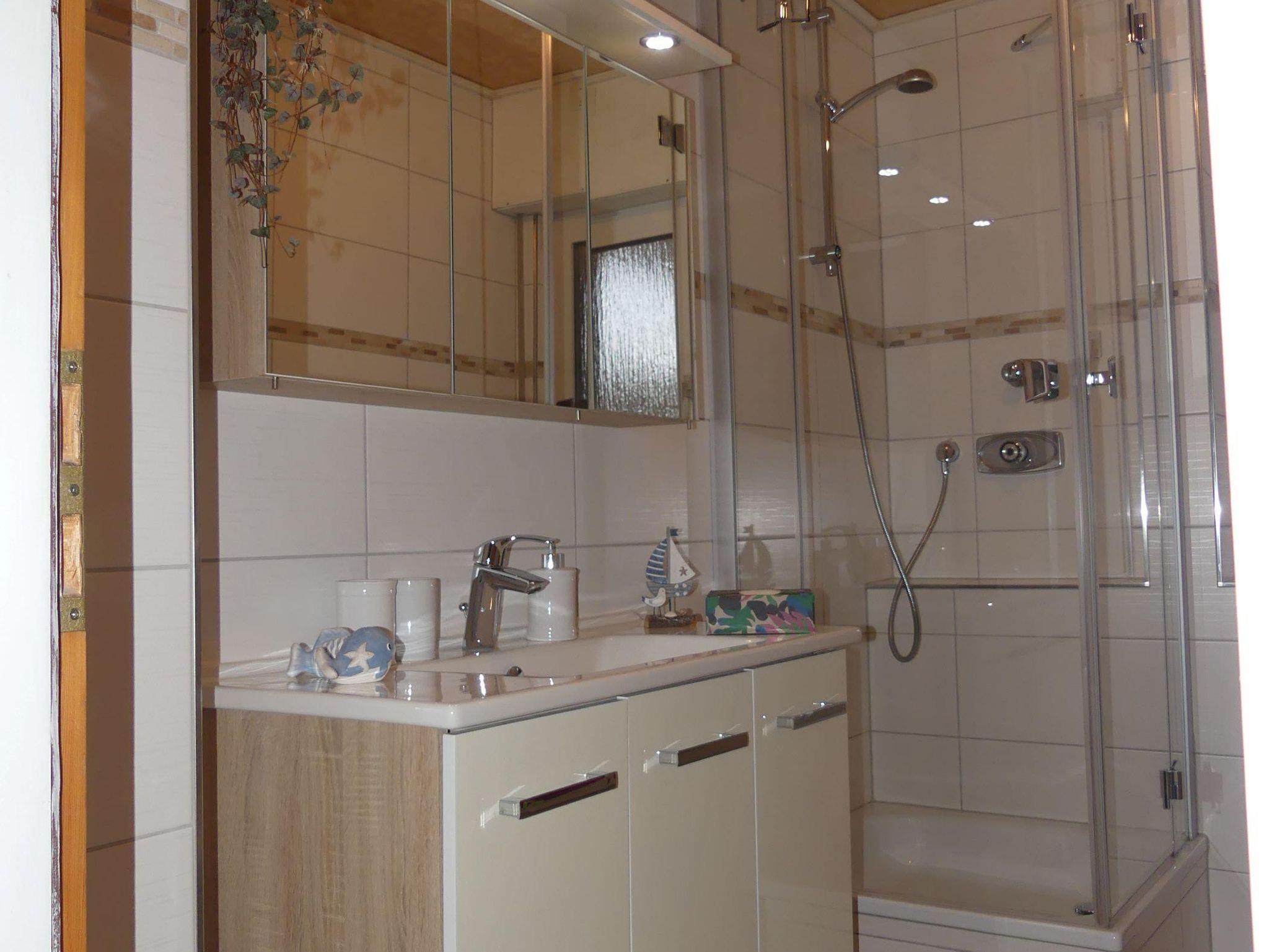 Im Bad begeistert ein großer Waschplatz mit Spiegelschrank mit jede Menge Abstellmöglichkeiten. Die Dusche bei der Wohlfühltemperatur des Wassers ist ein Hochgenuss nach einem ergeignisreichen Tag.