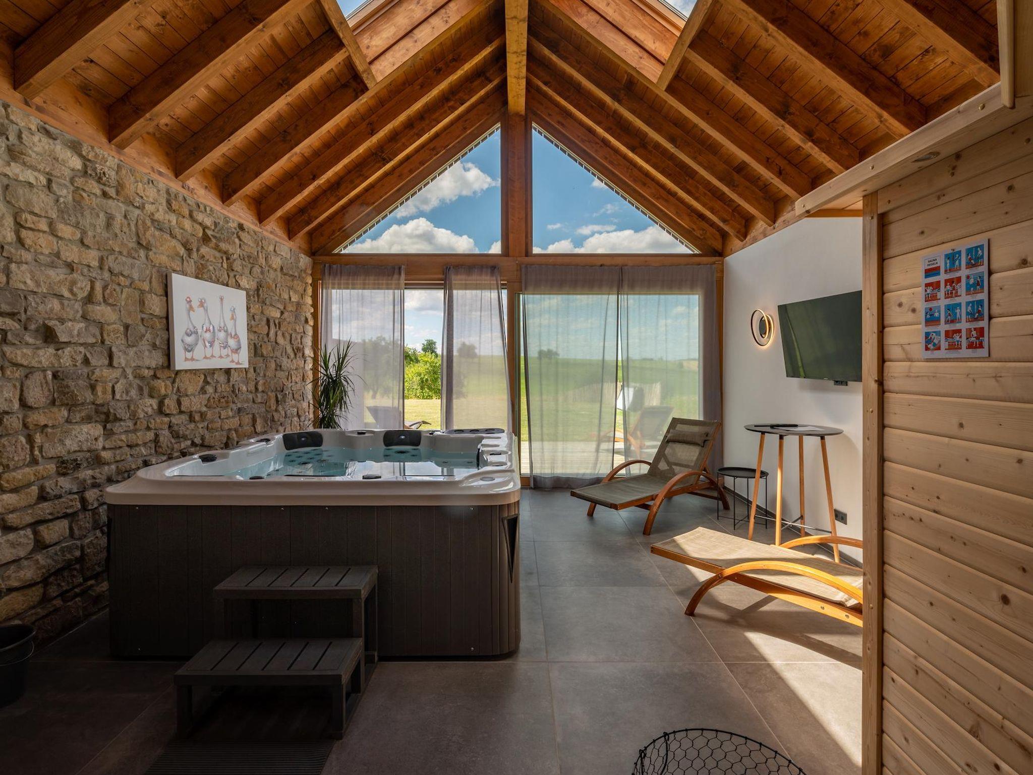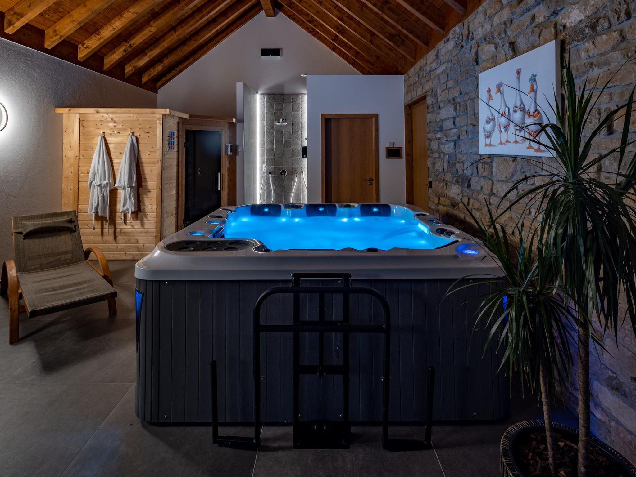 Das Highlight ist der große separate Wellnessbereich mit Whirlpool und Sauna.