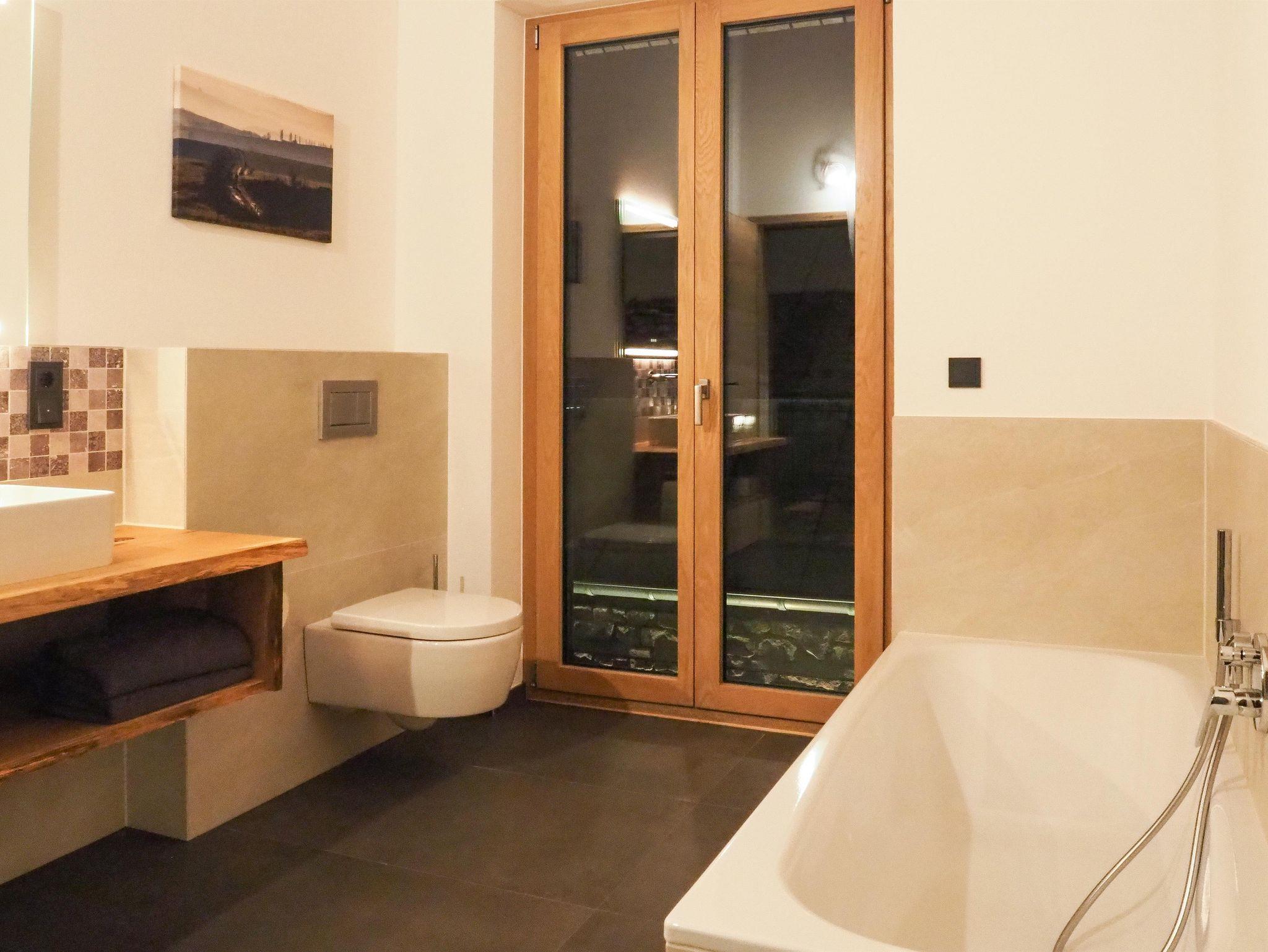 Das Highlight ist der große separate Wellnessbereich mit Whirlpool und Sauna. Er steht für beide Wohnungen, täglich, nach Absprache zur Verüfgung.