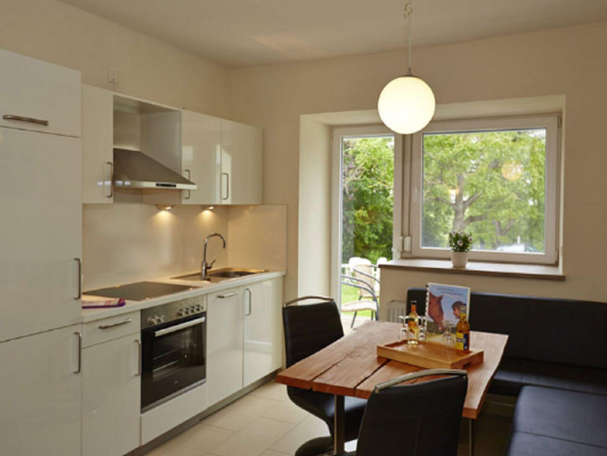 Unsere Ferienwohnungbietet Platz für 1-4 Personen. Die komplett ausgestattete Wohnküche mit Essbereich lässt keine Wünsche offen. Das Ferienhaus verfügt über 2 Schlafzimmer mit einem Doppelbett und zwei Einzelbetten. Das geräumige Badezimmer mit Dusche und großem Spiegel rundet das Gesamtbild ab. Zum Reinigen Ihrer Kleidung stehen eine Waschmaschine und ein Trockner im Haus zur Verfügung. Das WLAN und den Parkplatz vor dem Haus können Sie kostenfrei nutzen.