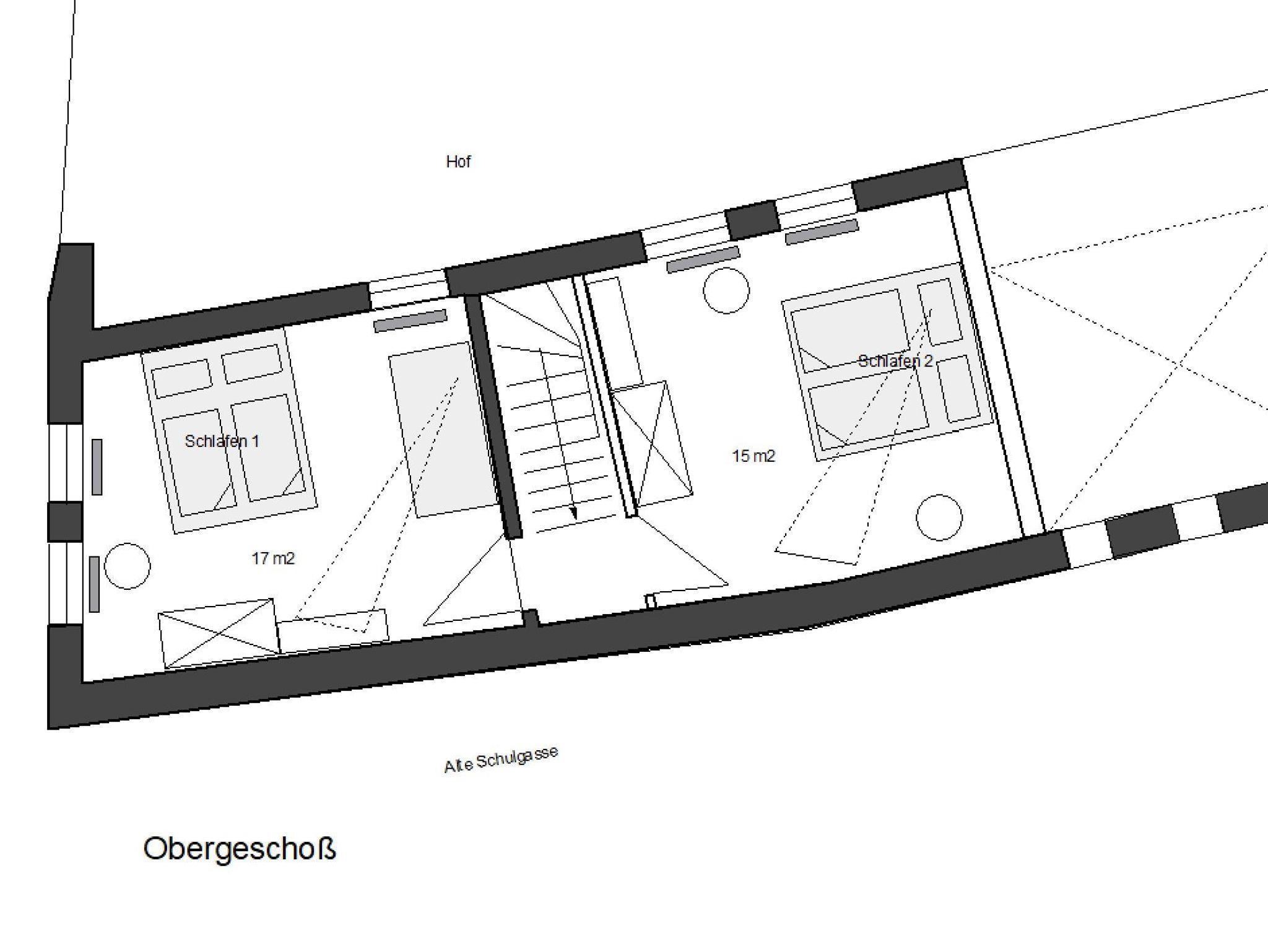 Über eine Treppe gelangt man ins 1.OG. Hier befinden sich zwei getrennte Schlafzimmer. Ein Doppelbett 1,80 x 2,00 Meter und ein Doppelbett 1,60 x 2,00 Meter, sowie eine Schlafcouch als weitere Schlafmöglichkeit, bieten hier Platz für maximal fünf Personen. In beiden Zimmern gibt es ausreichend Stauraum durch Schränke und Regale. Ein Fernseher gehört zur Ausstattung in jedem der Schlafzimmer. Die originalen Dielenböden bringen Behaglichkeit und ein Gespür für die Historie.
