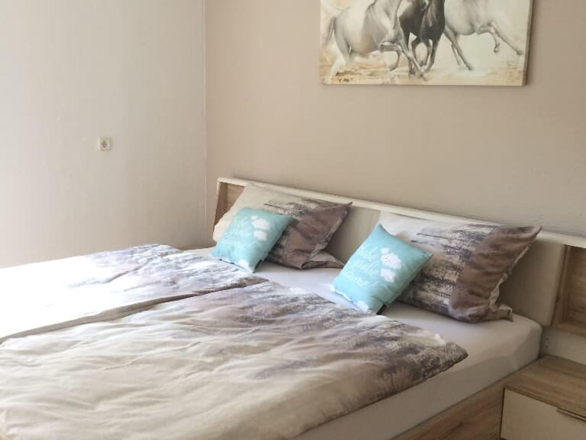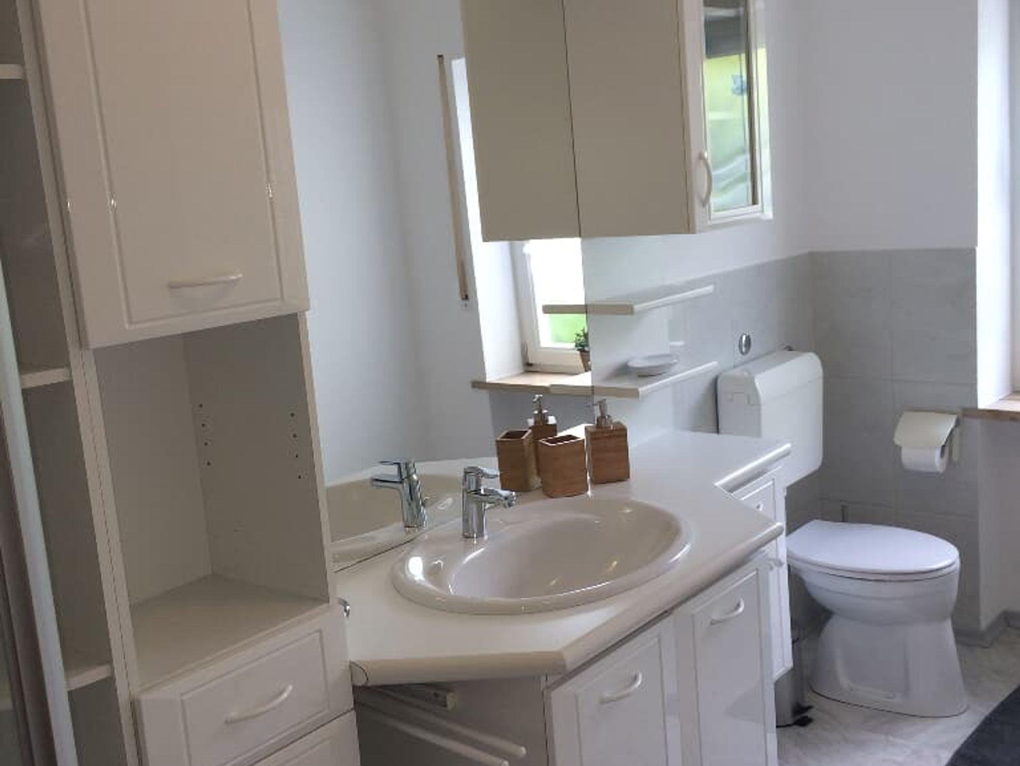 Die schöne Ferienwohnung befindet sich in ruhiger, naturnaher Lage und ist ideal für Freizeitaktivitäten in der Natur. Egal ob Wandern, Radfahren oder Klettern ist viel möglich. Ein schön angelegter Garten mit einer Sitzgruppe lädt zum Entspannen ein. Ein Freibad ist nur wenige Gehminuten entfernt. Auch für das leibliche Wohl soll gesorgt sein, denn im Dorf ist eine Bäckerei sowie eine Metzgerei vorhanden. Die Ferienwohnung selbst besteht aus Wohnzimmer mit Schlafcouch für zwei Personen, Küche (Kaffeepadmaschine, Filtermaschine, Wasserkocher, Toaster, Mikrowelle, Eierkocher, Geschirrspülmaschine, Waschmaschine), Schlafzimmer und Badezimmer. Zusätzlich vorhanden sind noch Handtücher und Bettwäsche sowie ein Föhn, ein Bügeleisen, ein Kinderhochstuhl, eine Spielesammlung und kostenfreies WLAN. Ein Kinderreisebett ist auf Anfrage verfügbar. Bitte teilen Sie uns vor Anreise mit, ob die Couch als Schlafcouch benutzt wird.