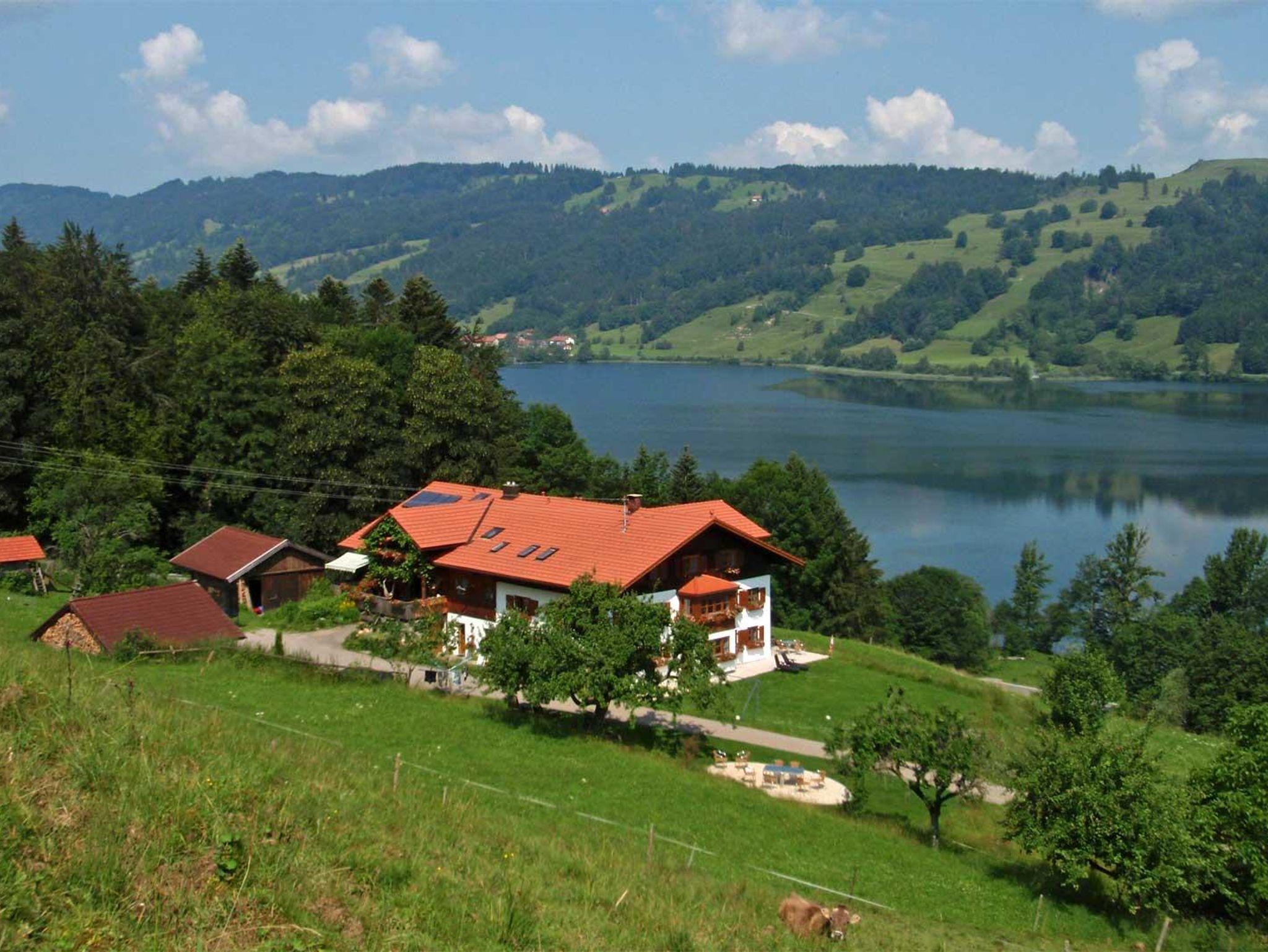 Suchen Sie Ruhe und Erholung abseits von Hektik und Straßenverkehr? Dann sind Sie bei uns richtig. Unser schönes Haus liegt am Hang über dem Alpsee in Alleinlage und doch nur 5 Autominuten von Immenstadt entfernt. Es erwarten Sie 4 gemütliche Ferienwohnungen für 2-7 Personen. Mit zum Teil 3 Schlafzimmern und zwei Badezimmern auch für die große Familie bestens geeignet. Genießen Sie die Panoramaaussicht über den Großen Alpsee von jeder Wohnung. Wenige Gehminuten zum privaten Badeplatz (auch für Hunde)und zum Angeln. Eine gute Stunde wandern Sie zur Alpsee-Bergwelt, Deutschlands längster Sommerrodelbahn. Wandern Sie direkt vom Haus im Naturpark Nagelfluh auch als Skitour oder Schneeschuhtour ein Erlebnis. Die große Panoramaterrasse und der Freisitz am Apfelbaum sind Logenplätze bei einer Regatta.