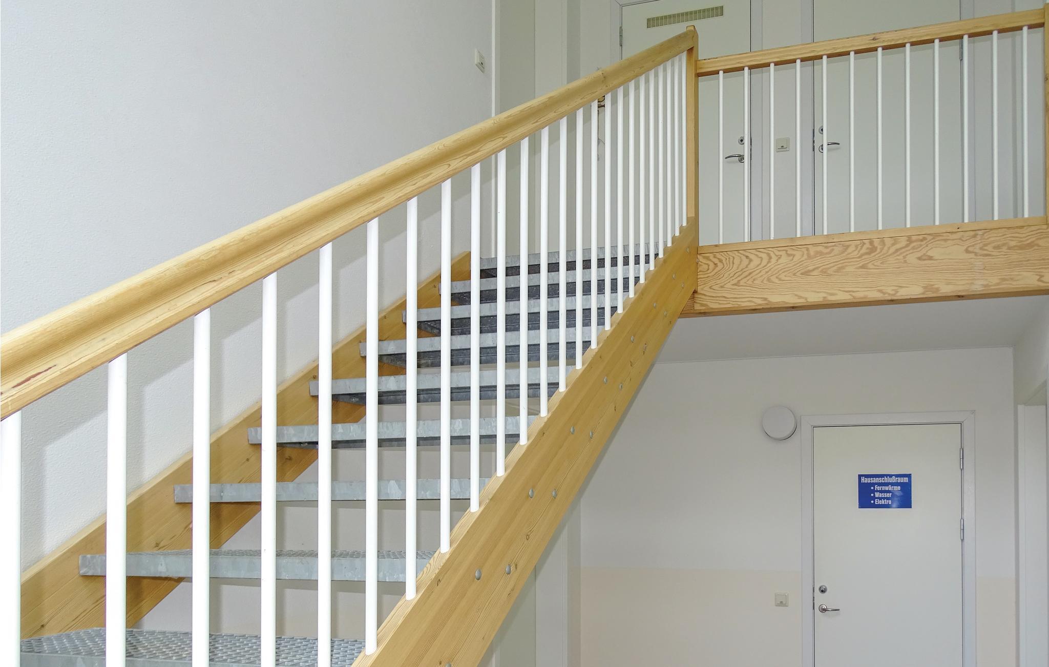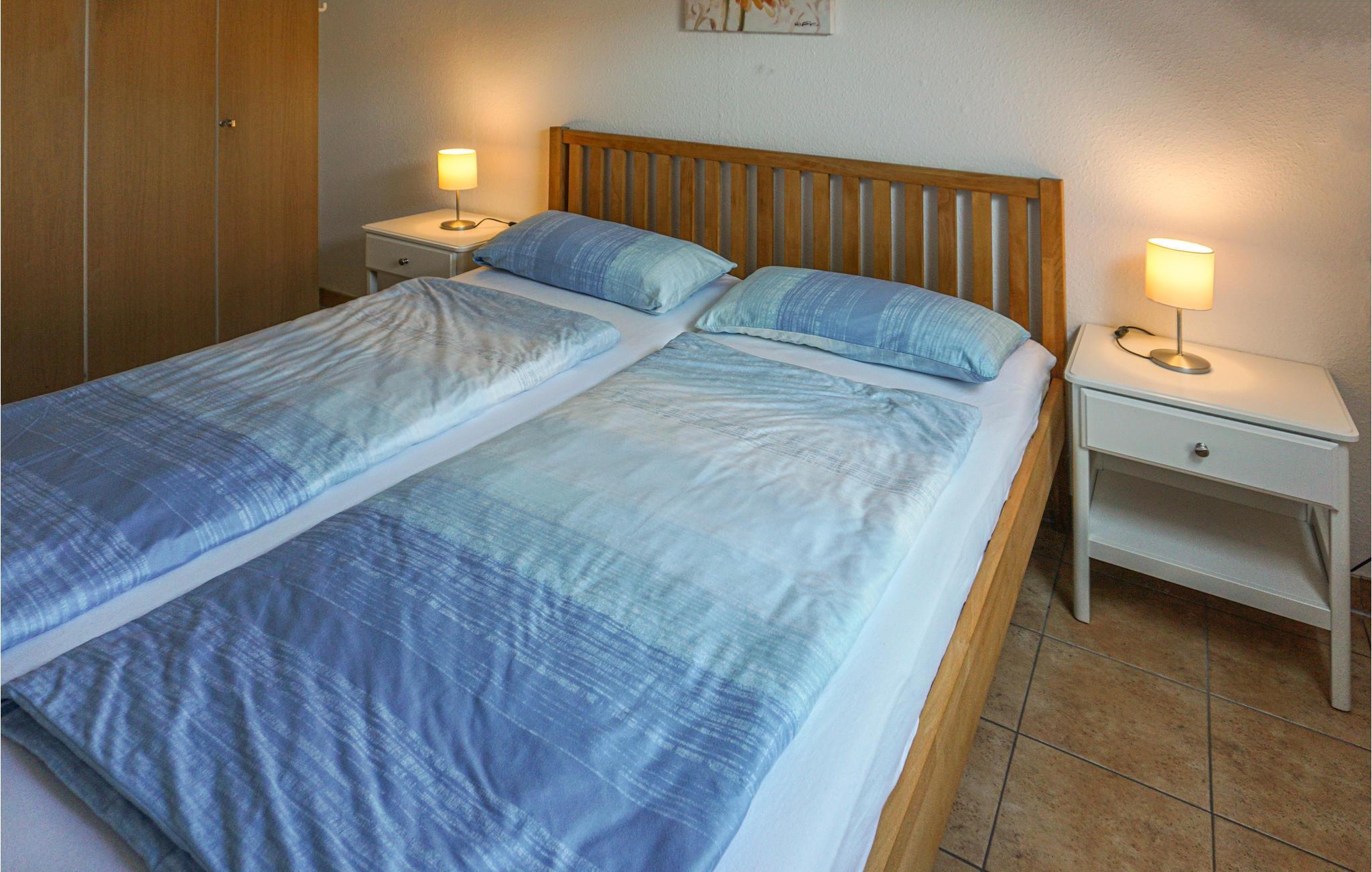 Durch einen kleinen Flur und eine Treppe gelangen Sie in das erste Obergeschoss zu Ihrer Wohnung. Es gibt ein geräumiges Schlafzimmer mit Doppelbett, sowie ein weiteres Schlafzimmer mit zwei Einzelbetten. Sie finden hier außerdem ein Duschbad sowie einen gemütlich eingerichteten Wohnraum mit integrierter Vollküche. Auf dem kleinen Balkon können Sie am Morgen gemütlich frühstücken und die ersten Sonnenstrahlen genießen.