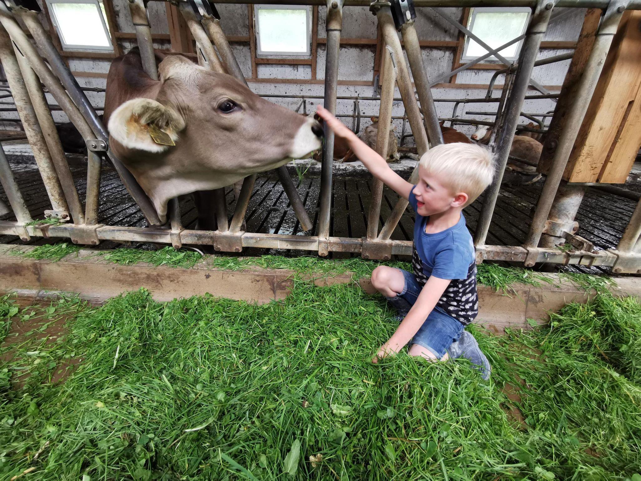 Unsere Stalltüren stehen jederzeit offen. Sehr beliebt sind die Fotoshootings mit unseren Kälbern.