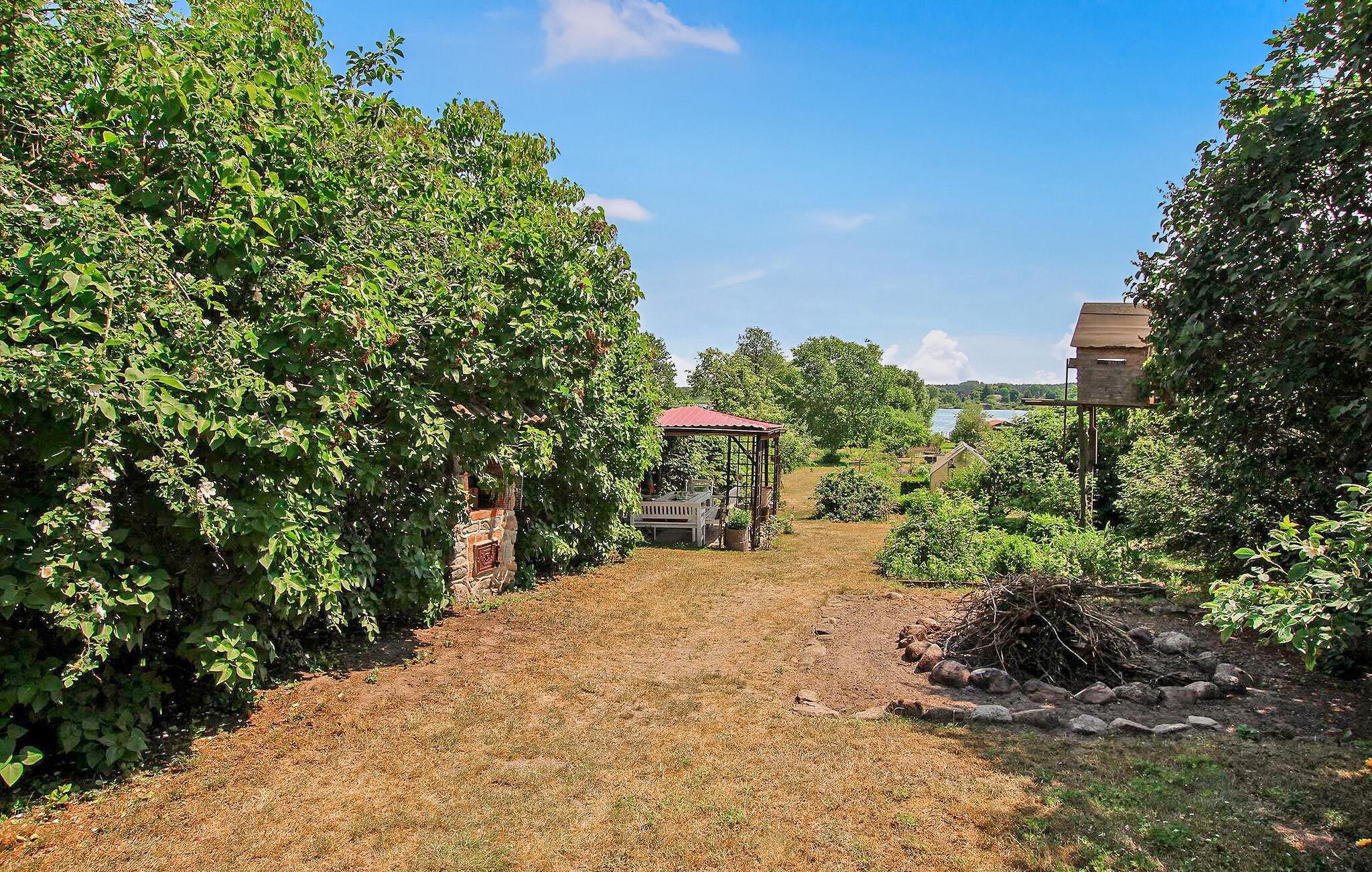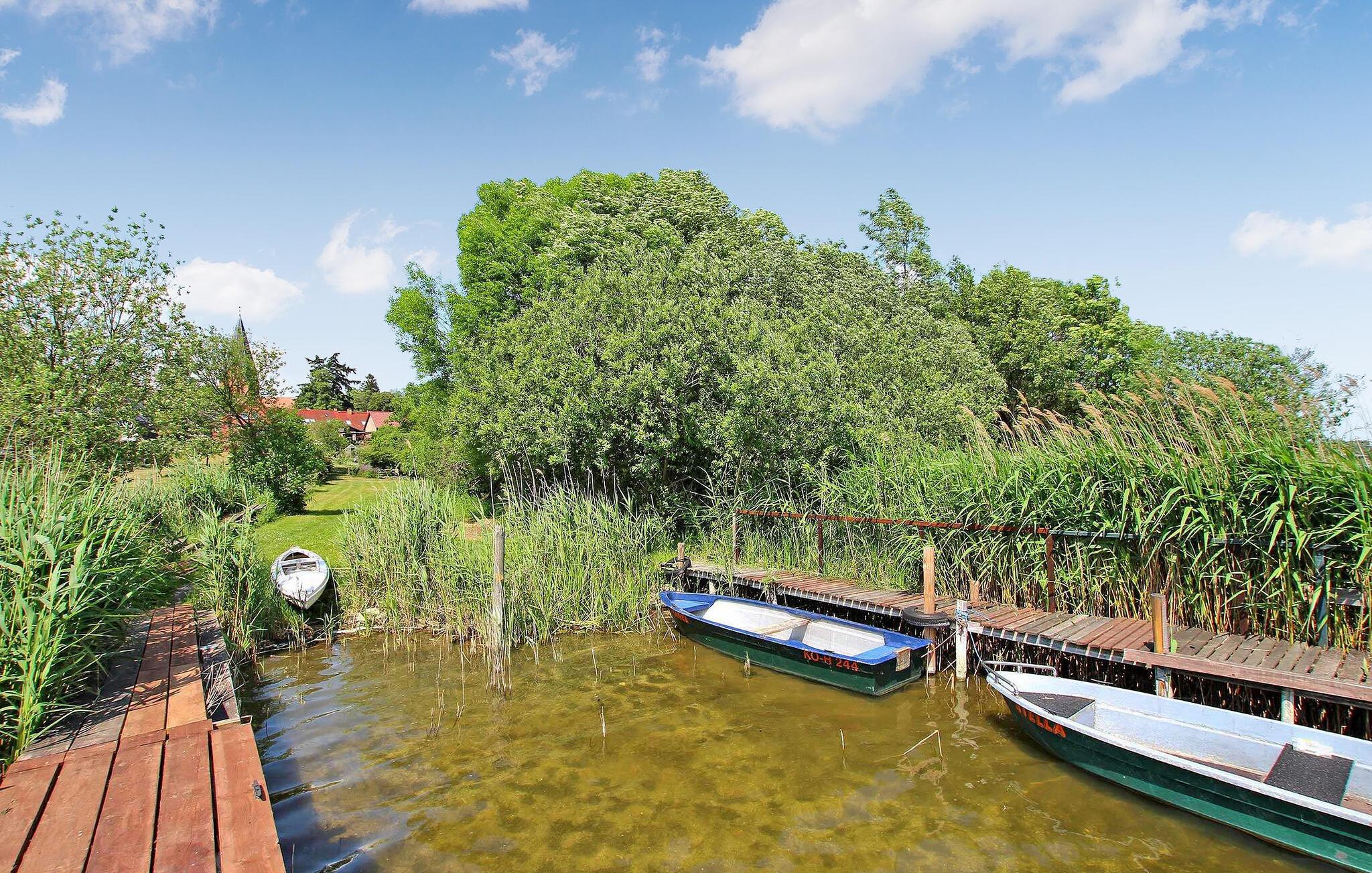 Das Ferienhaus steht freistehend und separat auf dem Grundstück mit Seeblick von der Terrasse. Ausstattung mit Wohnraum (Polstermöbel mit Schlaffunktion, SAT-TV, Radio), Schlafboden über Raumspartreppe (Doppelbett, Deckenhöhe 1,90 m), offene Küche (E-Herd, Mikrowelle, Kühlschrank), DU/WC, Zentralheizung. Zur Verfügung stehen Terrasse, Grill, div. Sitzecken auf dem Gelände, Boots- und Badesteg mit Ruderboot und Paddelboot, Obstgarten, PKW-Stellplatz und W-LAN.