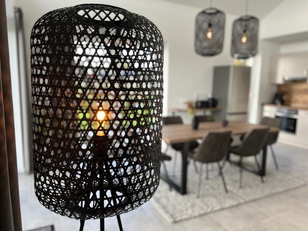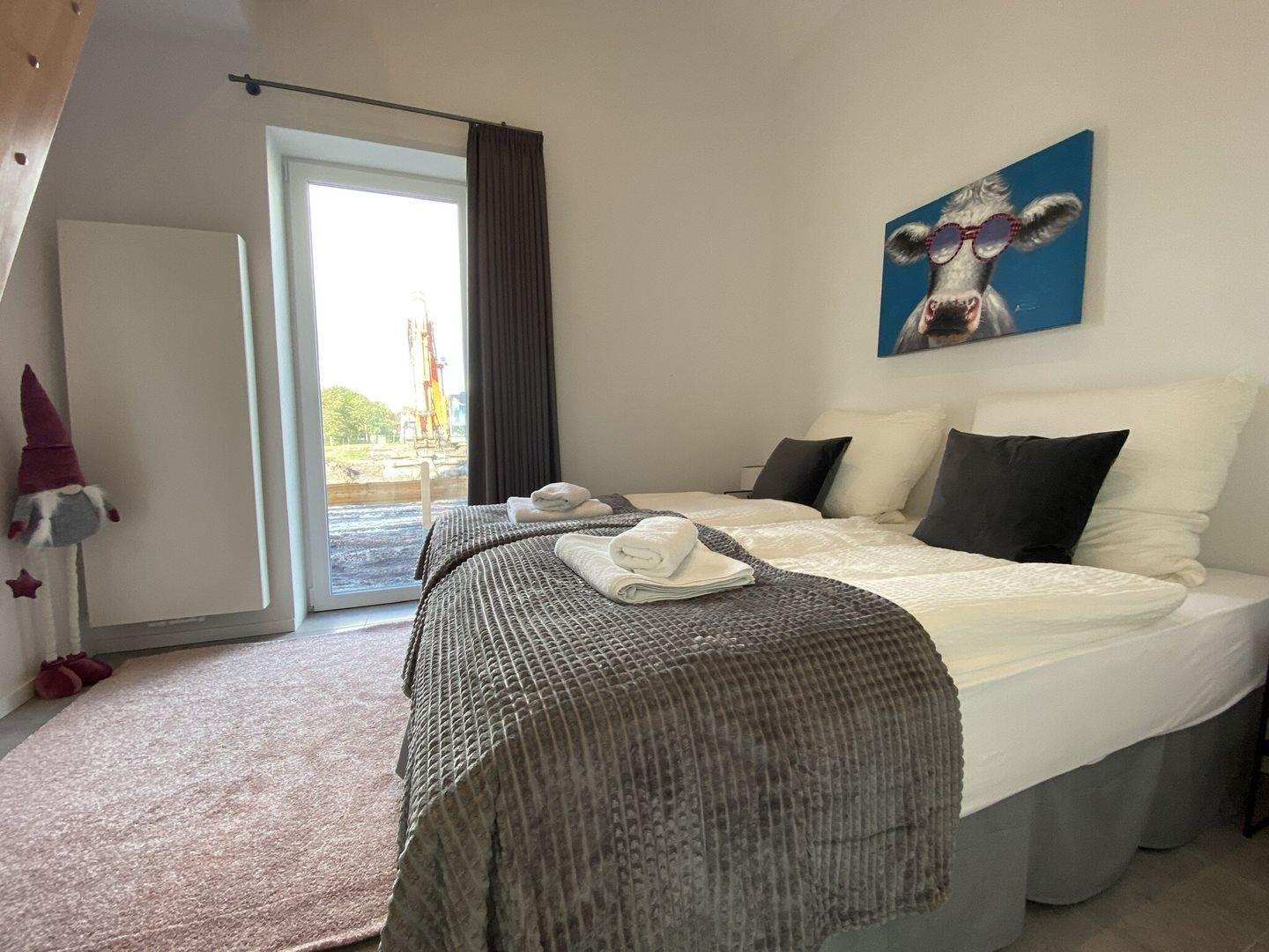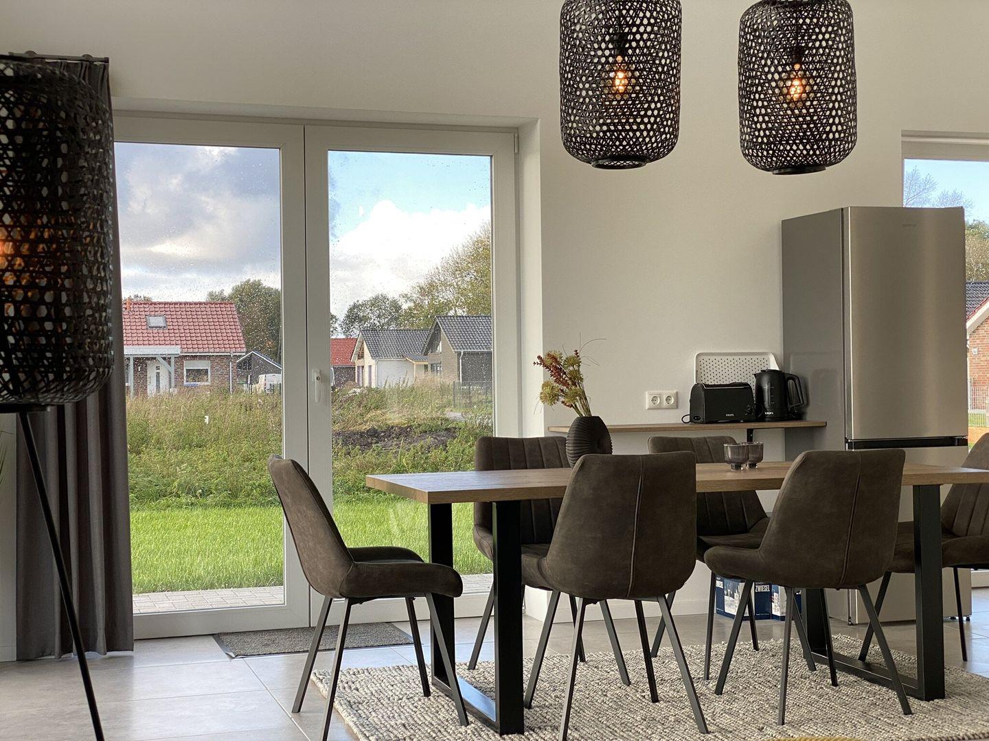 Das neue komplett eingerichtete Ferienhaus ist für vier bis sechs Personen eingerichtet. Das Haus ist barrierefreundlich, verfügt über viel Platz auf der überdachten Sonnenterrasse mit herrlichem Blick über Wiesen und Felder. Das großzügige Wohn- und Esszimmer verfügt über eine gemütliche Couch und eine top moderne Küche mit 6 Plätzen. Es gibt ein Hauptschlafzimmer (Bettgröße 2 x 1,00 m Matratzen) ein kleineres Schlafzimmer mit einer oberen Spielebene oder auch zum entspannen und auch schlafen.