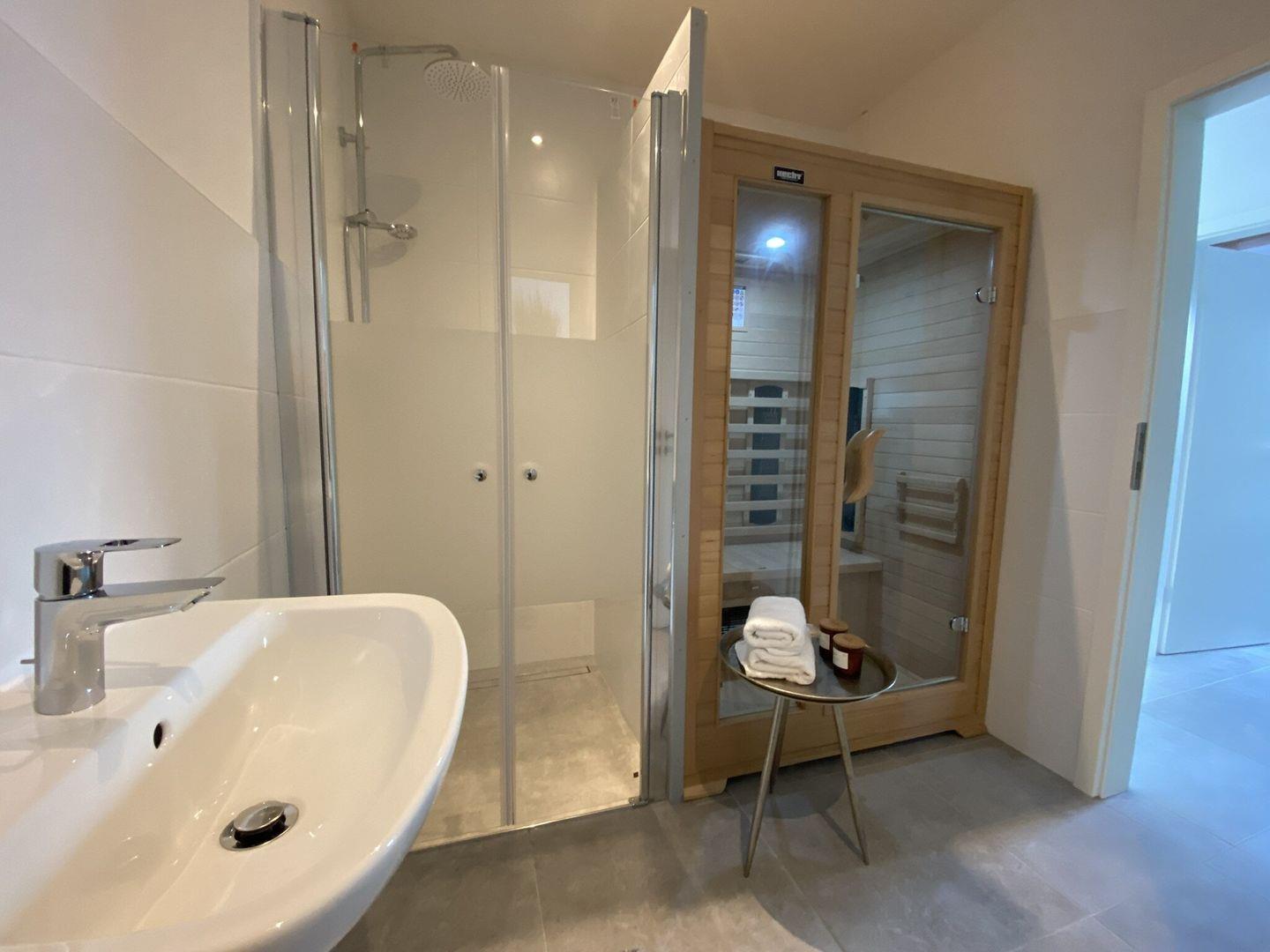 Auch das Badezimmer ist barrierefreundlich ausgestattet und verfügt über eine eigene Privat Infrarotsauna.