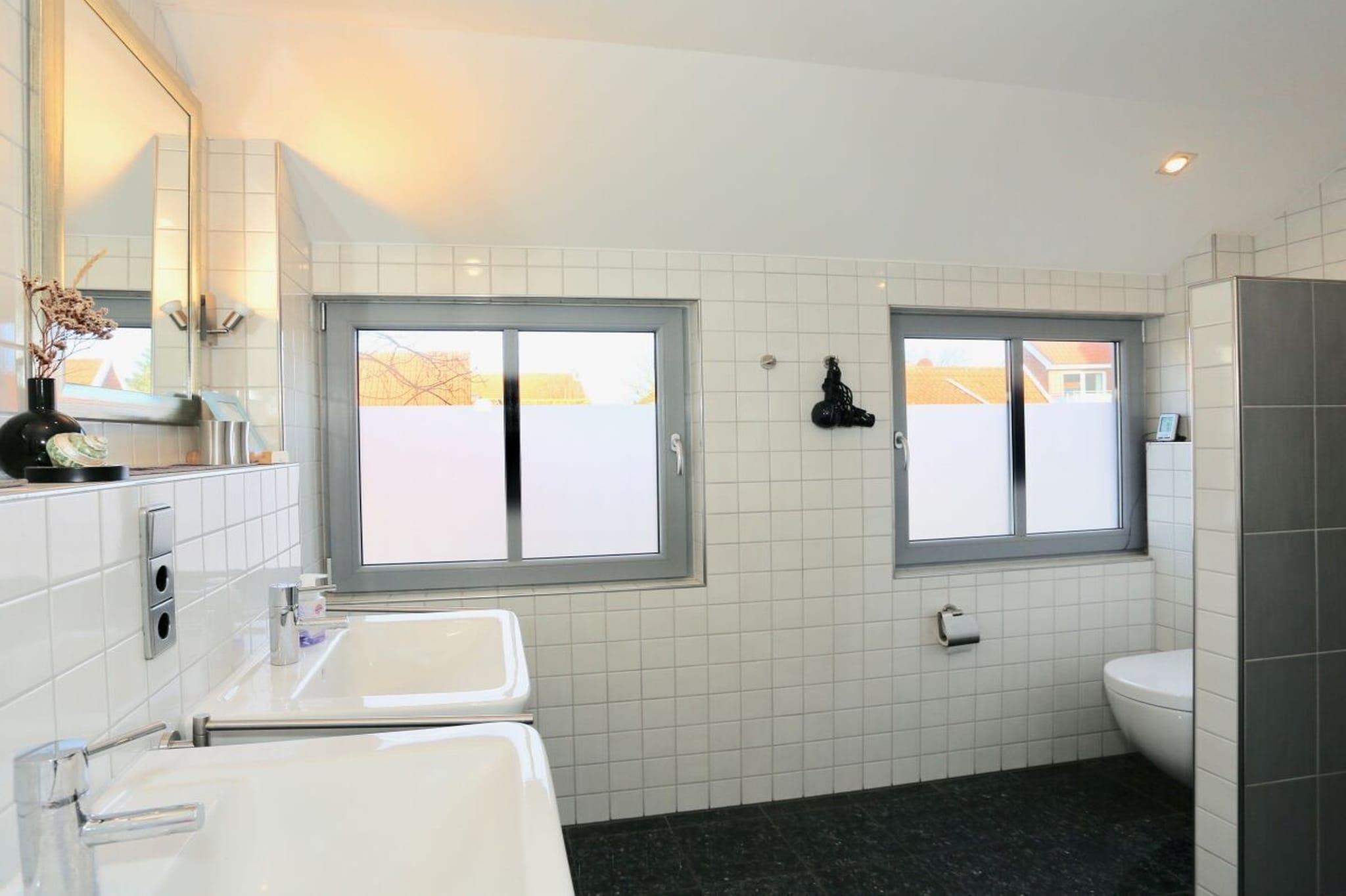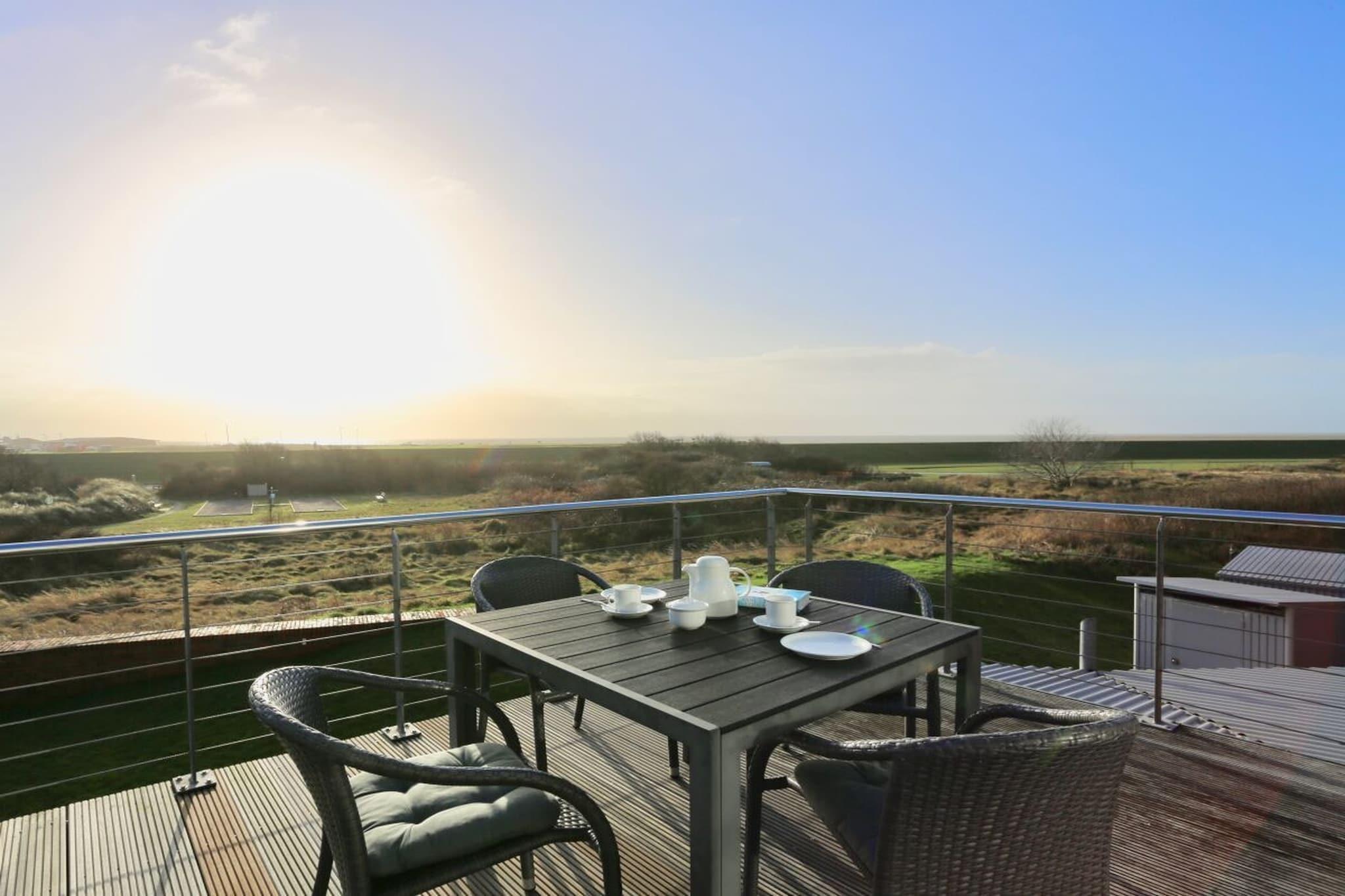 Komfortable Ferienwohnung Kaphaus auf Juist mit Meerblick, modernem Wohnbereich und großzügigem Bad.