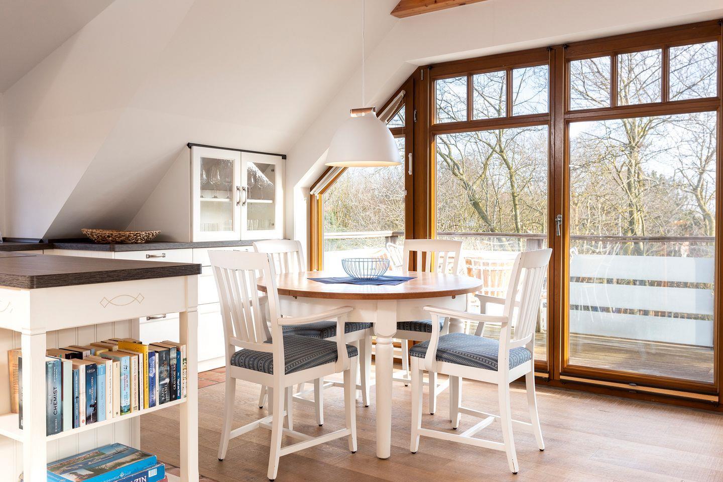 „Dünenrose“ und die darunterliegende Wohnung „Strandhafer“ lassen sich auf der Erdgeschossebene verbinden und sind somit als gesamtes Ferienhaus für 8 Personen kombinierbar.