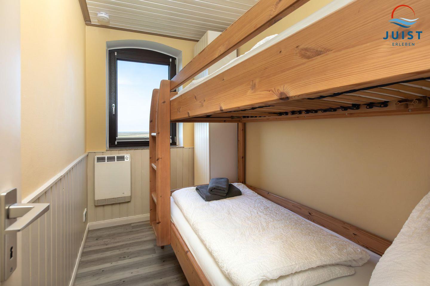 Zwei Schlafzimmer – eines mit Doppelbett und eines mit Etagenbett – sorgen für erholsamen Schlaf.