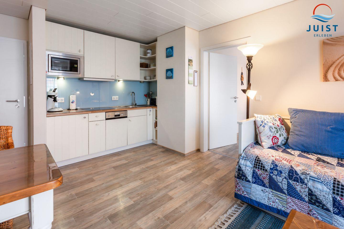 Gemütliche 40 m² Wohnung auf Juist mit Strandkorb, moderner Küche und nah am Strand für erholsame Tage zu zweit.
