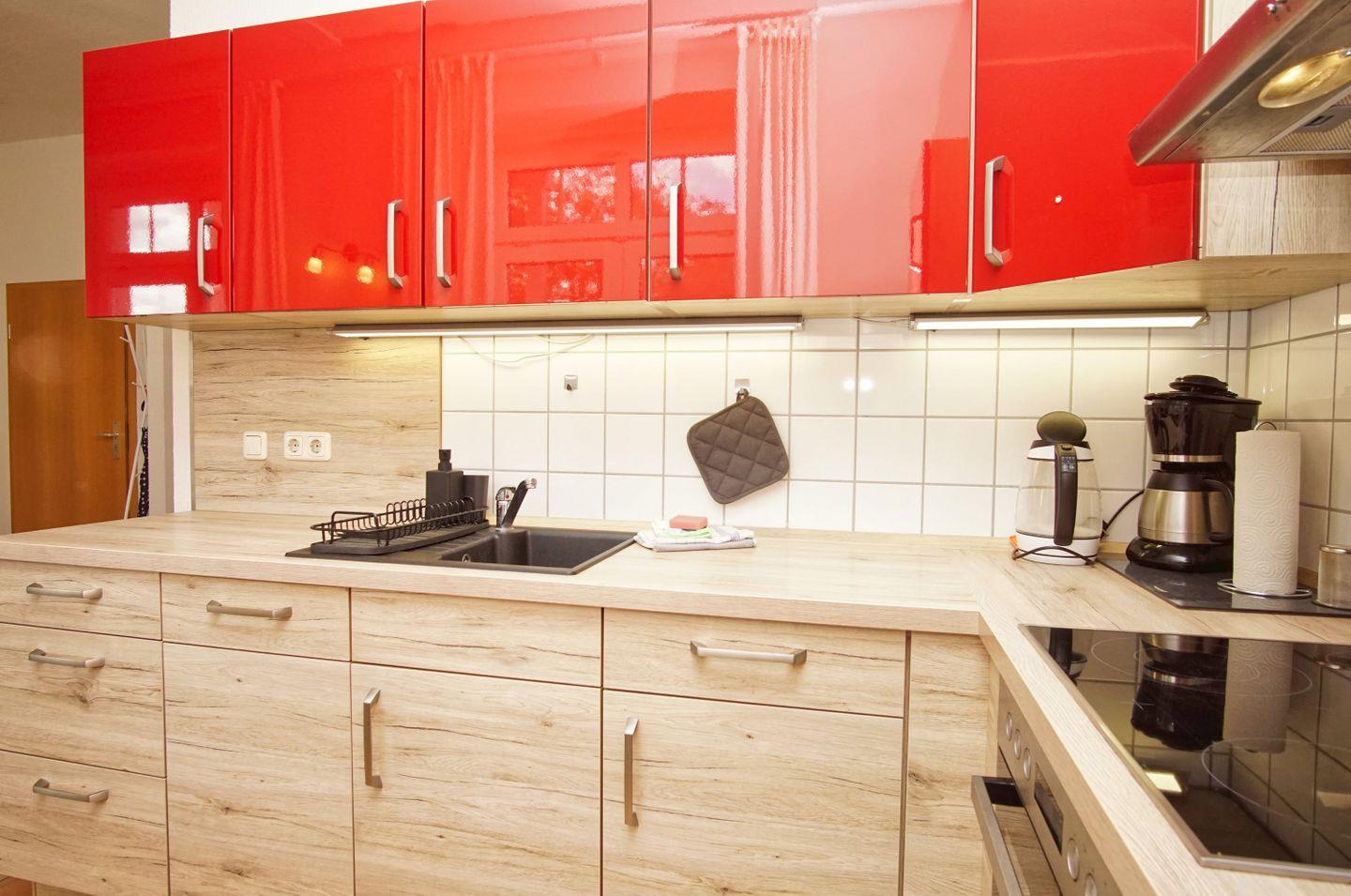 KÜCHE // offene Küche, Ceranfeld, Spülmaschine, Kühlschrank mit Gefrierfach, Backofen, Toaster, Wasserkocher, Kaffeemaschine, reichlich Besteck, Geschirr und Küchenutensilien ++