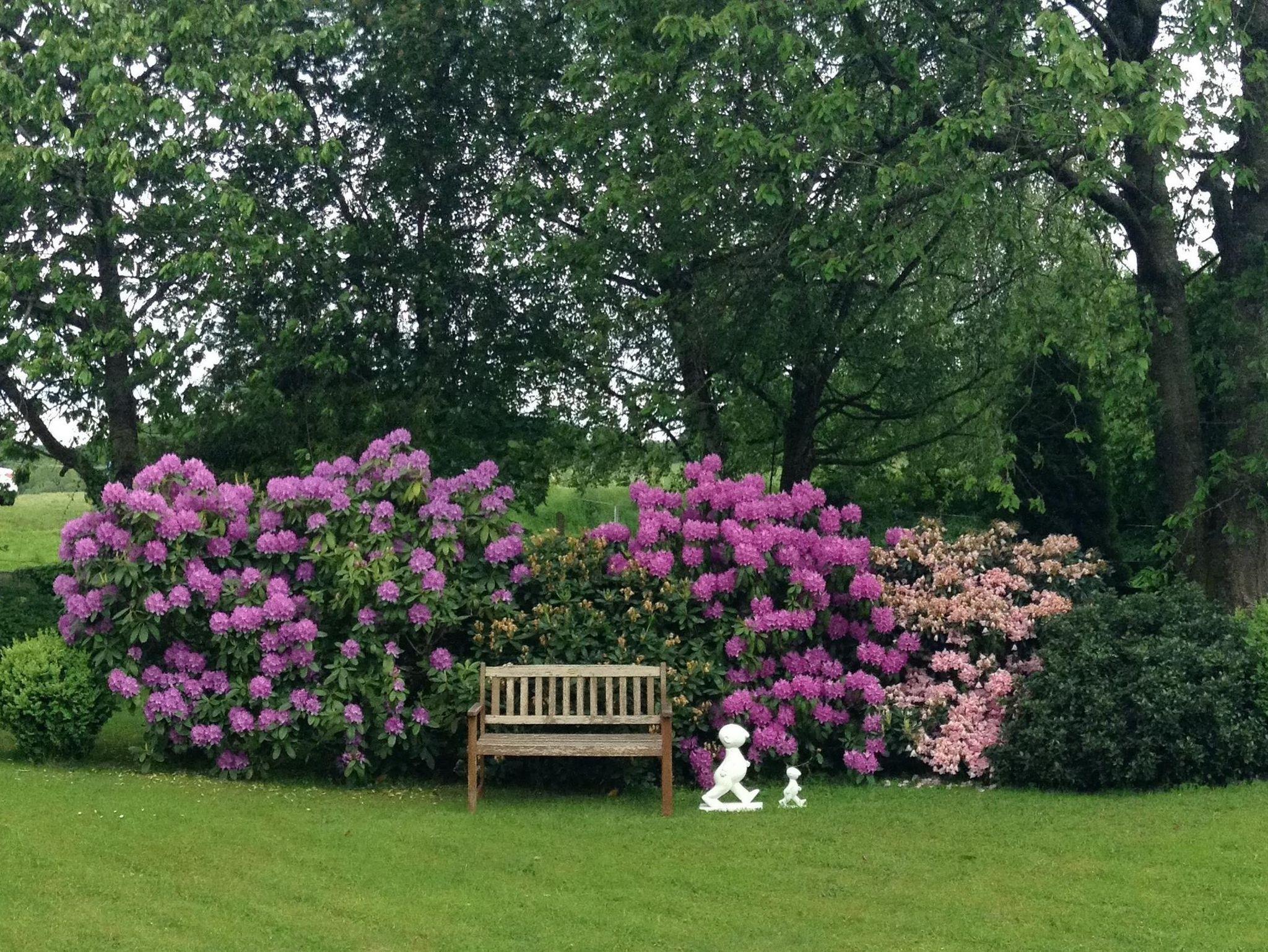 Von der Straße aus sind es sieben Stufen in den Garten, der Eingang liegt direkt im Garten.
