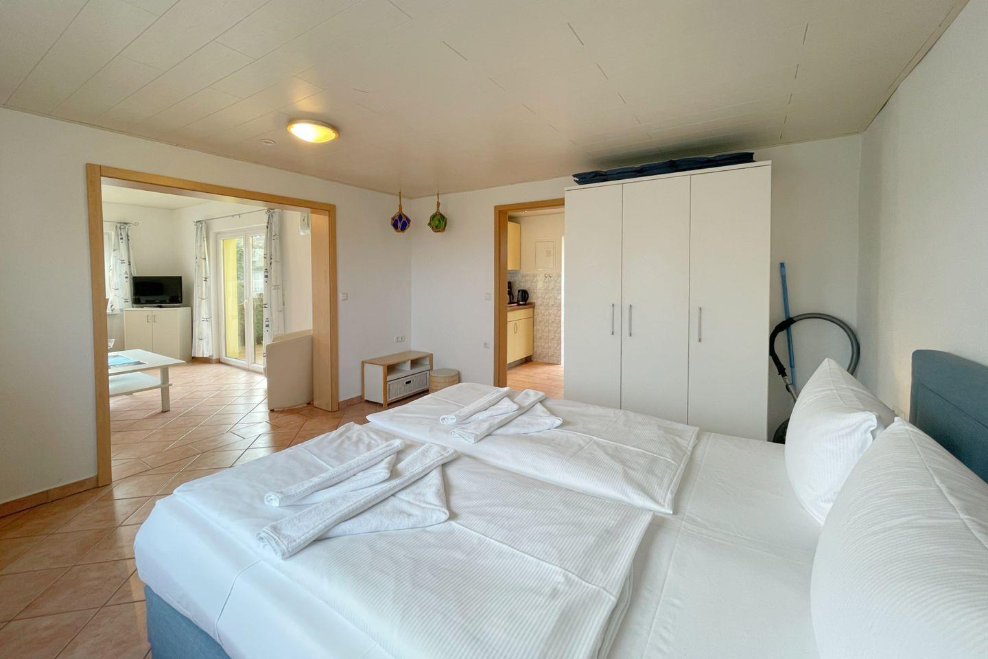 Der Gartenbungalow verfügt über ein gemütliches Schlafzimmer, das mit einem einladenden Bett ausgestattet ist und dazu einlädt, nach einem erlebnisreichen Tag zu entspannen. In der Küche finden Sie alles, was Sie brauchen, um sich selbst zu verpflegen: von einer Kaffeemaschine über einen Kühlschrank bis hin zu einem Herd. Außerdem lädt die Sofaecke im Wohnzimmer zum Verweilen und Entspannen ein – perfekt für gemeinsame Abende mit einem guten Film auf dem digitalen Fernseher.