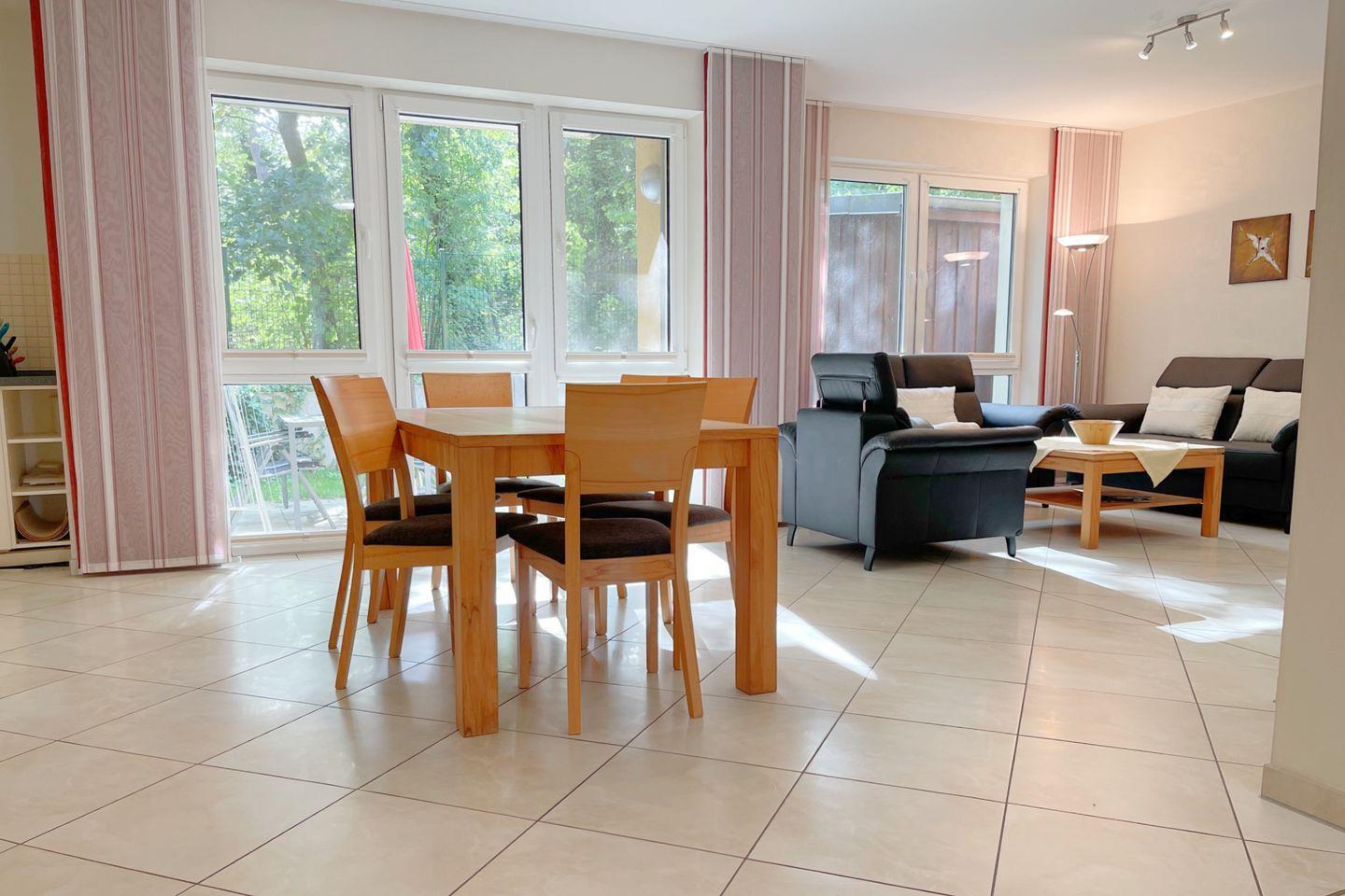 Mit einer Fläche von 76 m² ist die Unterkunft ideal für bis zu vier Personen und überzeugt durch ihre gemütliche und einladende Atmosphäre. Die Ferienwohnung zeichnet sich durch zwei behagliche Schlafzimmer aus, in denen Sie nach einem erlebnisreichen Tag am Strand wunderbar entspannen können. Das offene Wohnkonzept verbindet die voll ausgestattete Küche harmonisch mit dem hellen Wohnzimmer. Genießen Sie gesellige Abende am Esstisch oder verweilen Sie in der Sofaecke, während Sie einen Film auf dem digitalen TV-Gerät schauen.