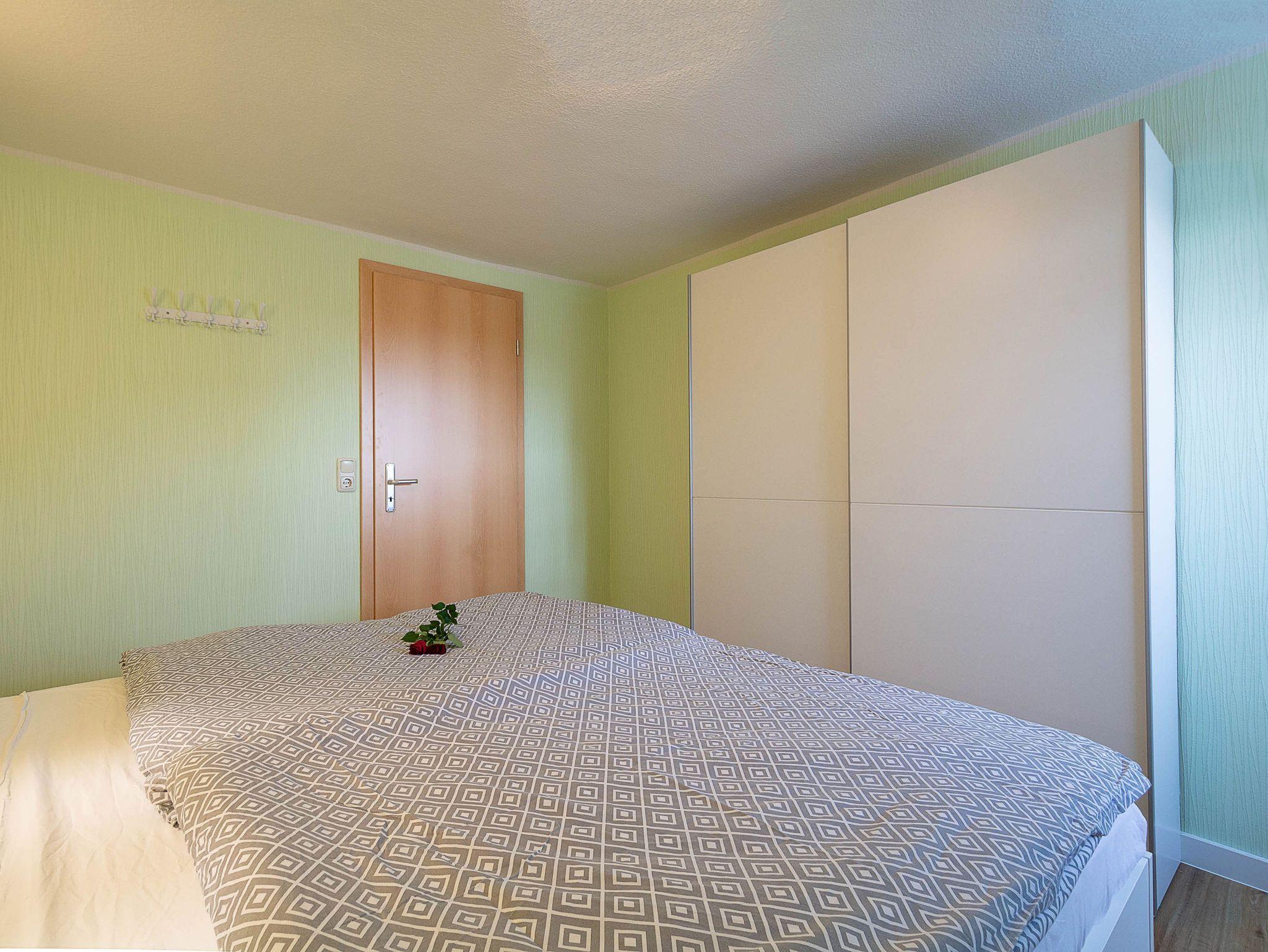 Sie wohnen in einer 2-Raum-Wohnung von ca. 45 qm Größe, die sich im Souterrain eines Einfamilienhauses befindet. Das Wohnzimmer ist ausgestattet mit einer bequemen Sitzgruppe, Essecke, Radio und Flachbild-TV sowie einem Schrankbett für eine dritte Person. Das Schlafzimmer ist ausgestattet mit einem großen Doppelbett und einem Kleiderschrank. In der kleinen separaten Küchenzeile (2021 neu eingebaut) finden Sie den 2-Platten-Herd, Mikrowelle, Kühlschrank, Kaffeemaschine, Toaster, Wasserkocher und vieles mehr vor. Das moderne geflieste Bad wurde im Frühjahr 2022 renoviert und ist ausgestattet mit einer ebenerdigen Dusche, WC und Handtuchheizung.