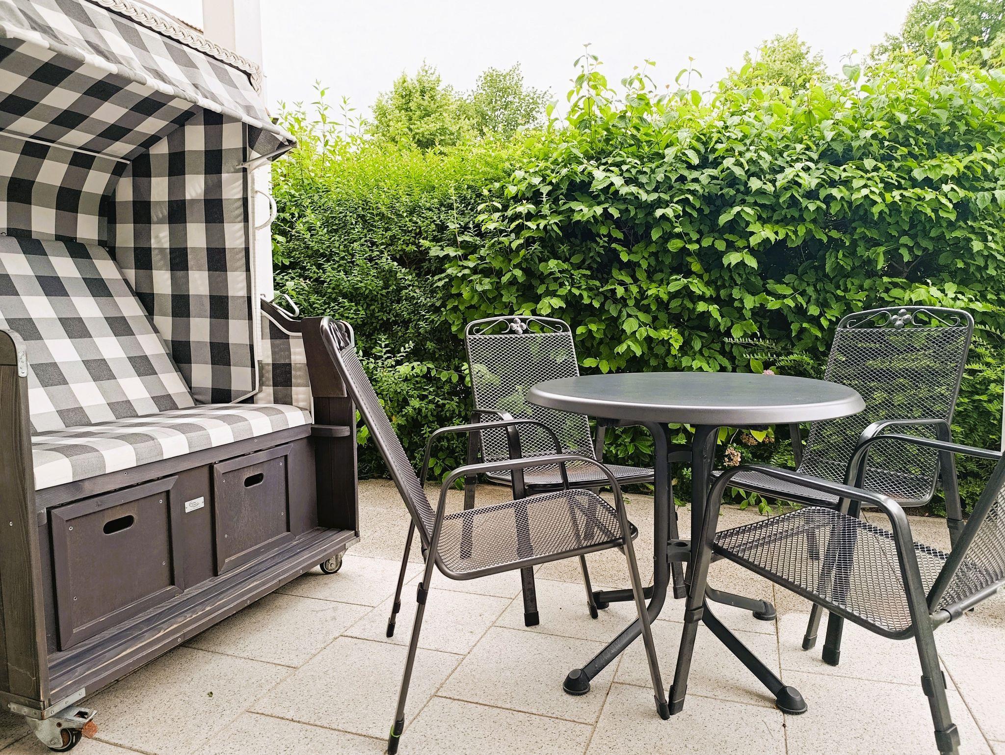 Moderne Ferienwohnung Strandkrone 02 in Kühlungsborn, nur 100 m vom Ostseestrand entfernt, mit Terrasse und komfortabler Ausstattung.