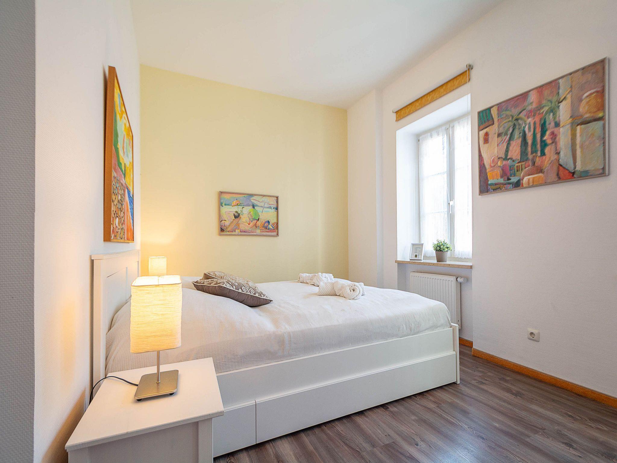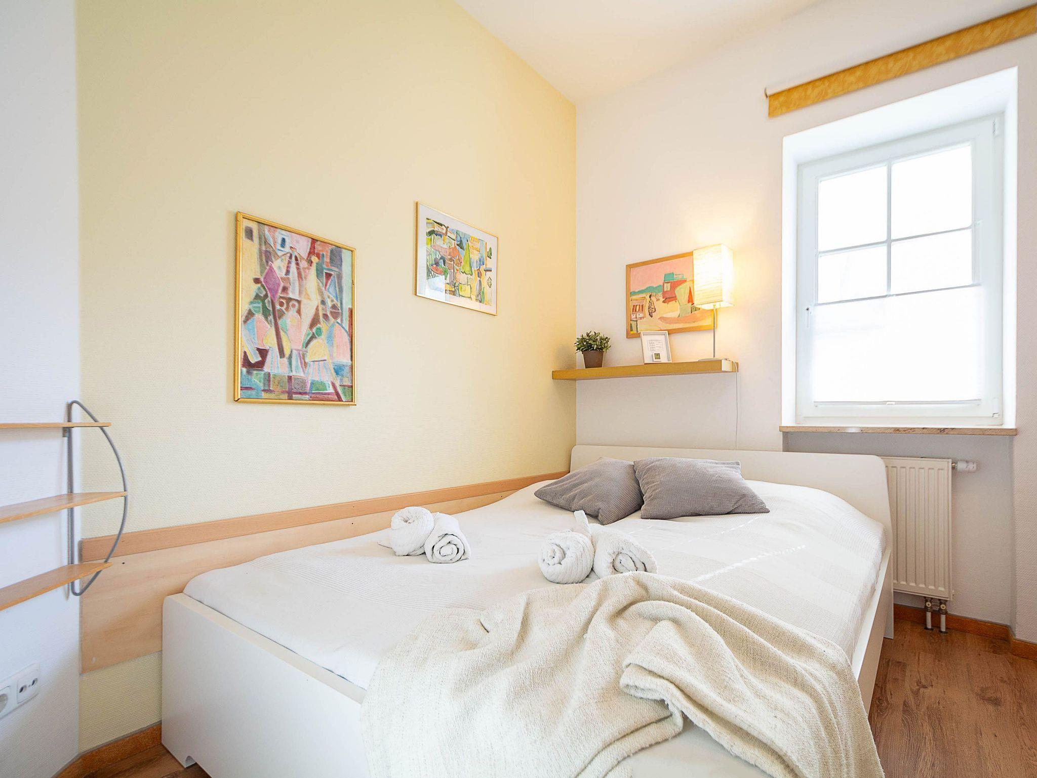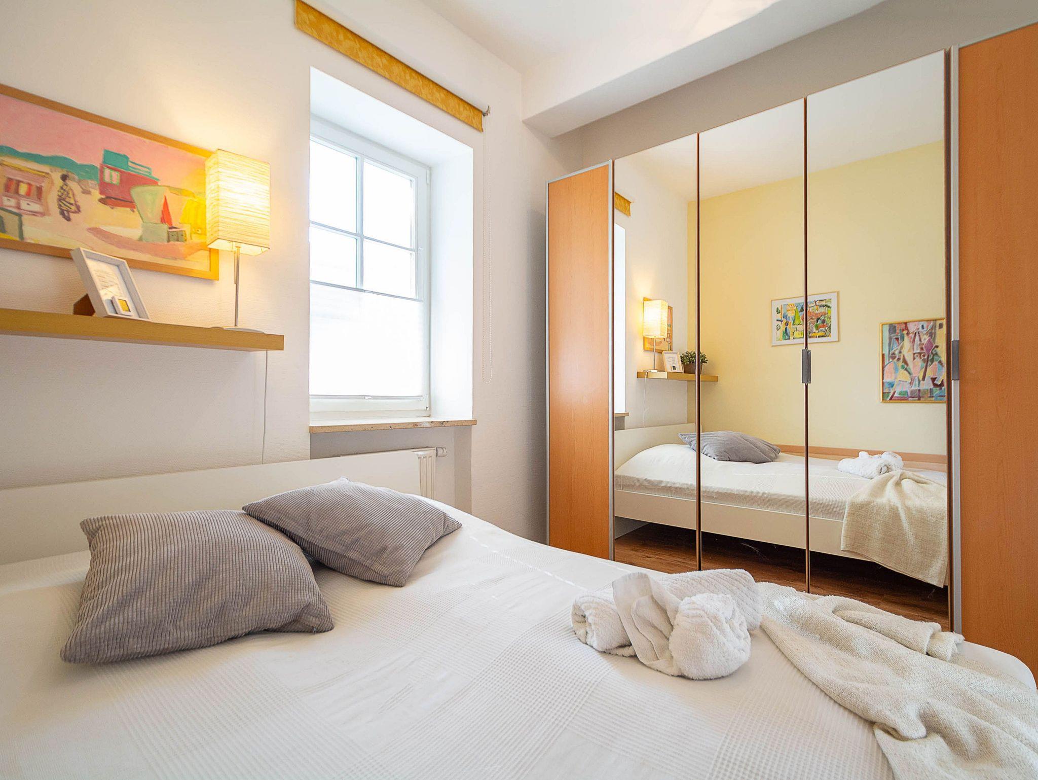 Die Unterkunft verfügt über zwei Schlafzimmer mit komfortablen Doppelbetten. Das größere, erste Schlafzimmer ist mit einem Bett in der Größe 160 × 200 cm ausgestattet. In beiden Schlafzimmern stehen großzügige Kleiderschränke für Ihre Urlaubsgarderobe zur Verfügung.