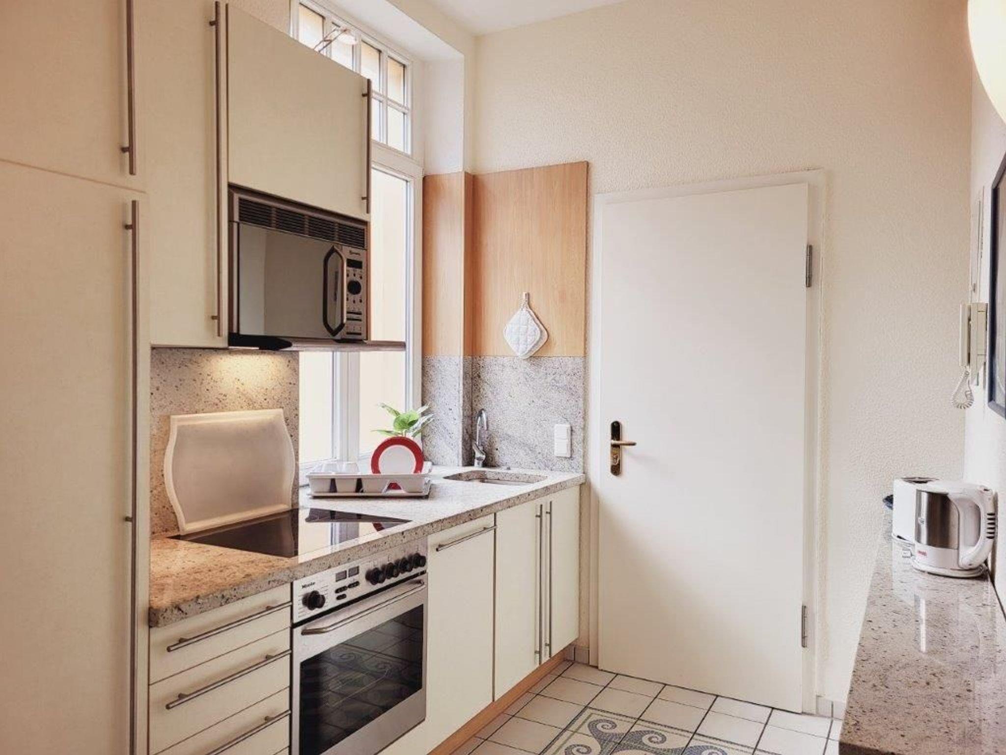 - Küche - Herd mit Backröhre, Mikrowelle, Kühlschrank mit Gefriermöglichkeit